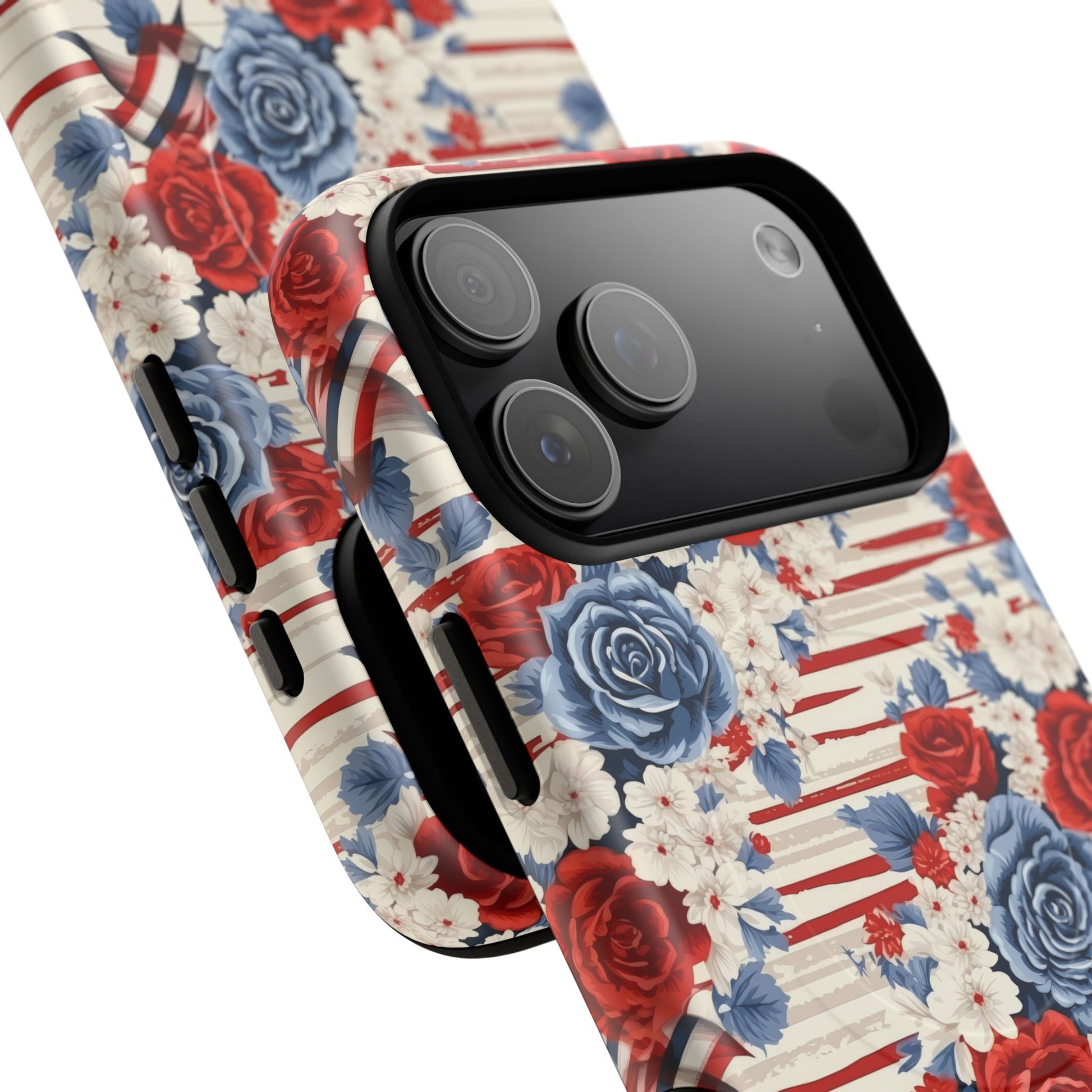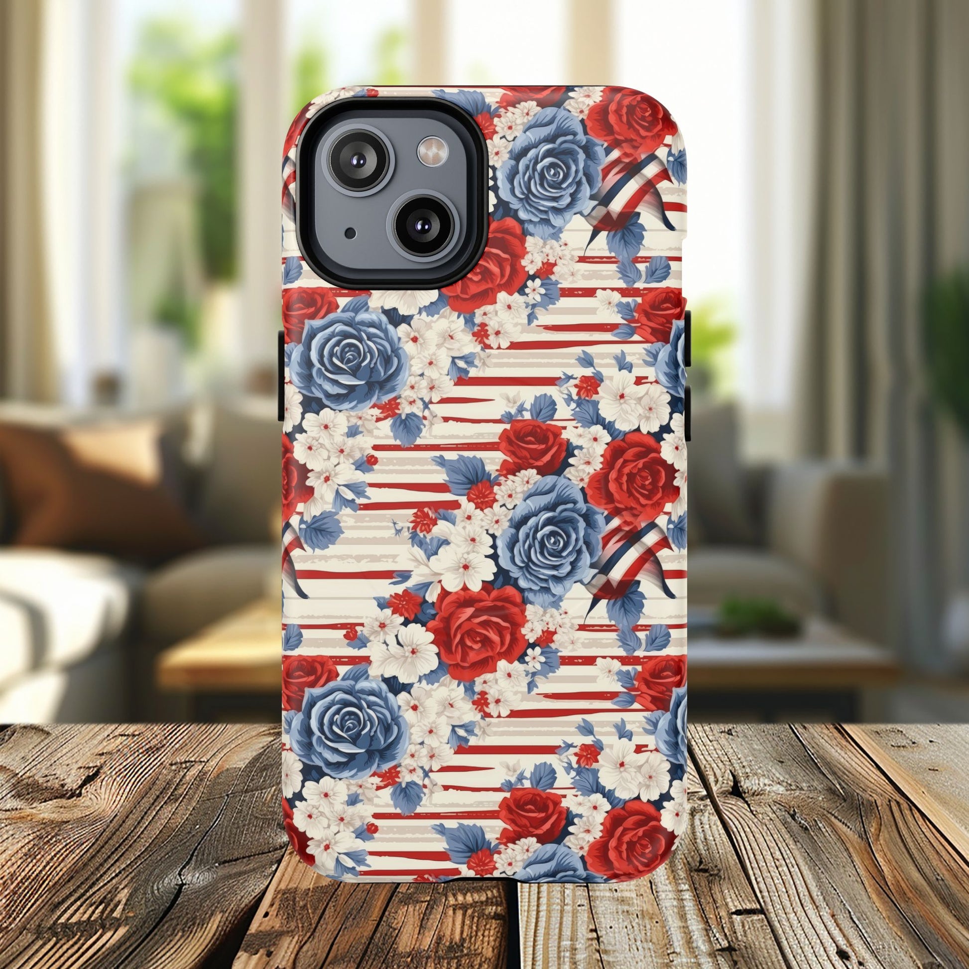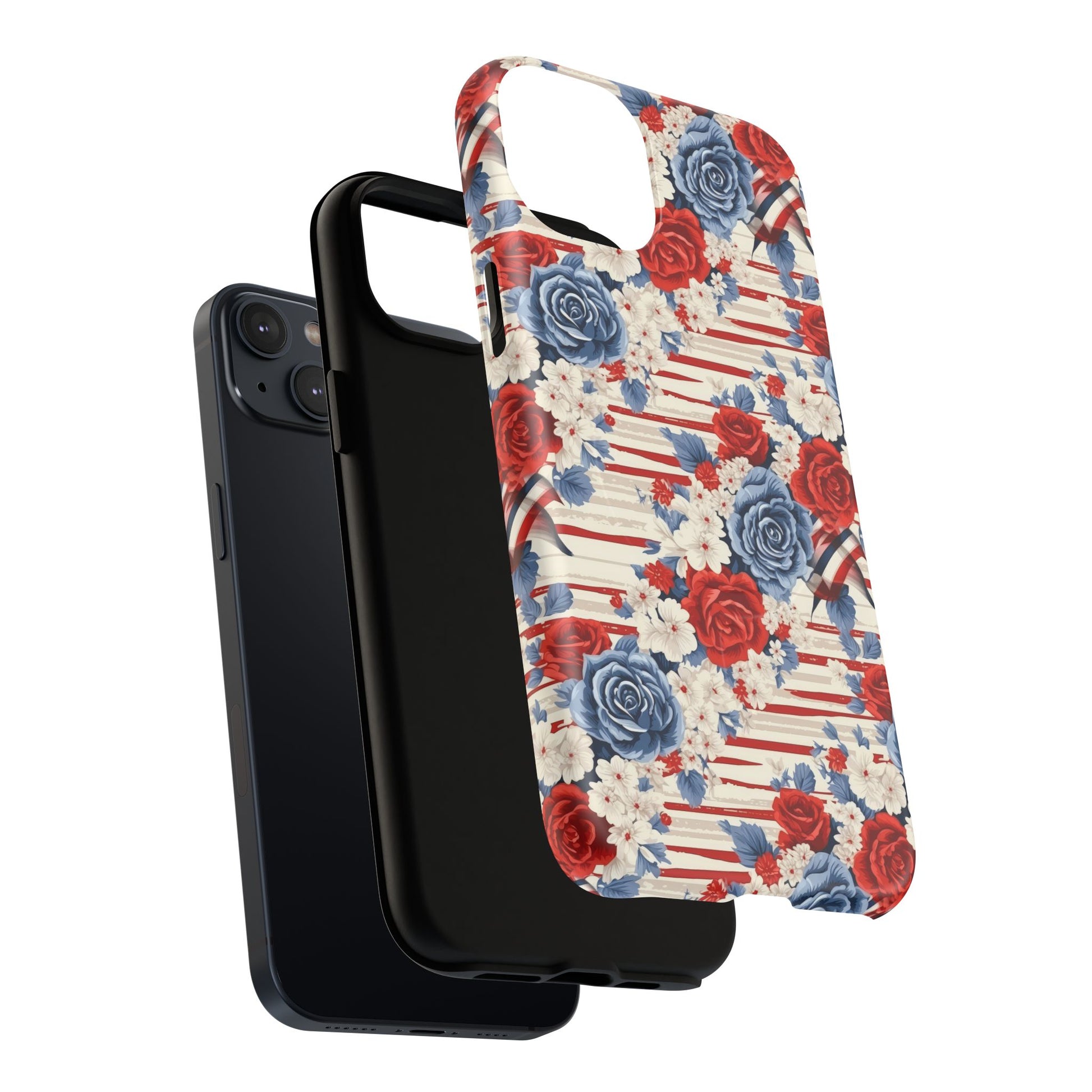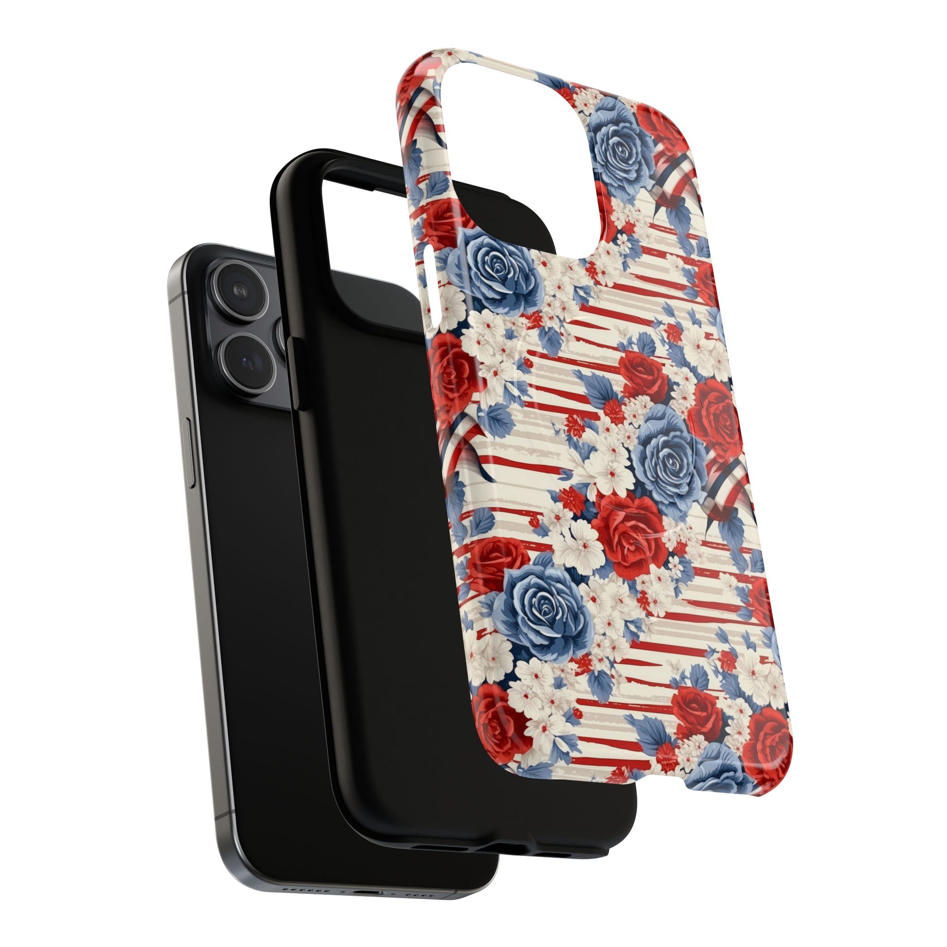 Floral Freedom Tough iPhone Magnetic Case, Red Blue Flower Design, iPhone MagSafe® compatibility Cover, Best Gift for Her, Holiday Present