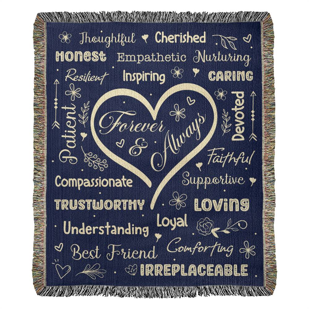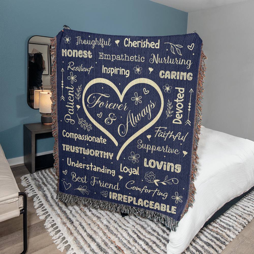 This unique keepsake is our Heirloom Artwork Woven Blanket. This custom product is lovingly woven on a loom with cozy 100% cotton yarn. It makes an ideal gift for your beloved partner, family members, or dear friends on special occasions like birthdays, anniversaries, or any event where you want to express your love and appreciation in an unforgettable way.