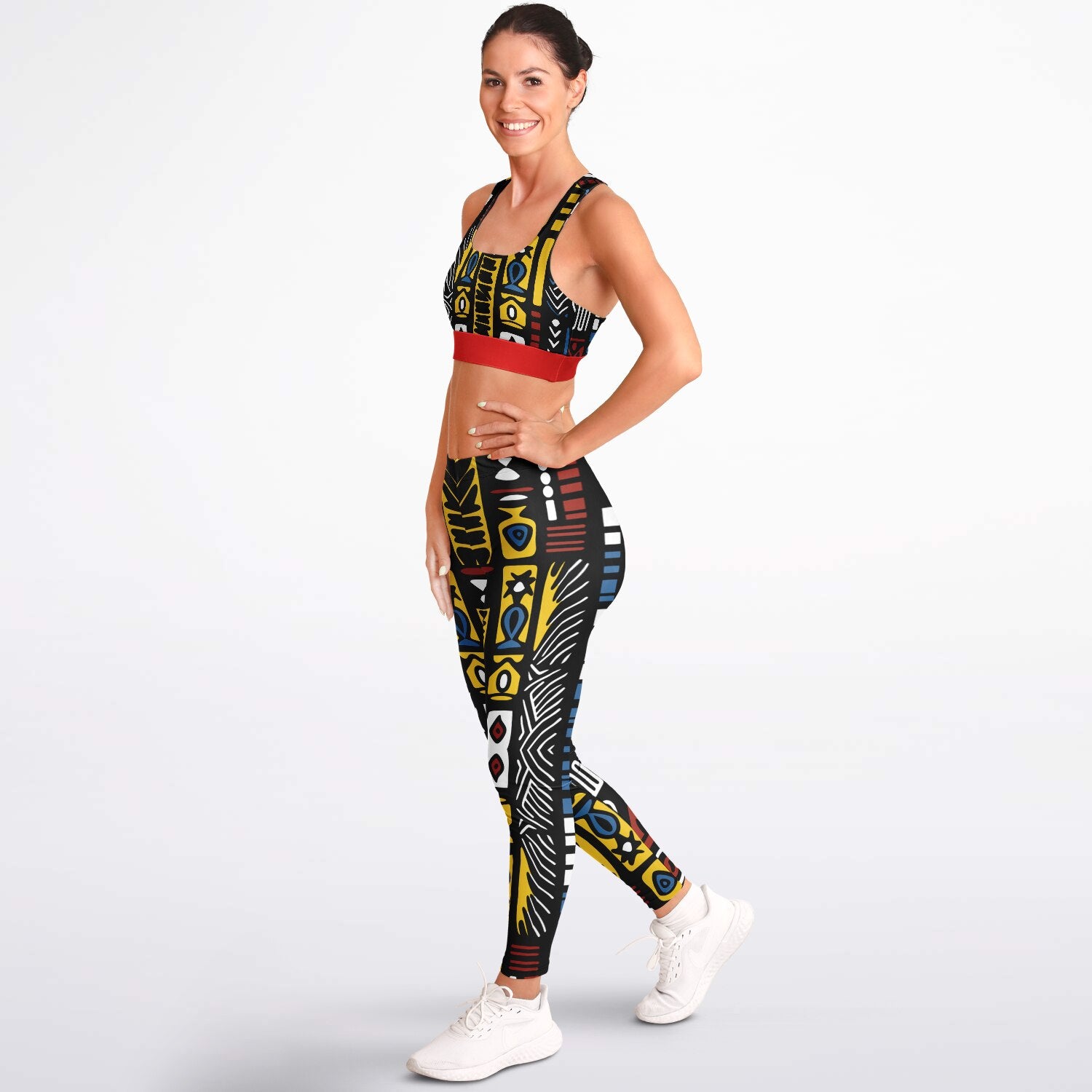 Geometric Harmony Padded Sports Bra & Leggings - AOP