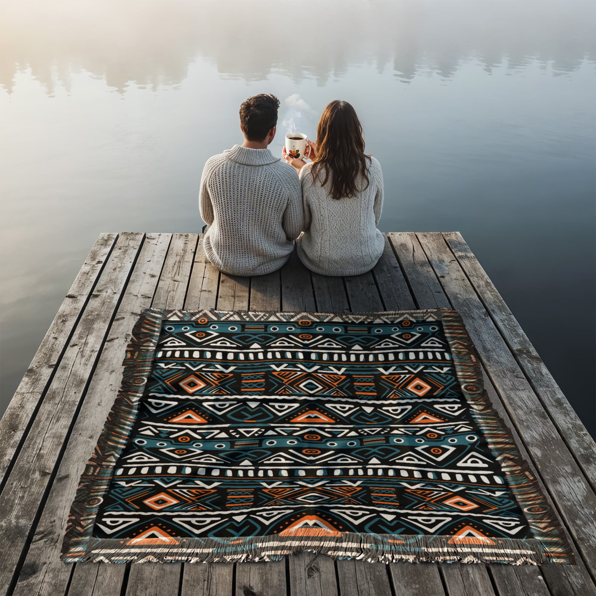 Geometric Printed Woven Blanket a Gift for Sons/Fathers/Mother.