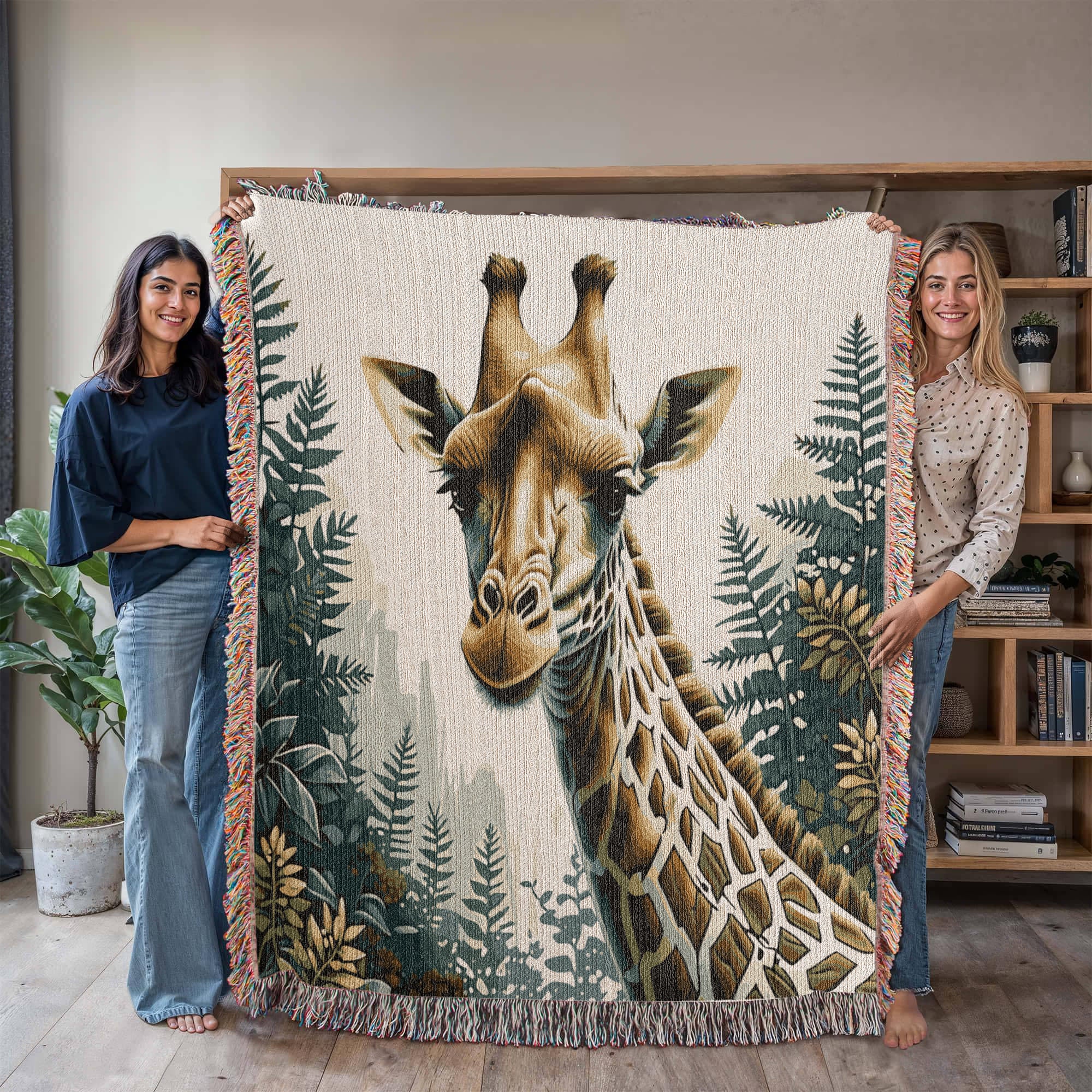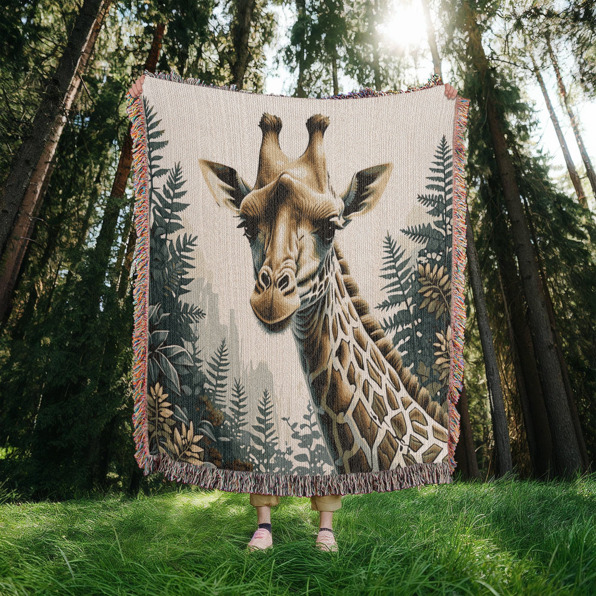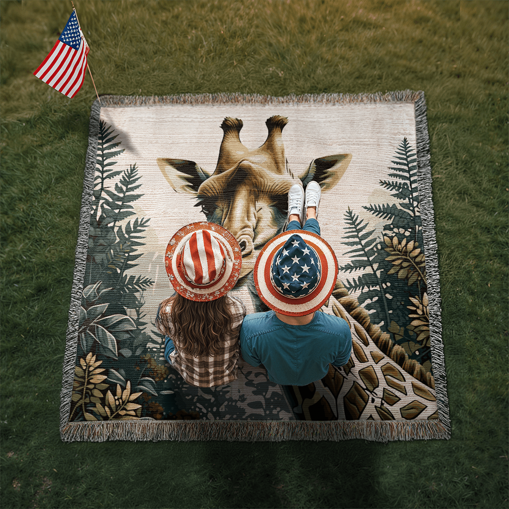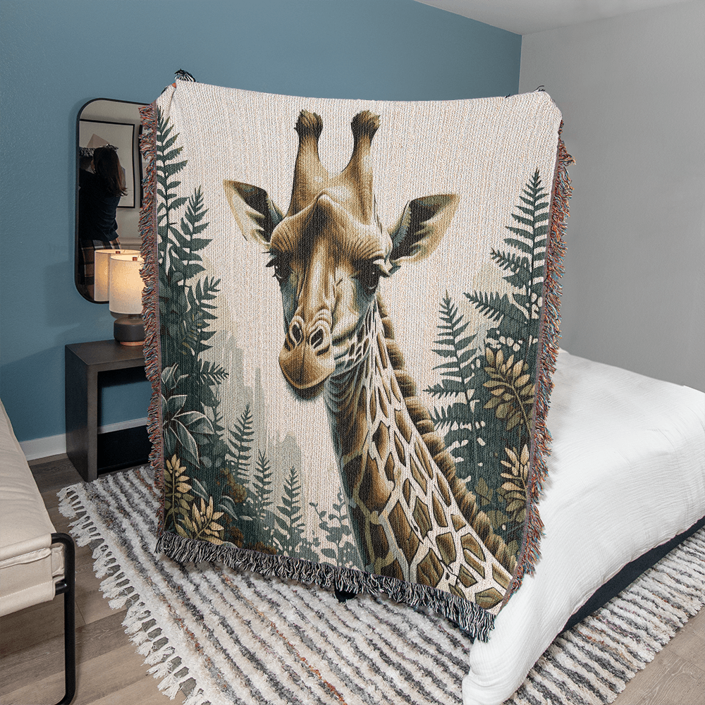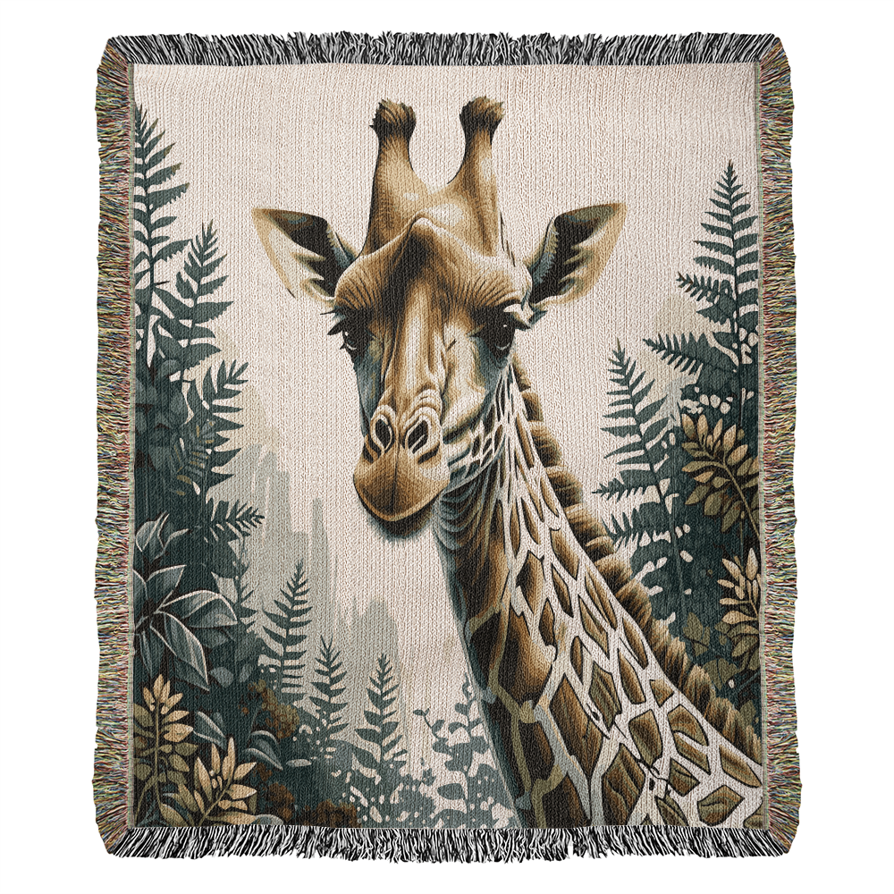 Giraffe Illustration Heirloom Woven Blanket- Gift for Mothers/Fathers/Daughters.