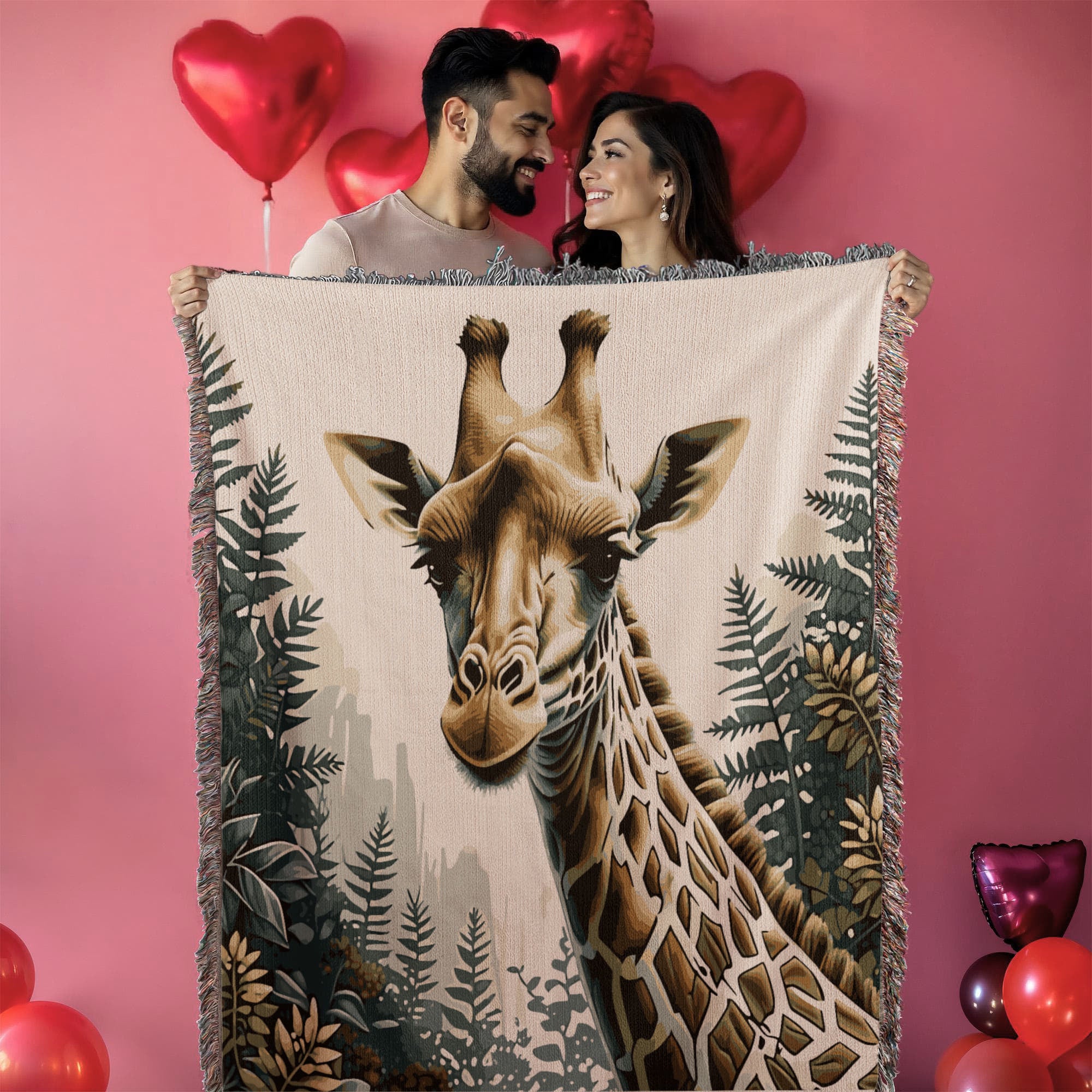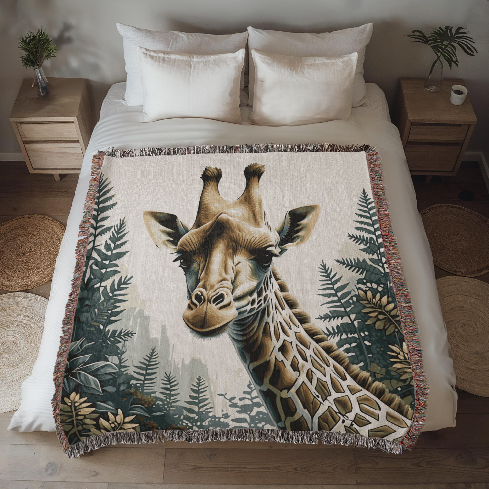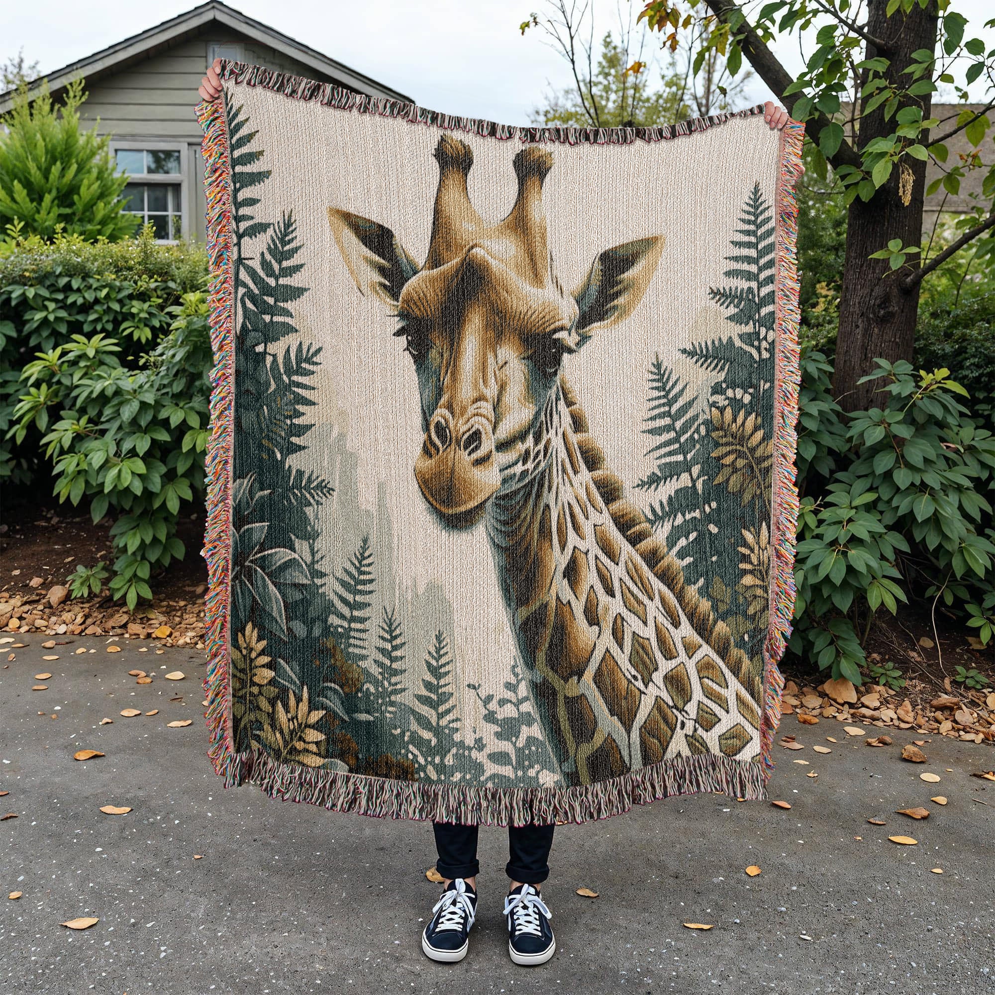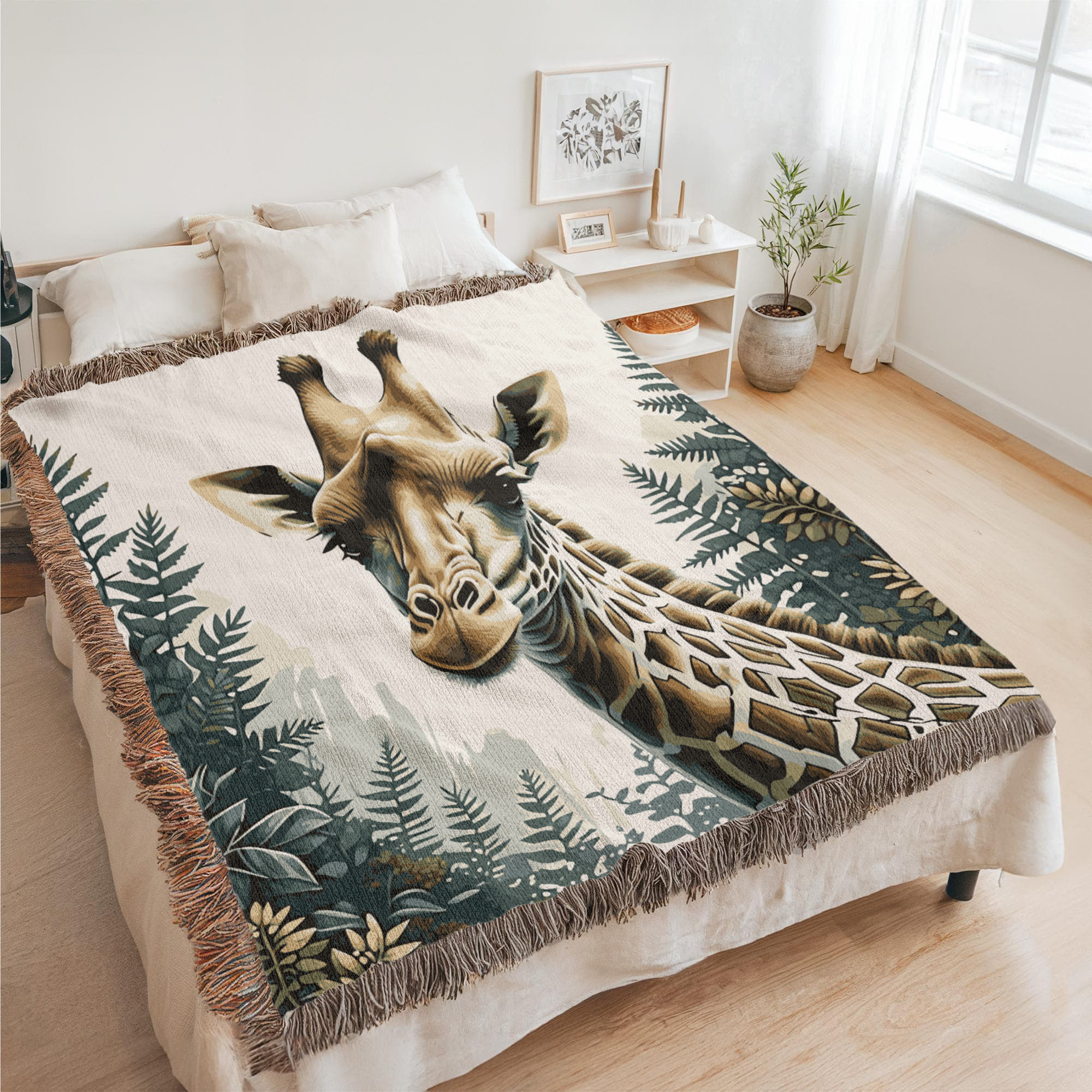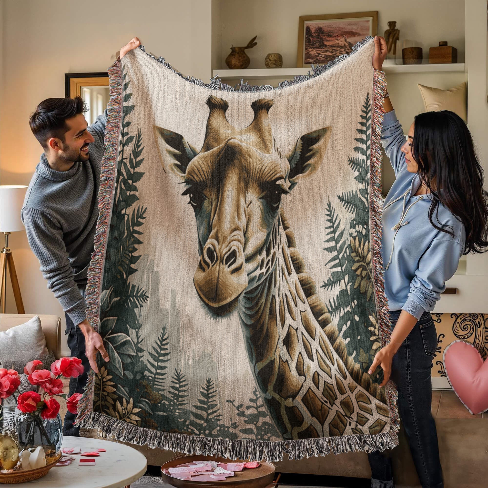 Giraffe Illustration Heirloom Woven Blanket- Gift for Mothers/Fathers/Daughters.