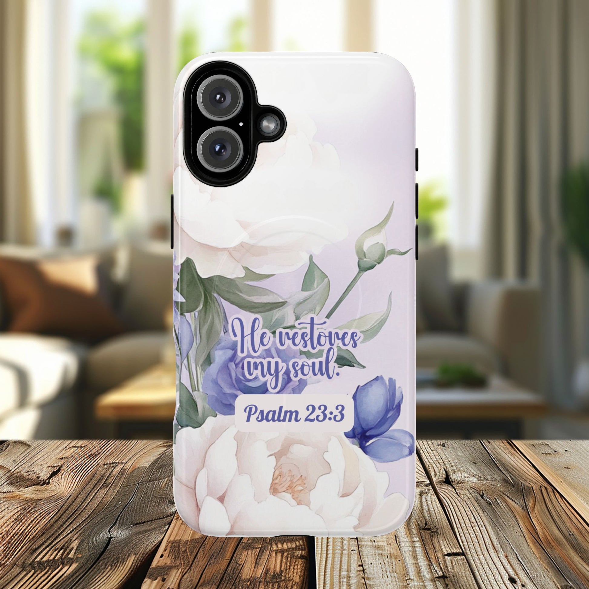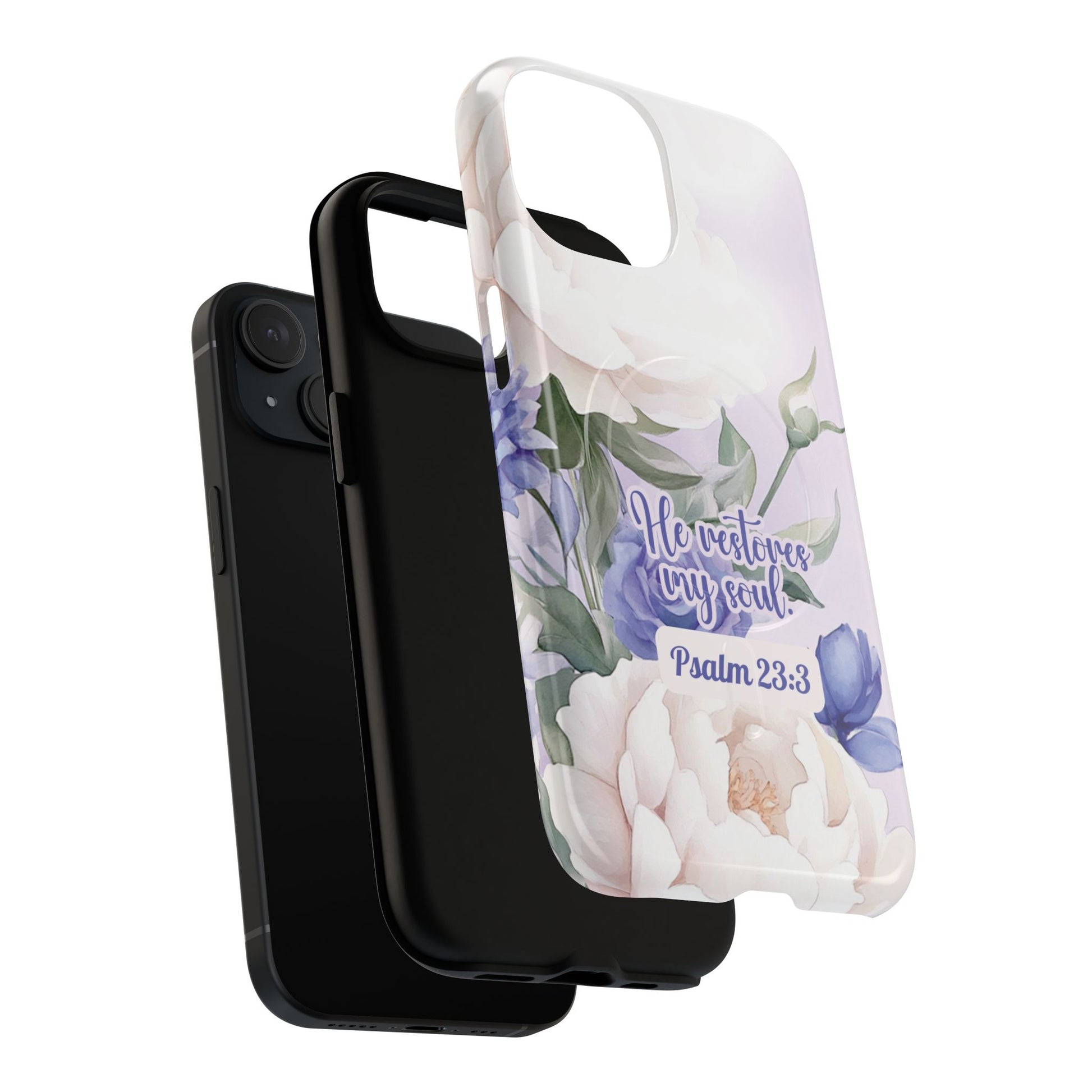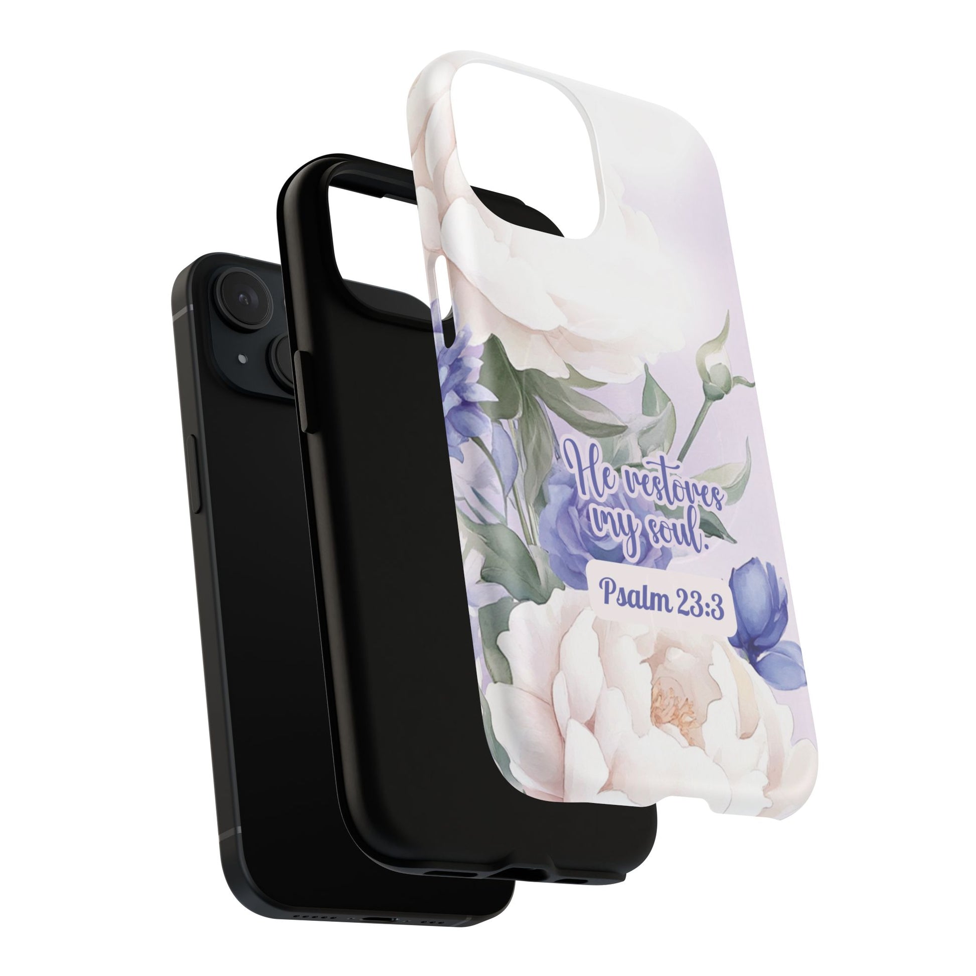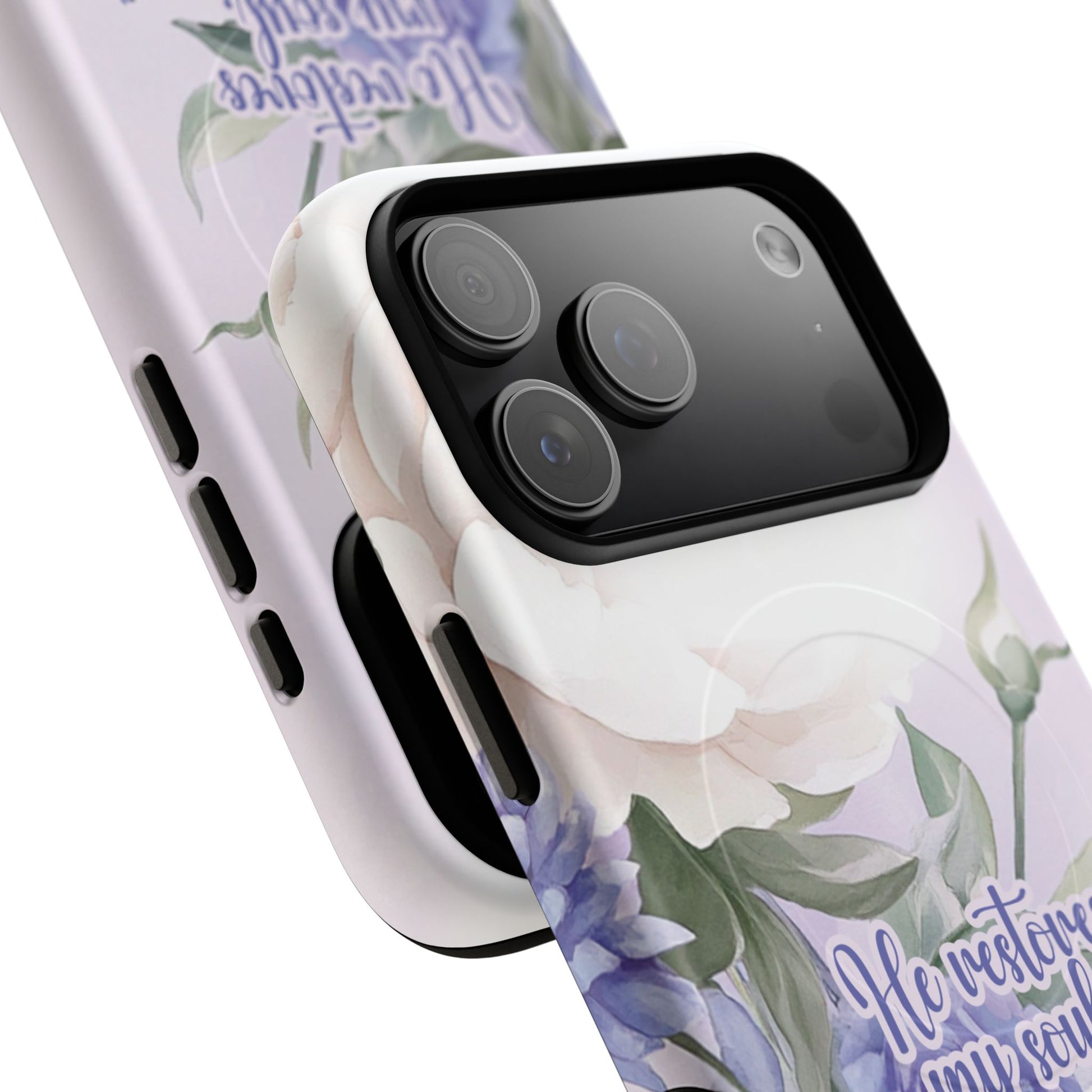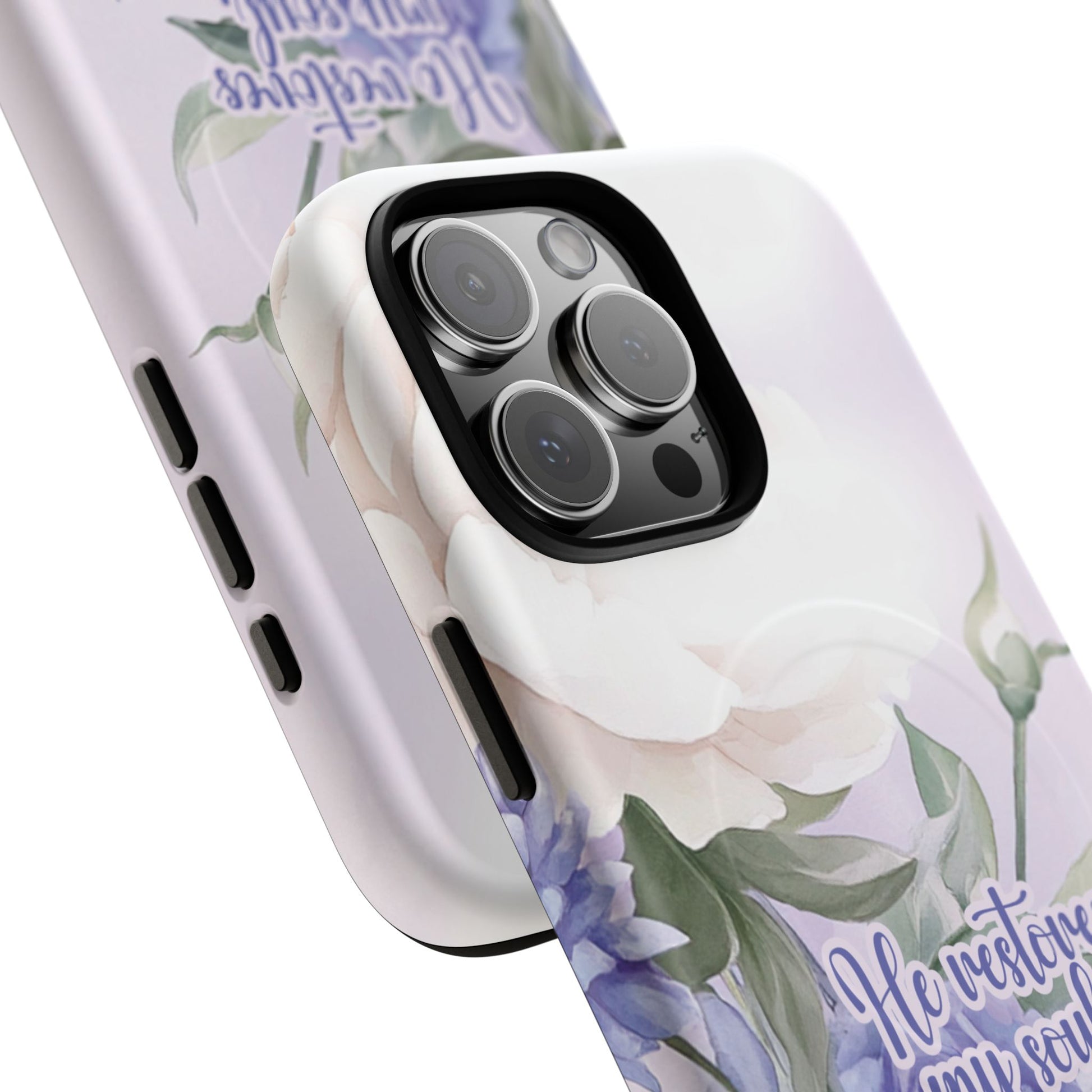 He Restores My Soul Tough iPhone Magnetic Cases, Christian Gift, MagSafe® iPhone® Tough Case, iPhone 13, 14, iPhone 15, iPhone 16, 17, Pro, Pro Max, Plus