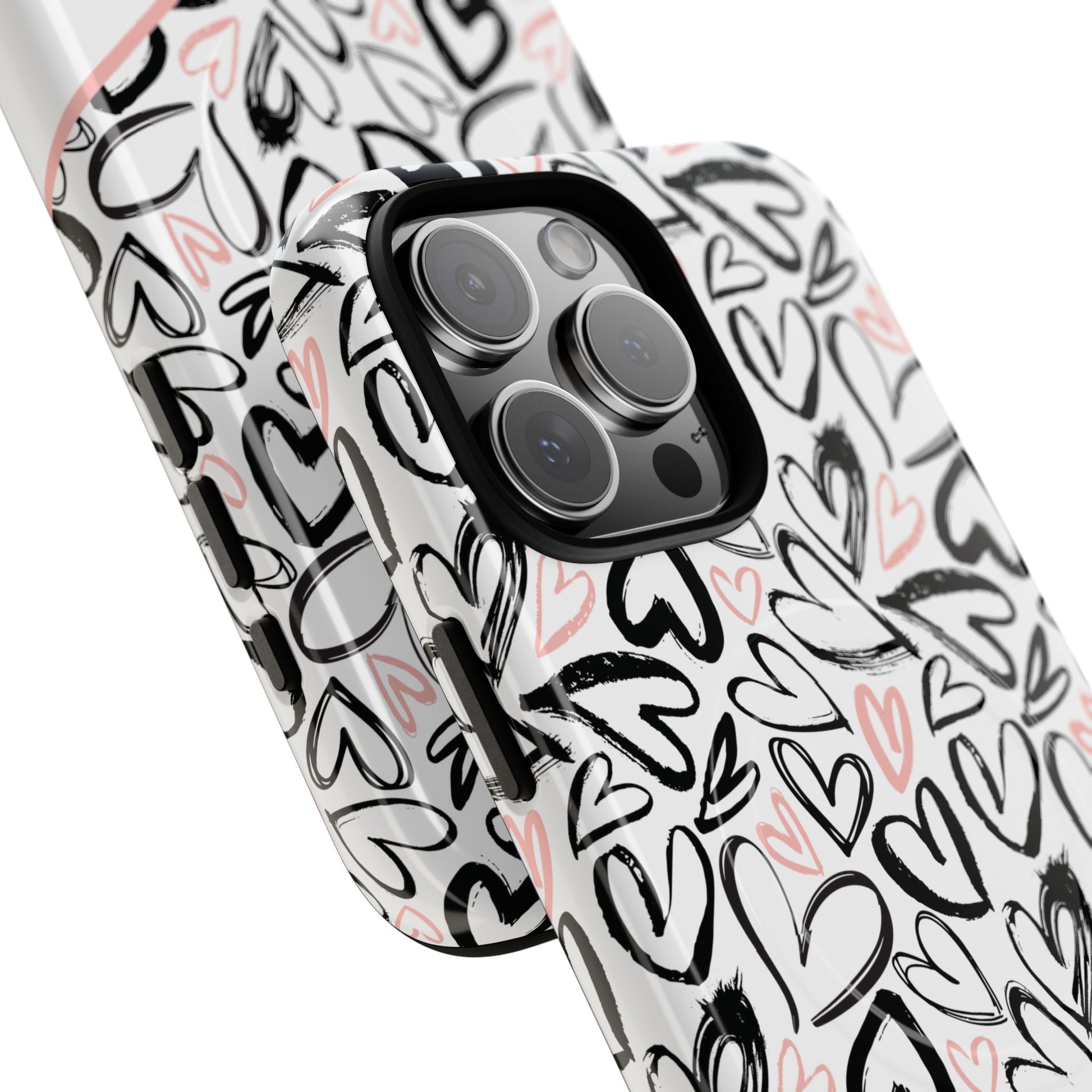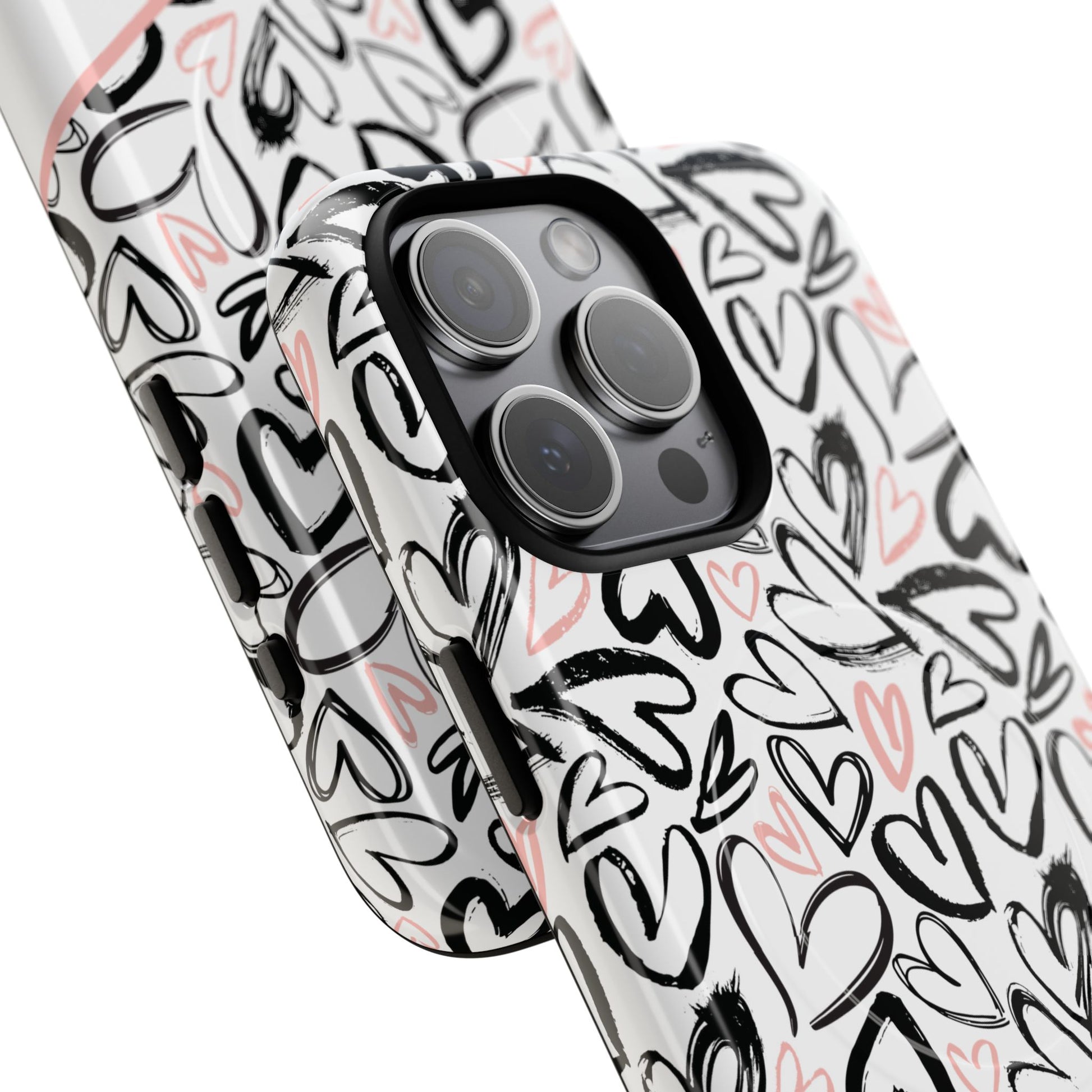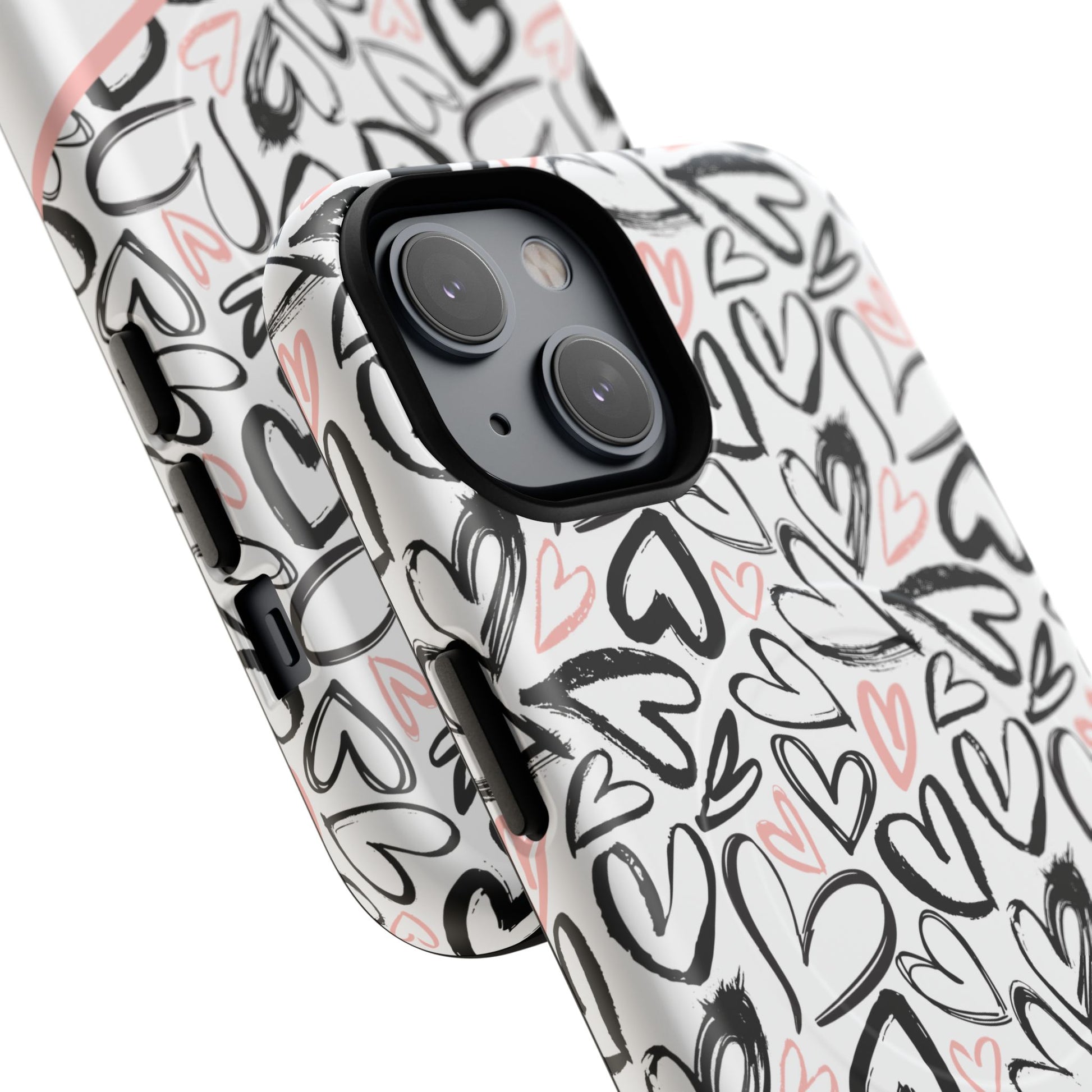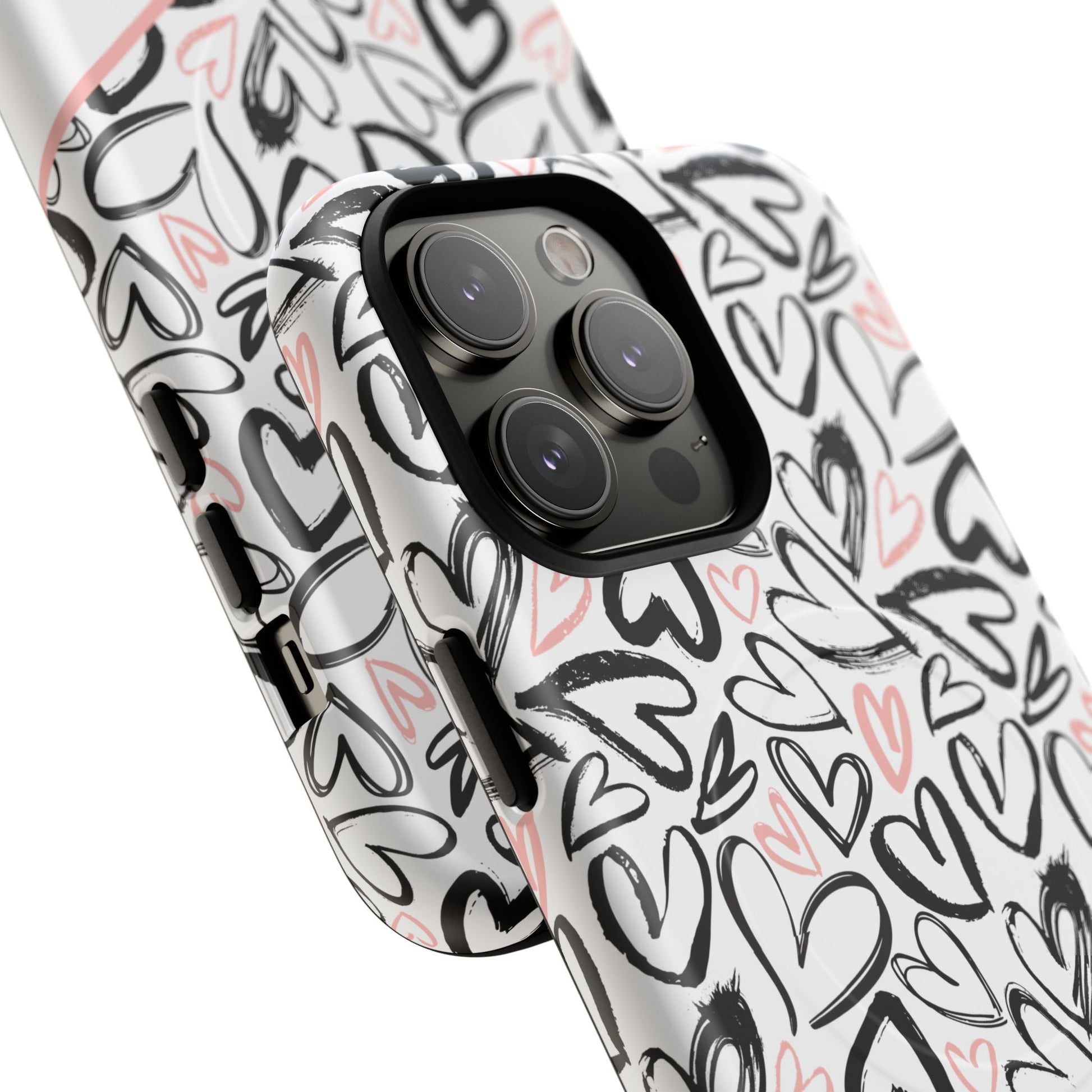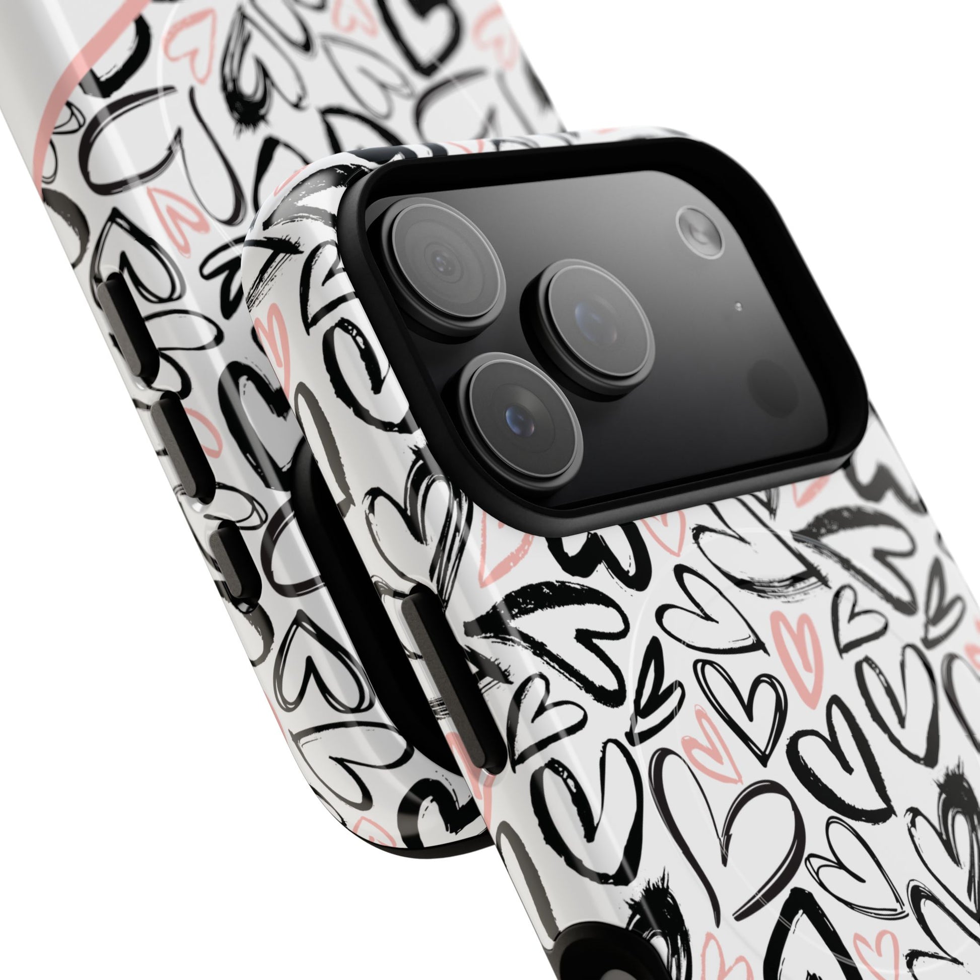 Heart Scribbles Tough Magnetic MagSafe®Case - Cute, Stylish, Gifts for Her, Love, Valentine's Day, iPhone® 13, 14, 15, 16, 17, Pro, Pro Max, Plus Cases.