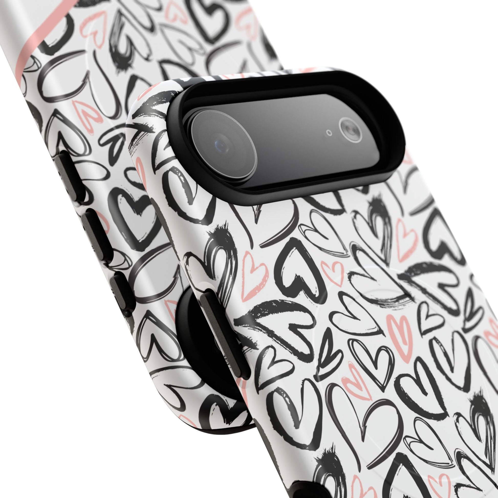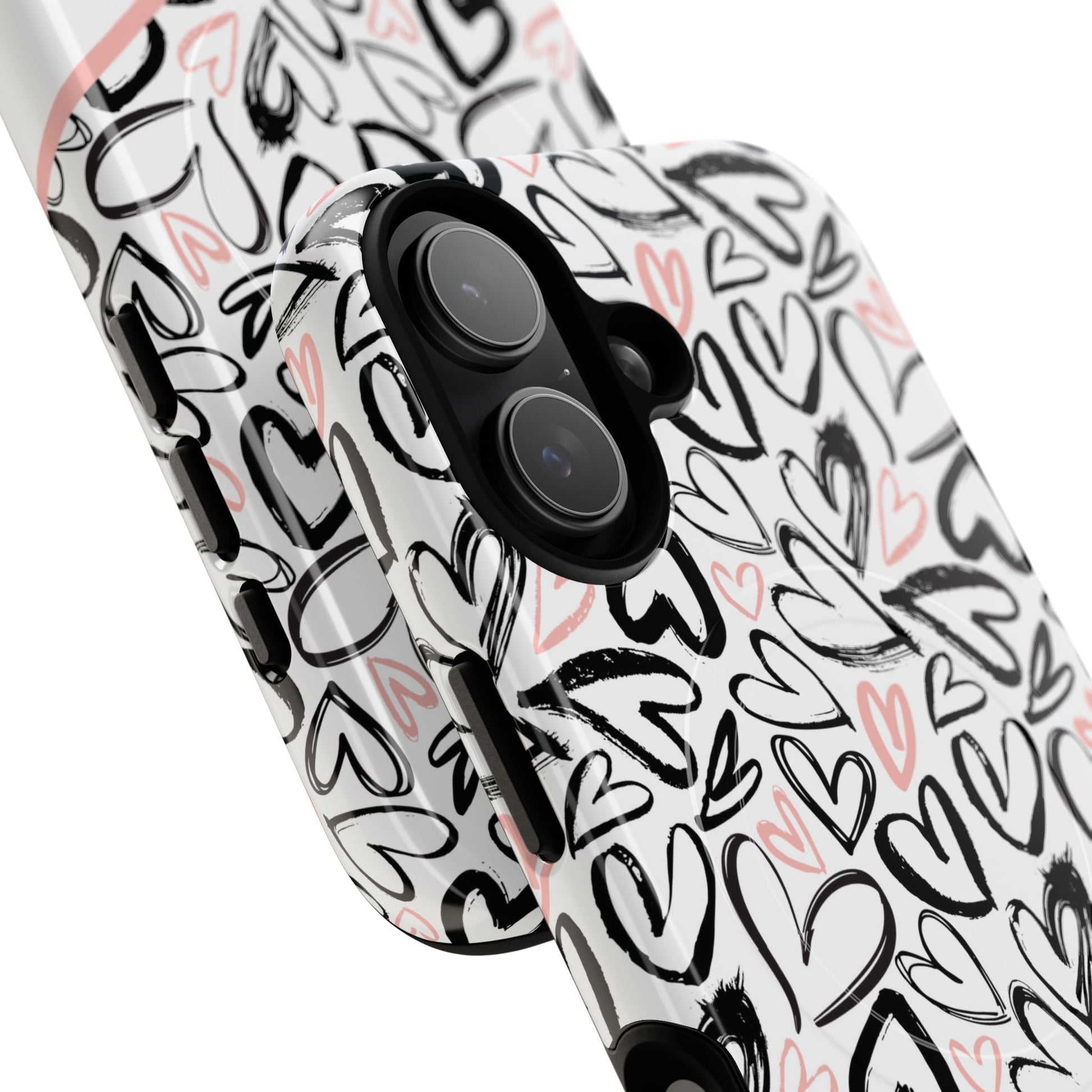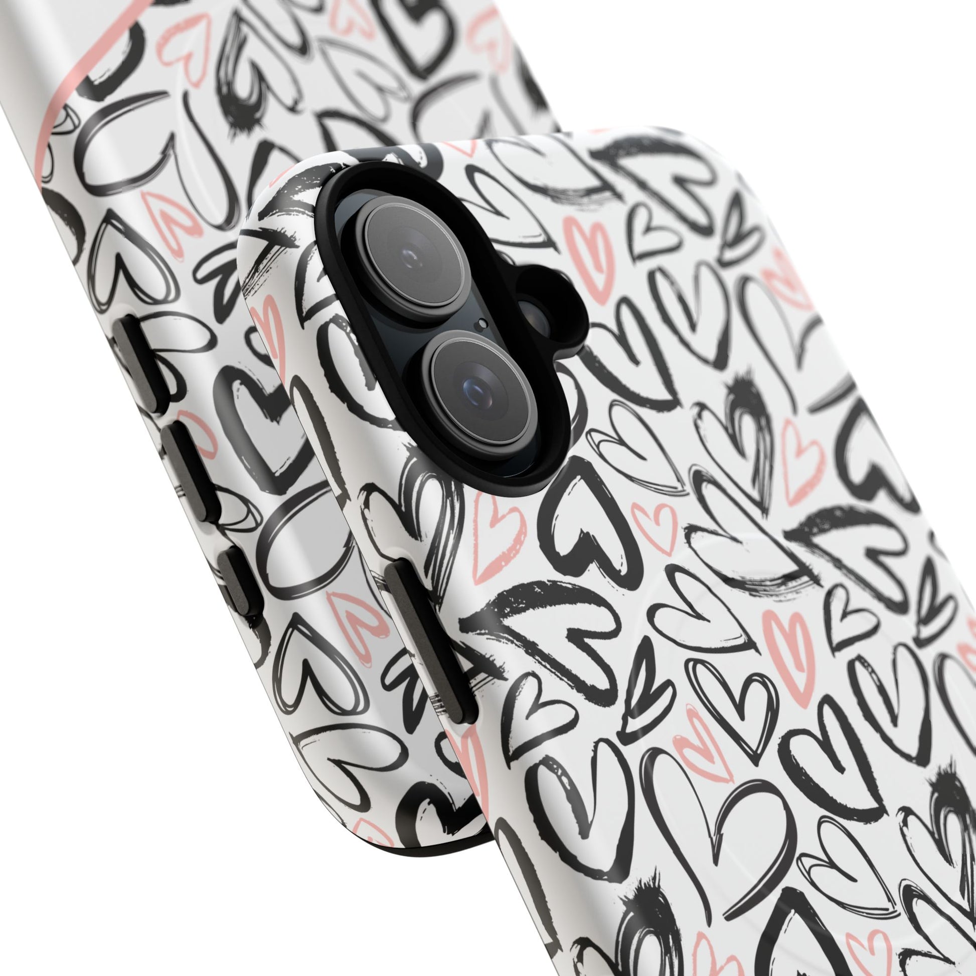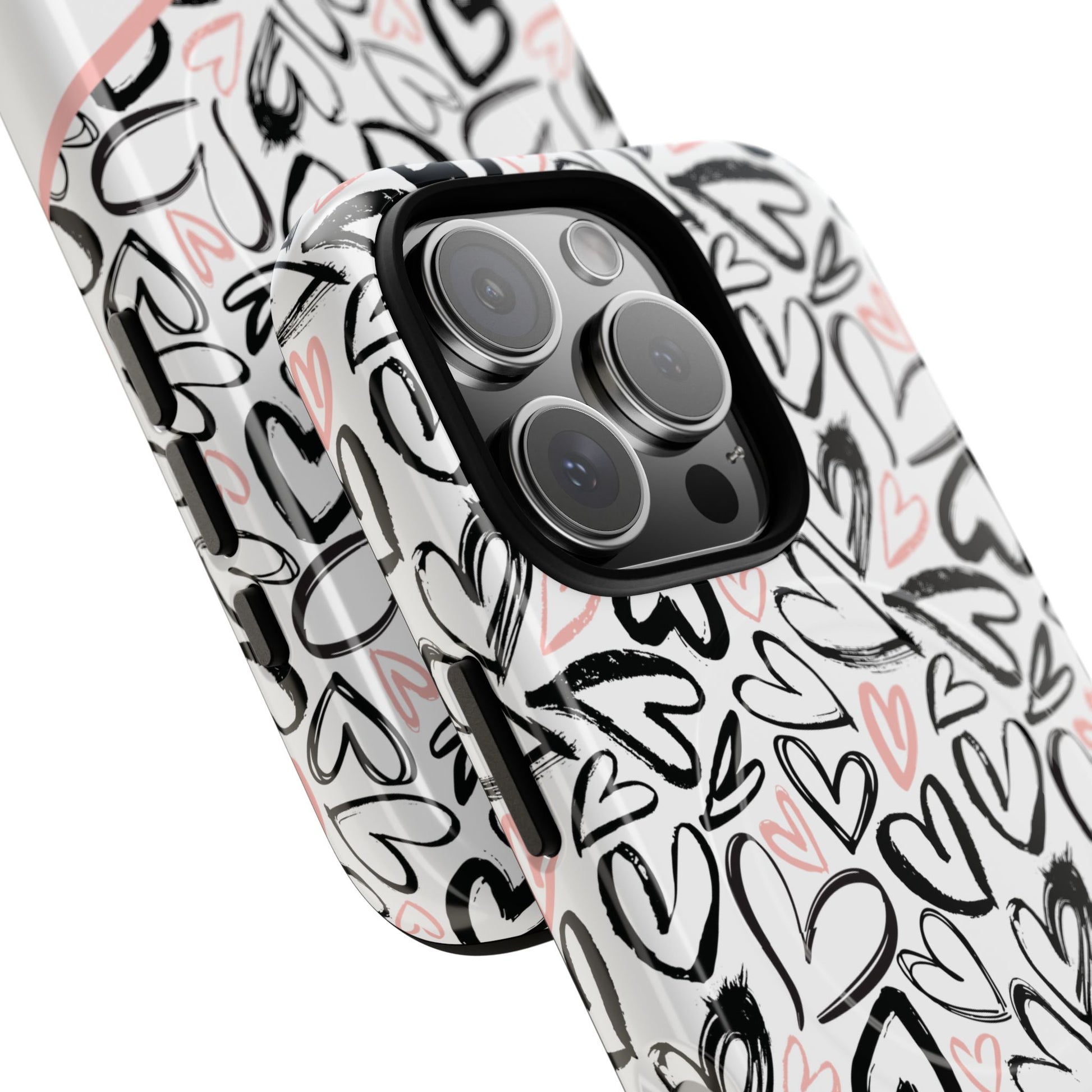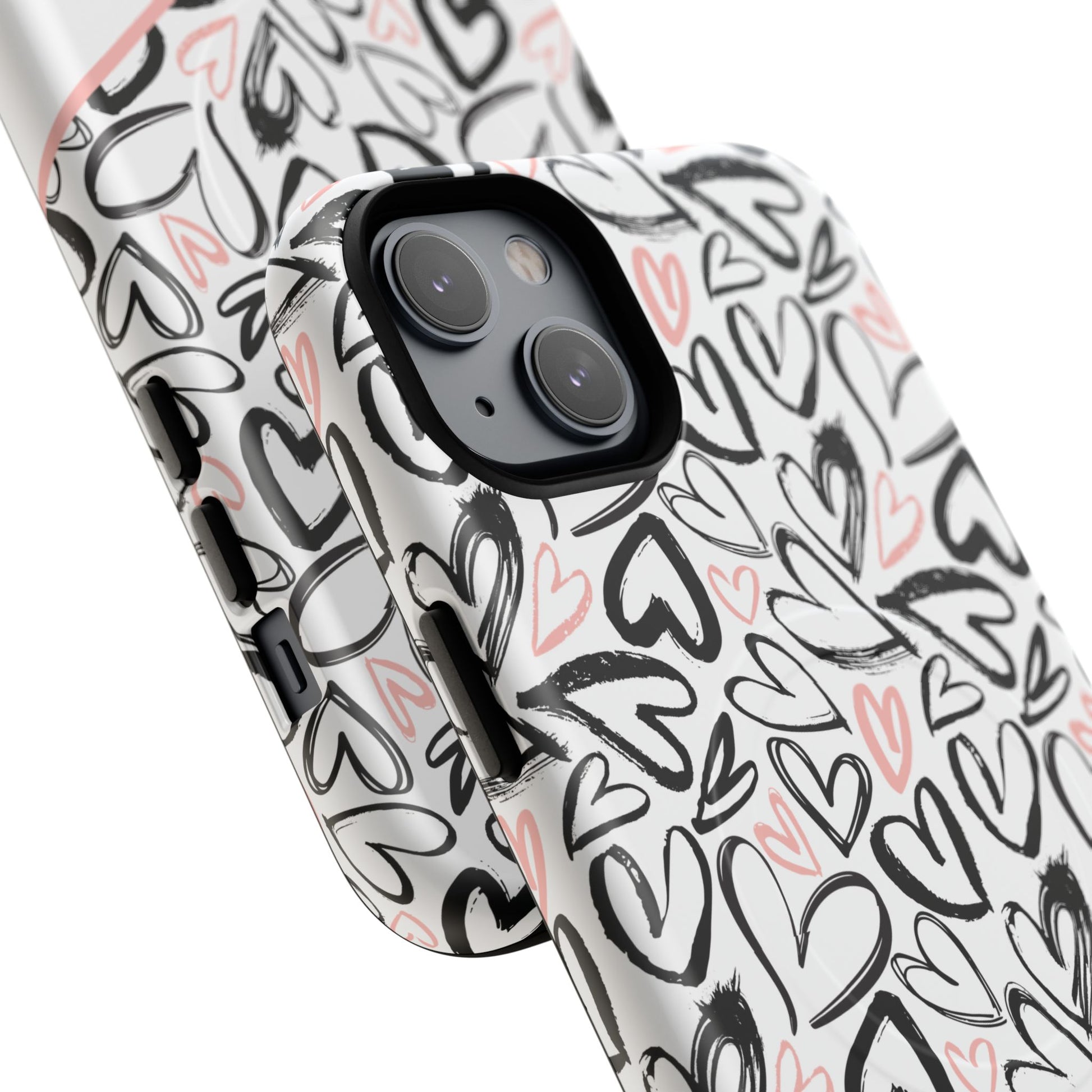 Heart Scribbles Tough Magnetic MagSafe®Case - Cute, Stylish, Gifts for Her, Love, Valentine's Day, iPhone® 13, 14, 15, 16, 17, Pro, Pro Max, Plus Cases.