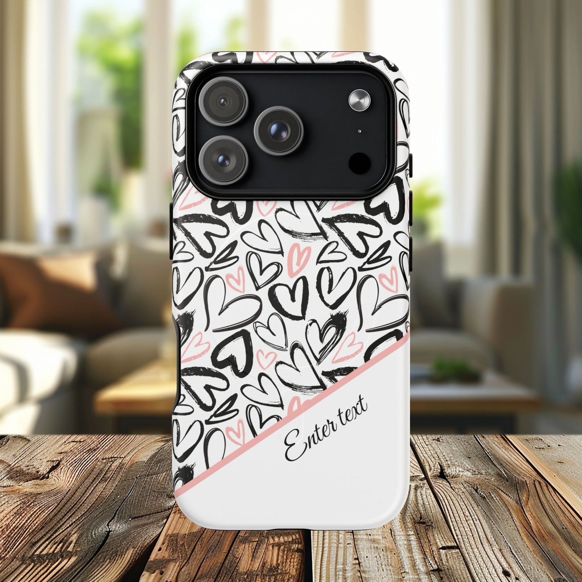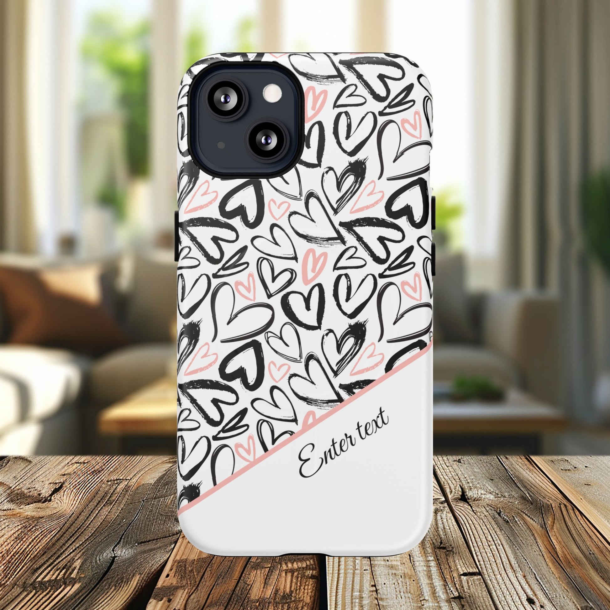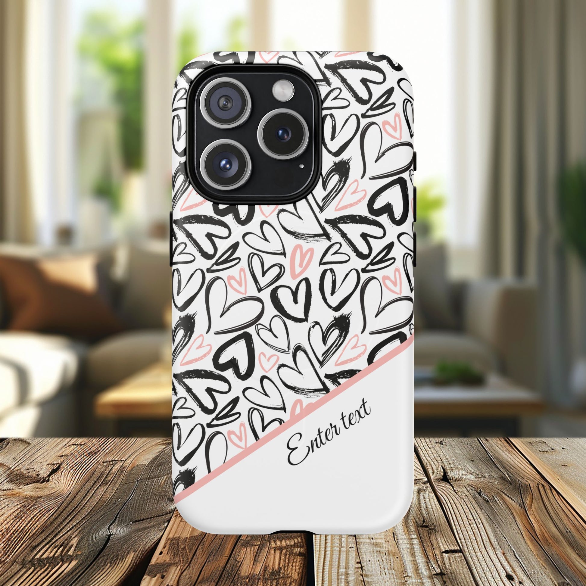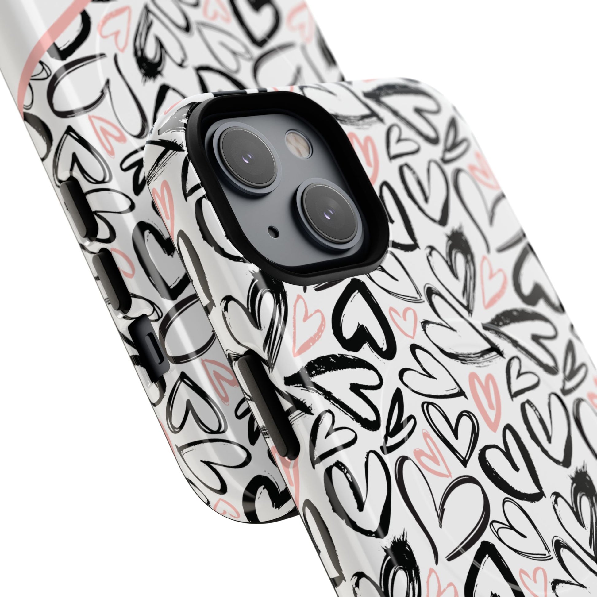 Heart Scribbles Tough Magnetic MagSafe®Case - Cute, Stylish, Gifts for Her, Love, Valentine's Day, iPhone® 13, 14, 15, 16, 17, Pro, Pro Max, Plus Cases.