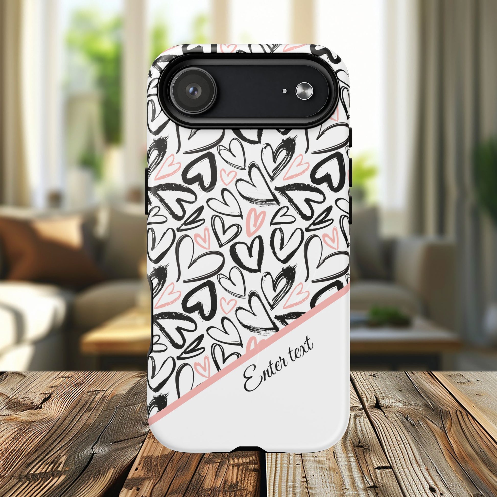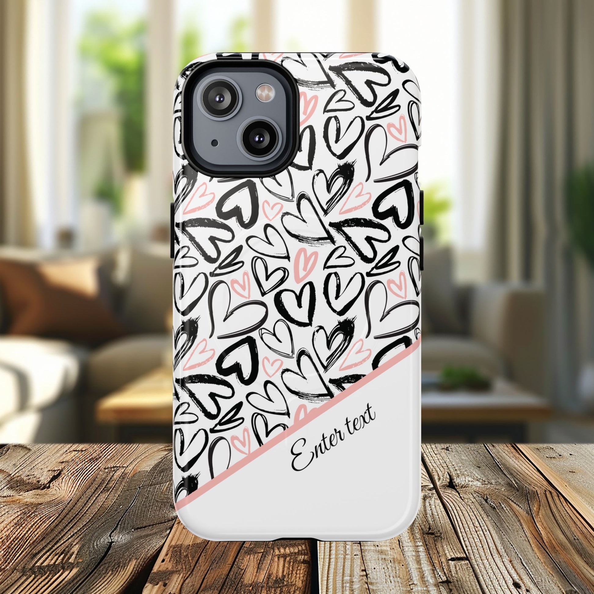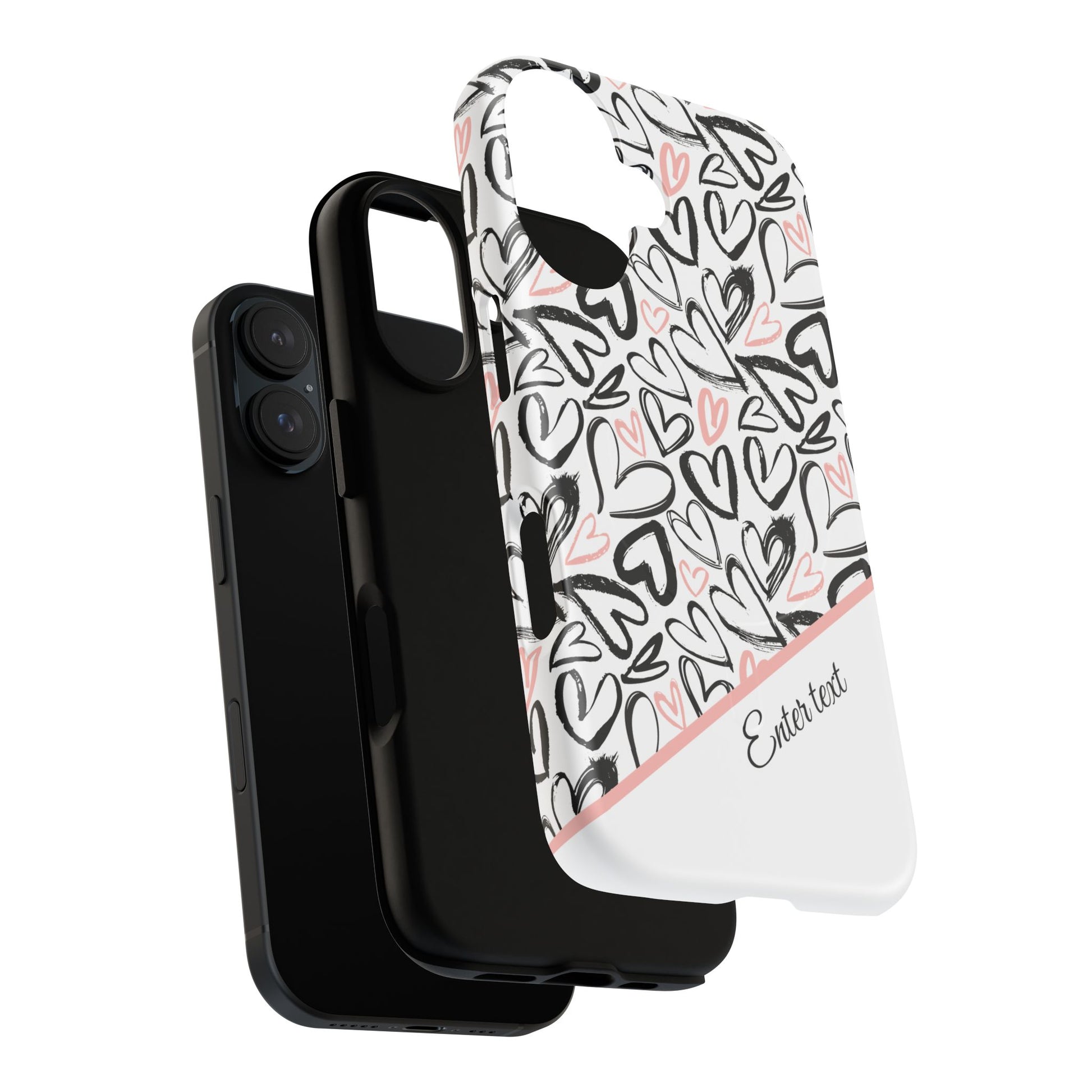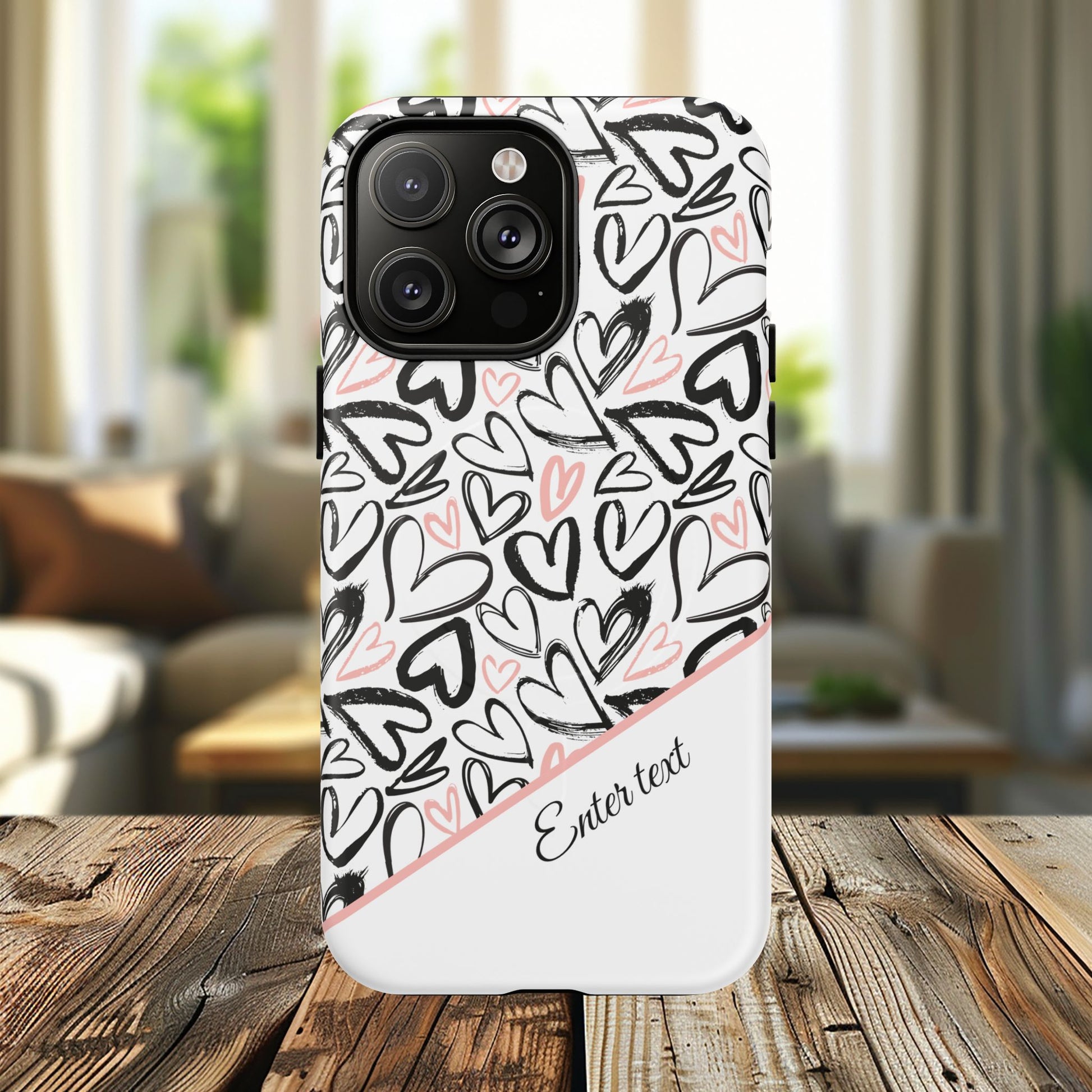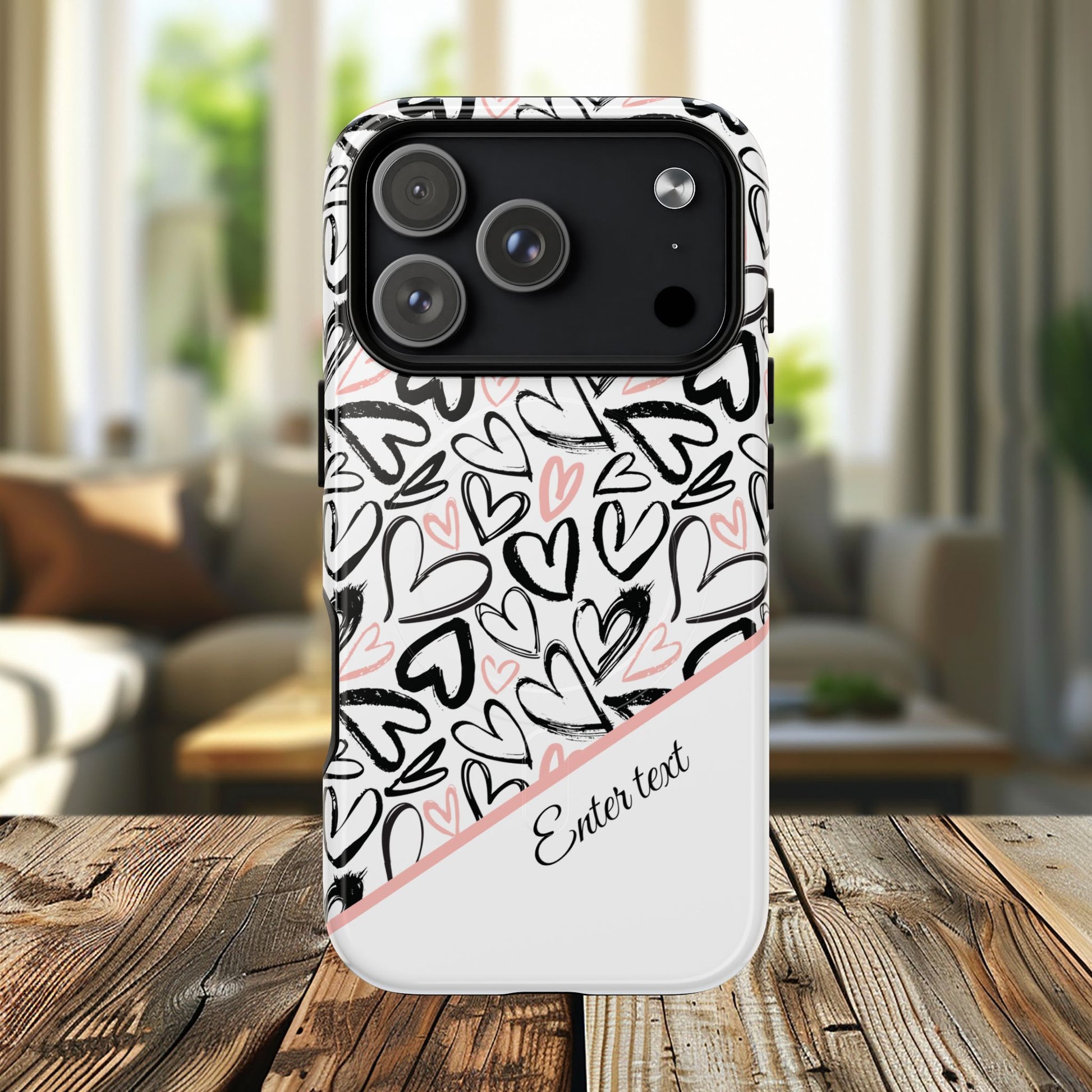 Heart Scribbles Tough Magnetic MagSafe®Case - Cute, Stylish, Gifts for Her, Love, Valentine's Day, iPhone® 13, 14, 15, 16, 17, Pro, Pro Max, Plus Cases.