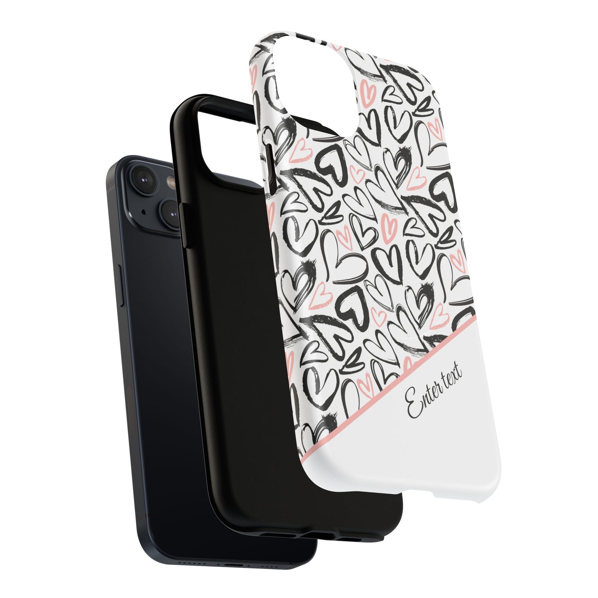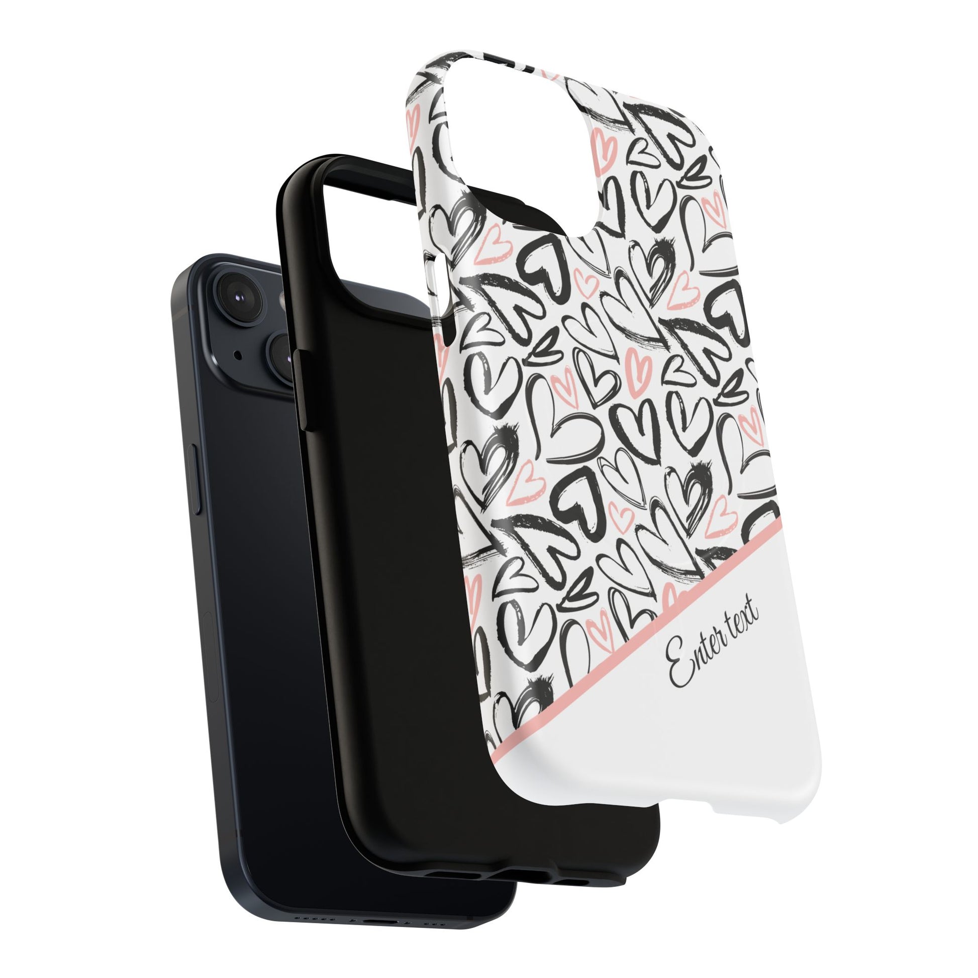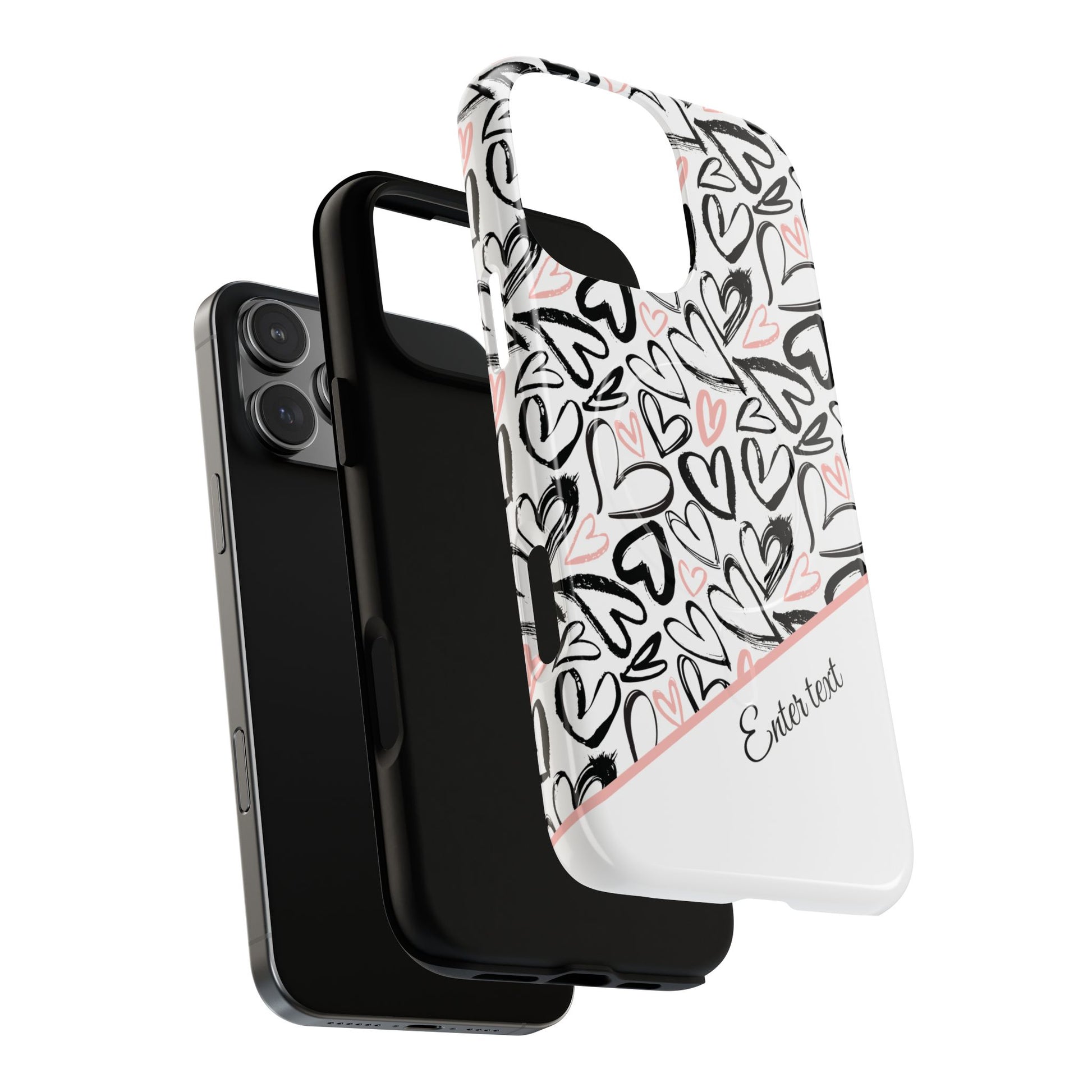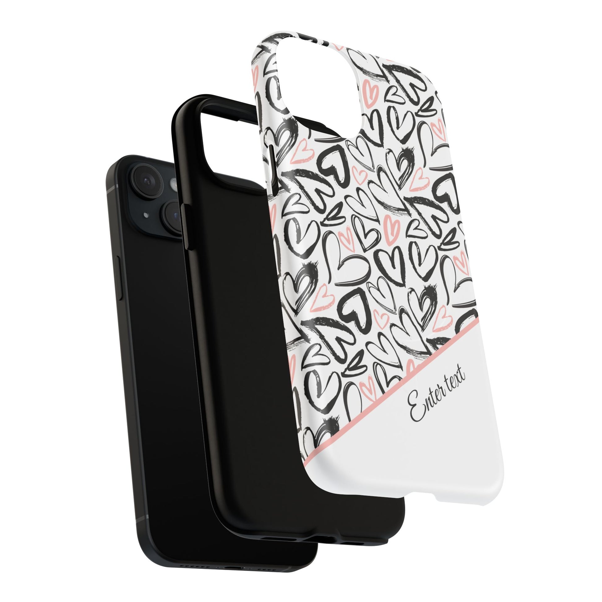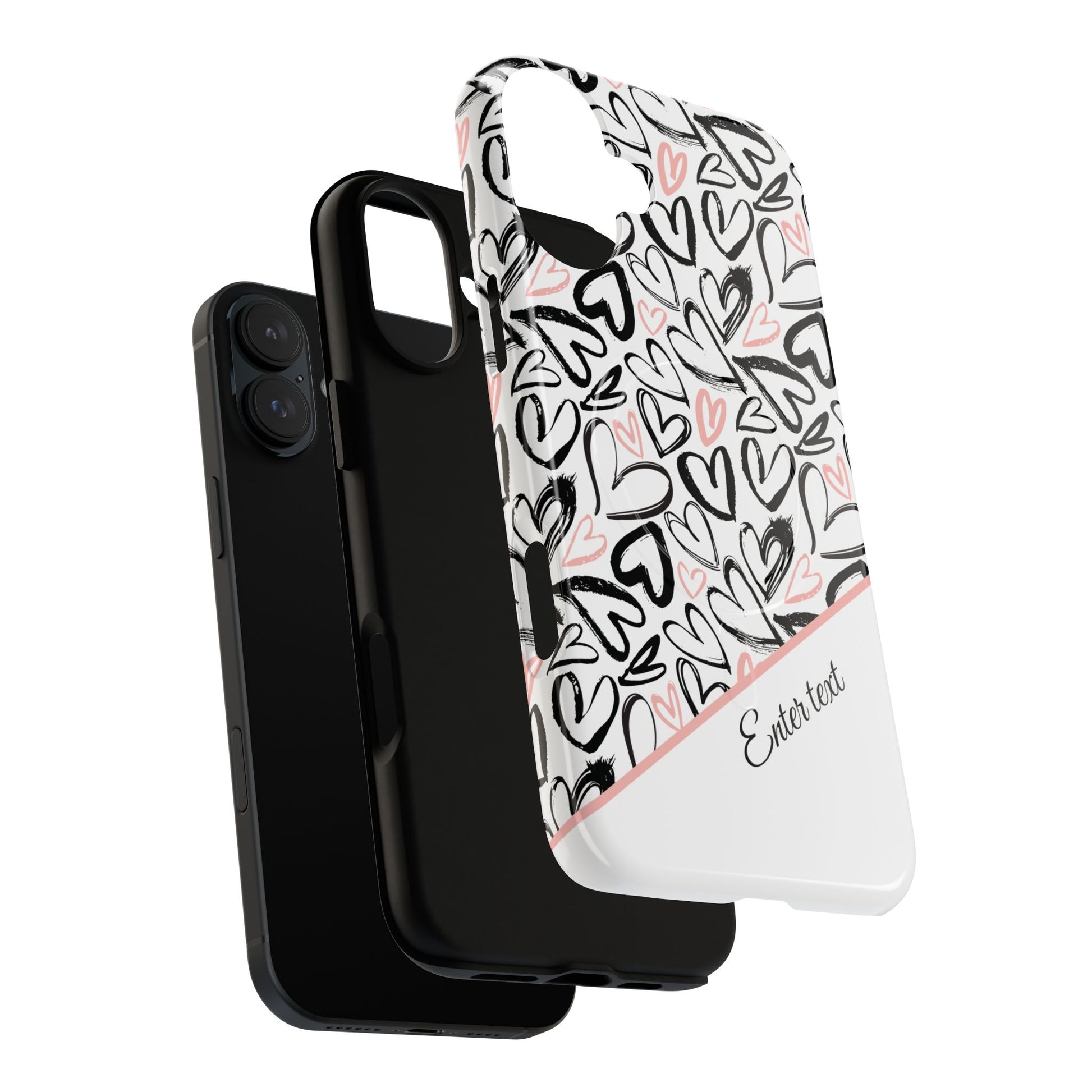Heart Scribbles Tough Magnetic MagSafe®Case - Cute, Stylish, Gifts for Her, Love, Valentine's Day, iPhone® 13, 14, 15, 16, 17, Pro, Pro Max, Plus Cases.