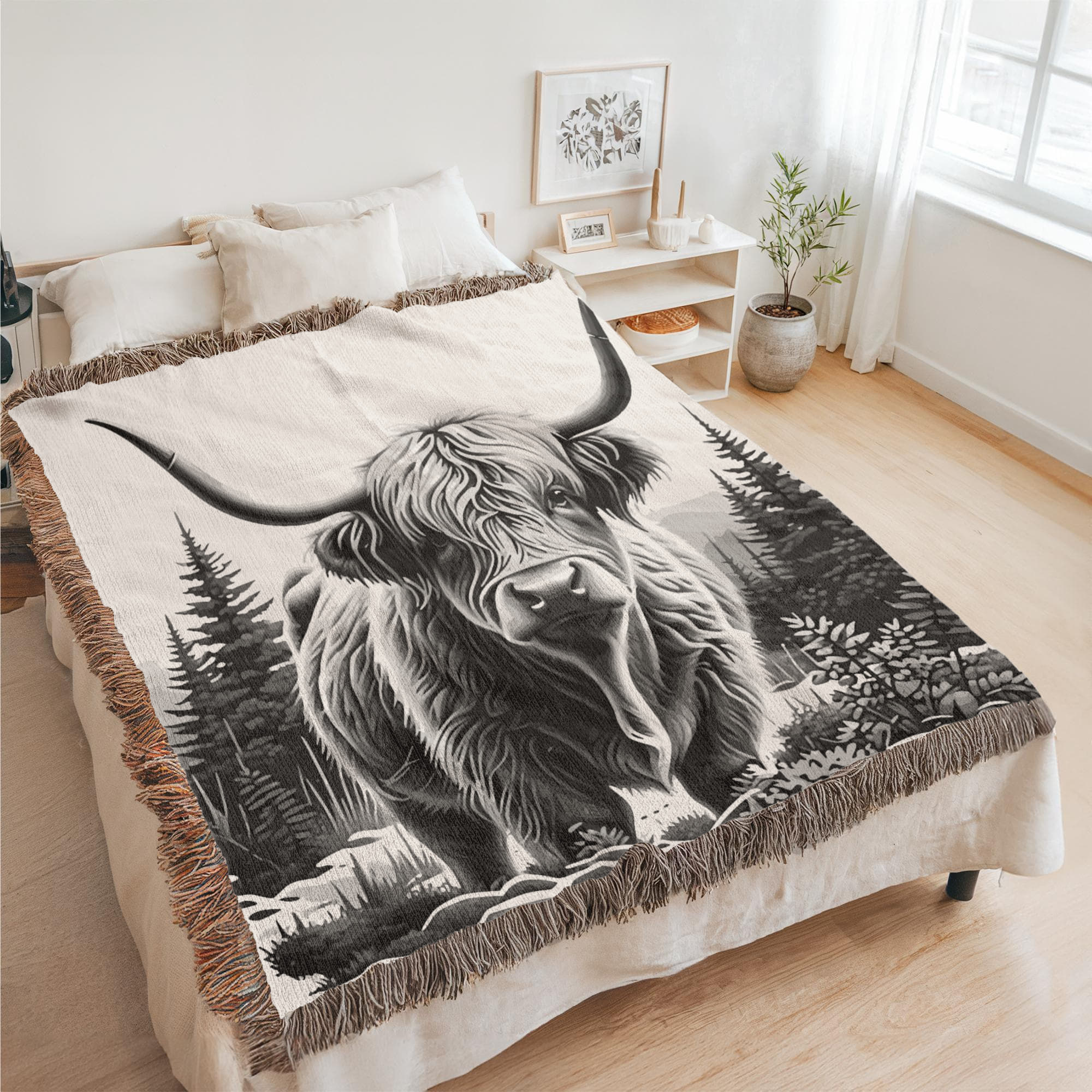 Highland Cow Heirloom Woven Blanket.