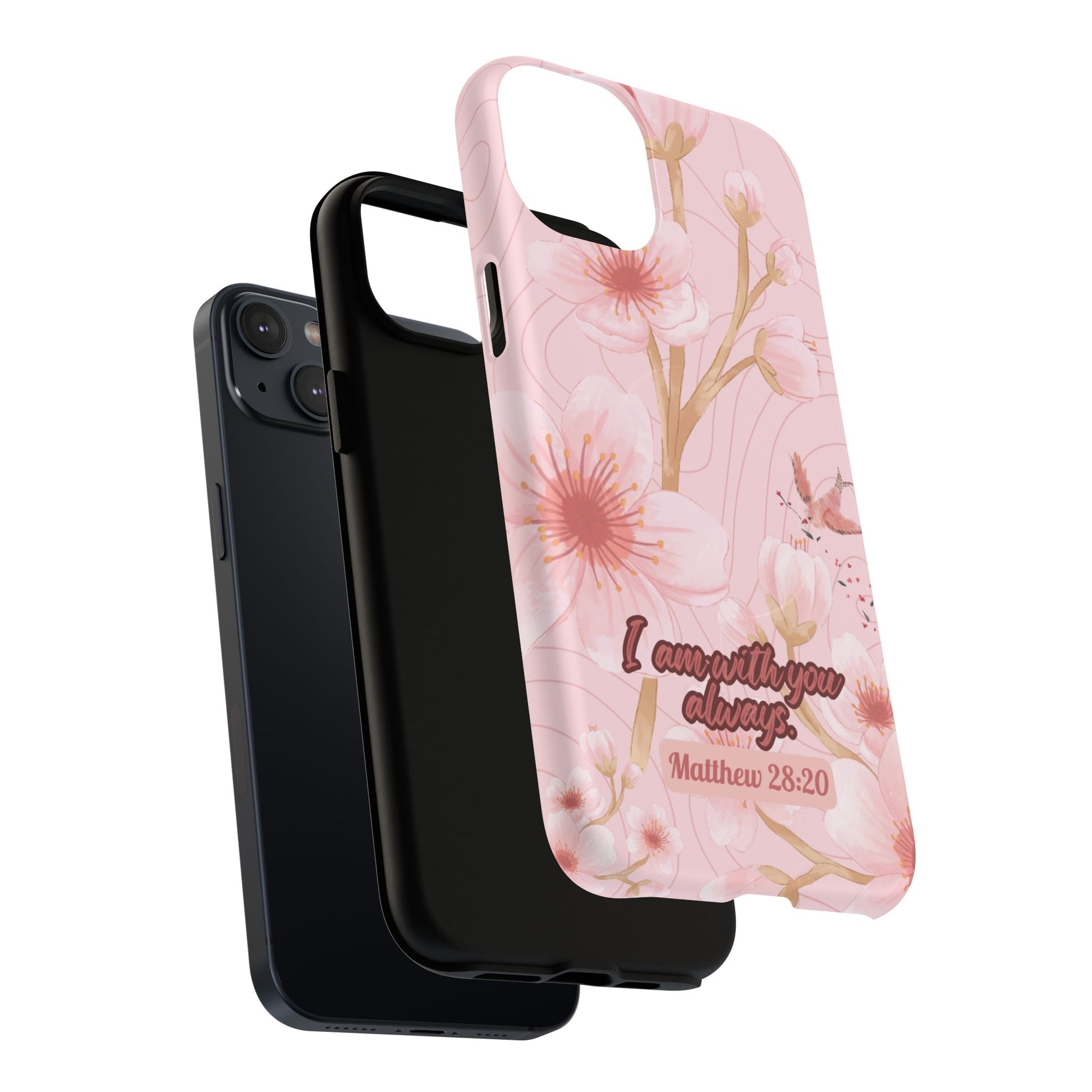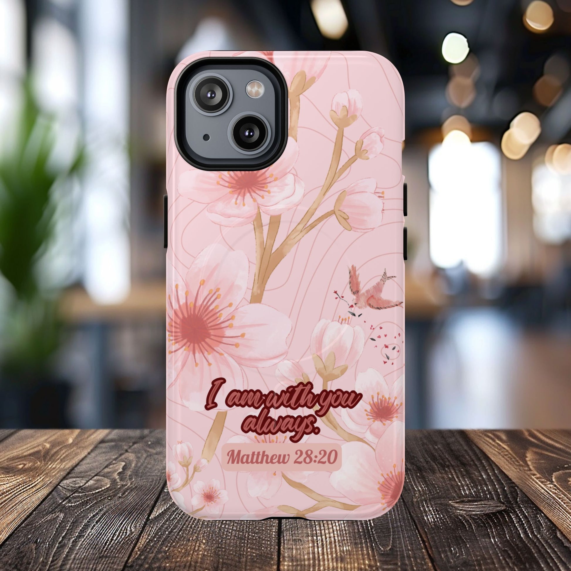 I am with You Always Matthew 28:20, Inspirational Gift, Floral Bible Verse, Magnetic Tough MagSafe® iPhone®, 13, 14, 15, 16, 17, Pro, Pro Max, Plus Cases.