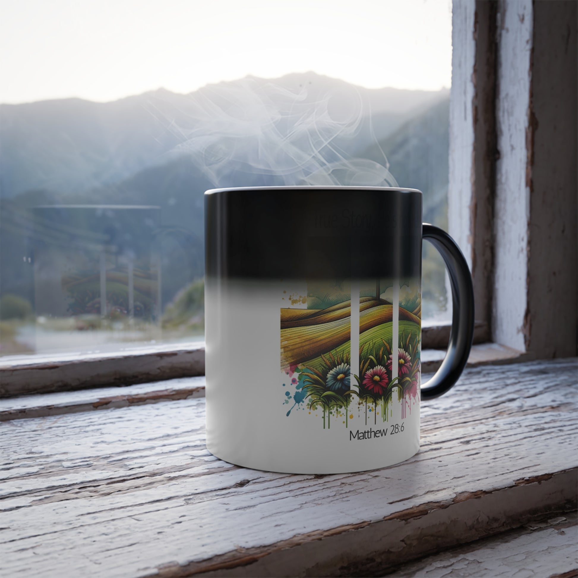 Inspirational Color Morphing Mug - 'True Story, He's Not Here' - Vibrant Landscape for Faith Lovers