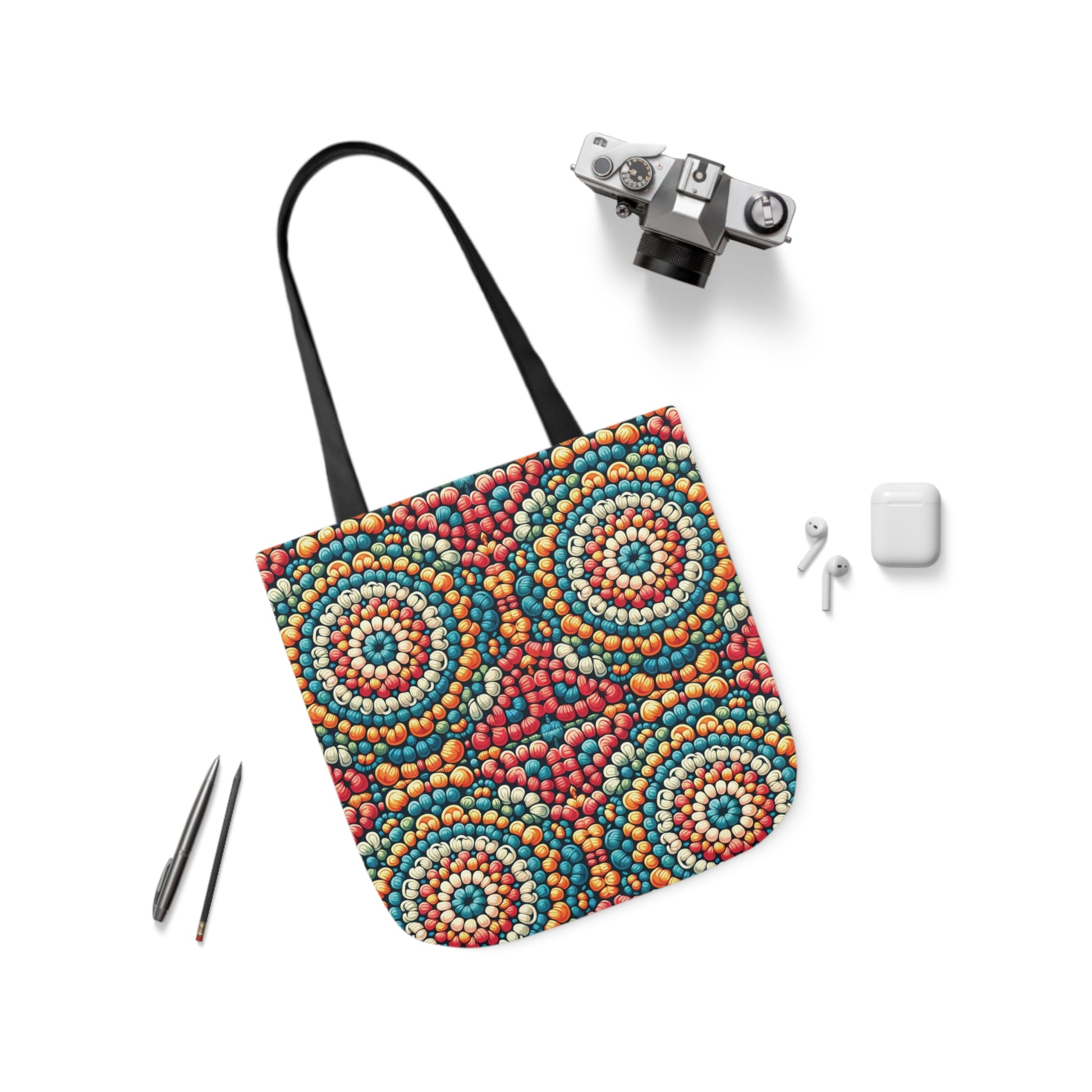 Whether you're heading out for a day of shopping, running errands, or embarking on a trip, the Kaleidoscope Canvas Tote Bag is your perfect companion. Choose any (or all) of the three sizes and enjoy a blend of style and practicality.