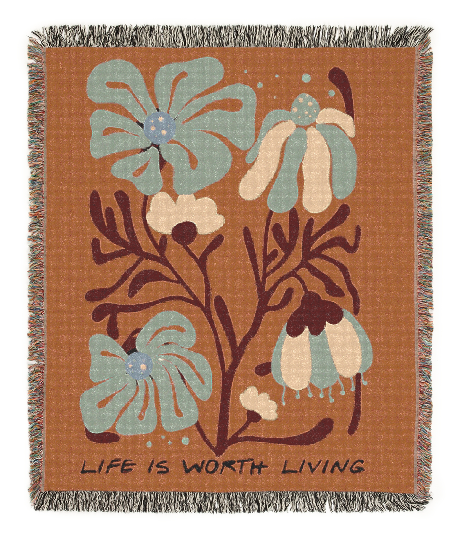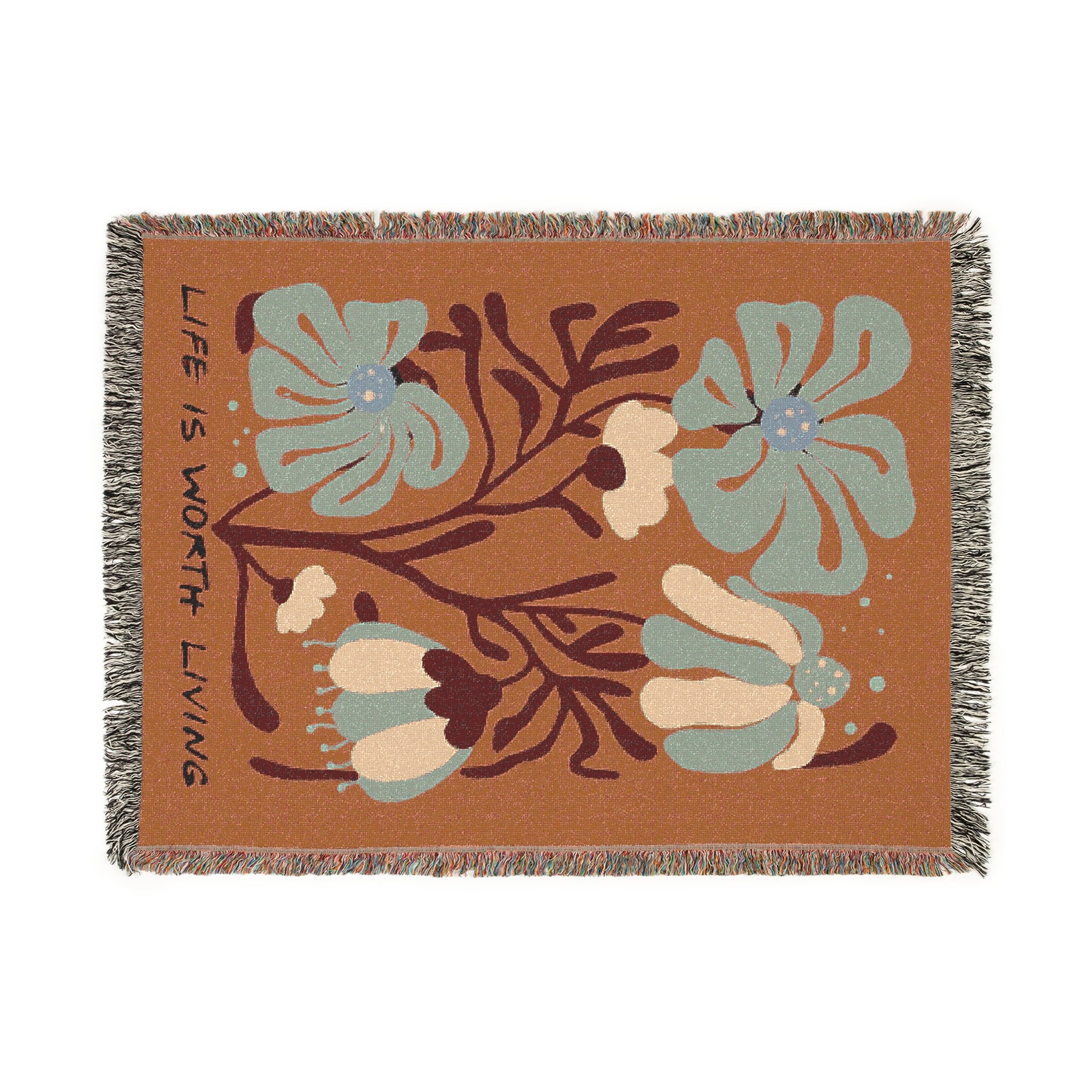 Whether you're using it as a statement wall hanging, a cozy addition to your sofa, or a treasured gift, the Life is Worth Living Tapestry Woven Blanket offers timeless beauty and everyday comfort.