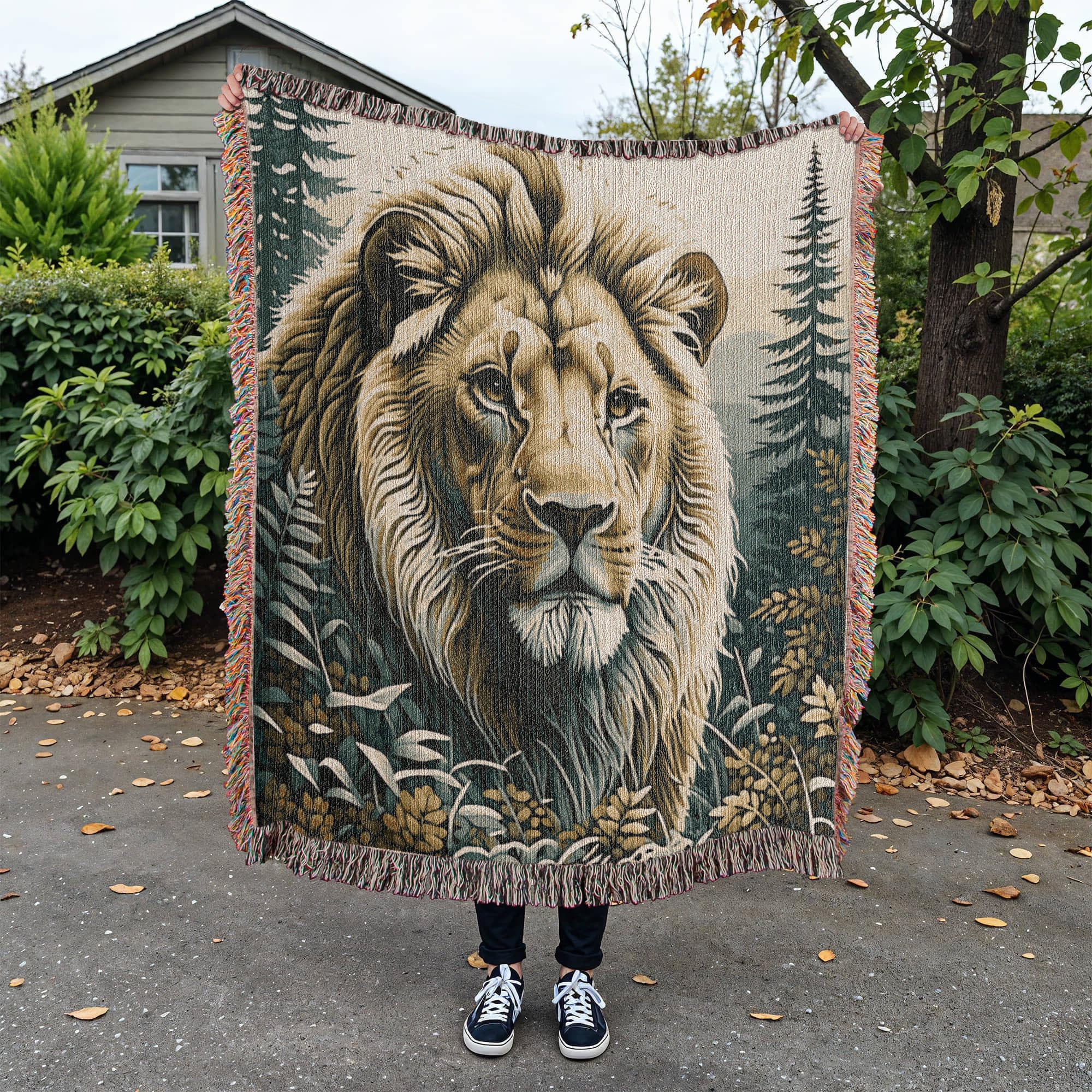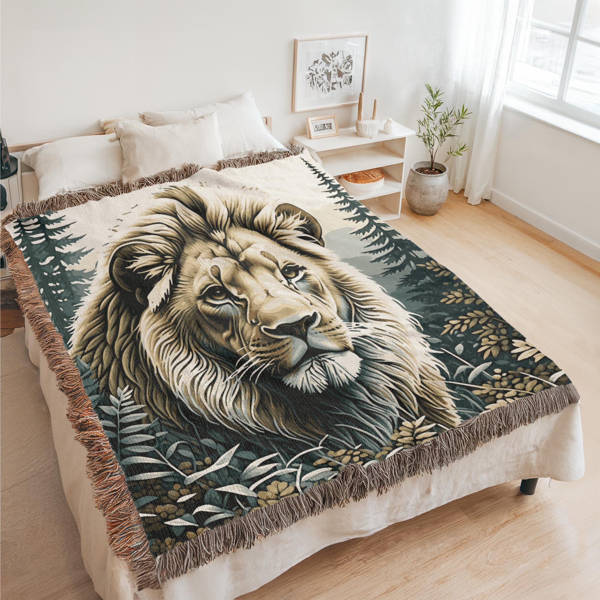 Lion Illustration Heirloom Woven Blanket- Gift for Mothers/Fathers/Sons/Daughters.