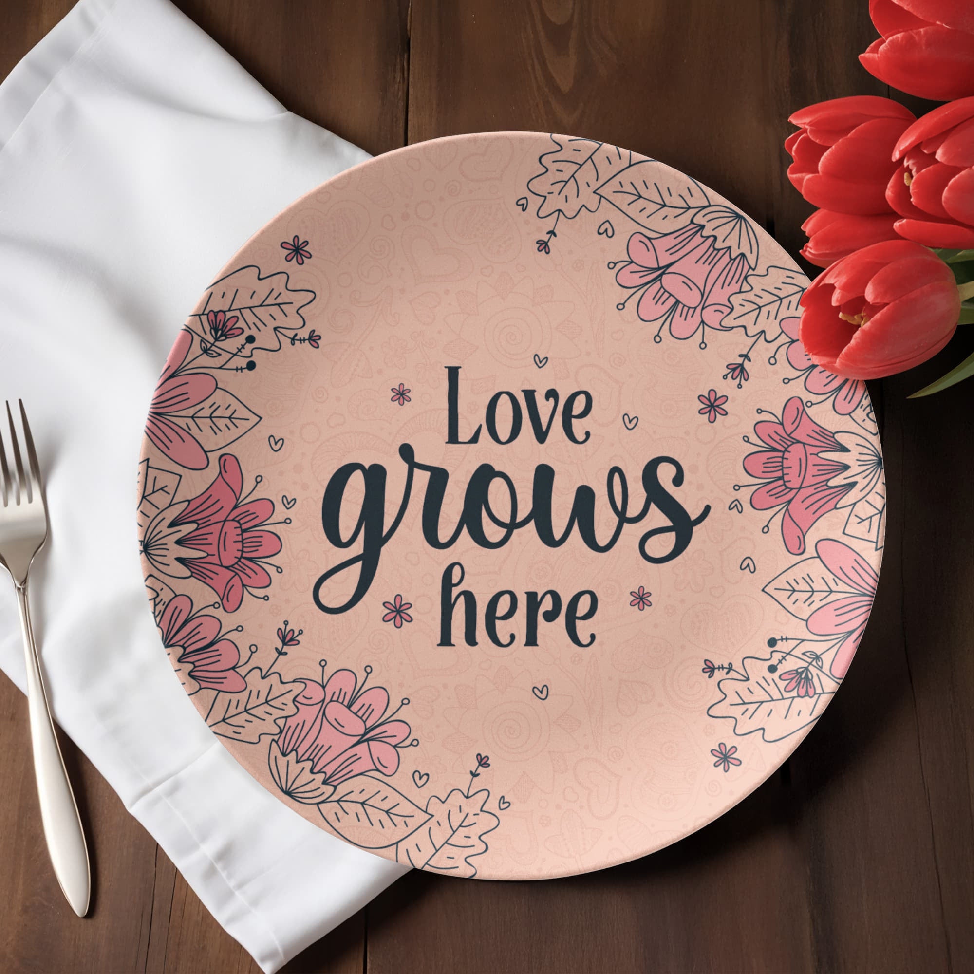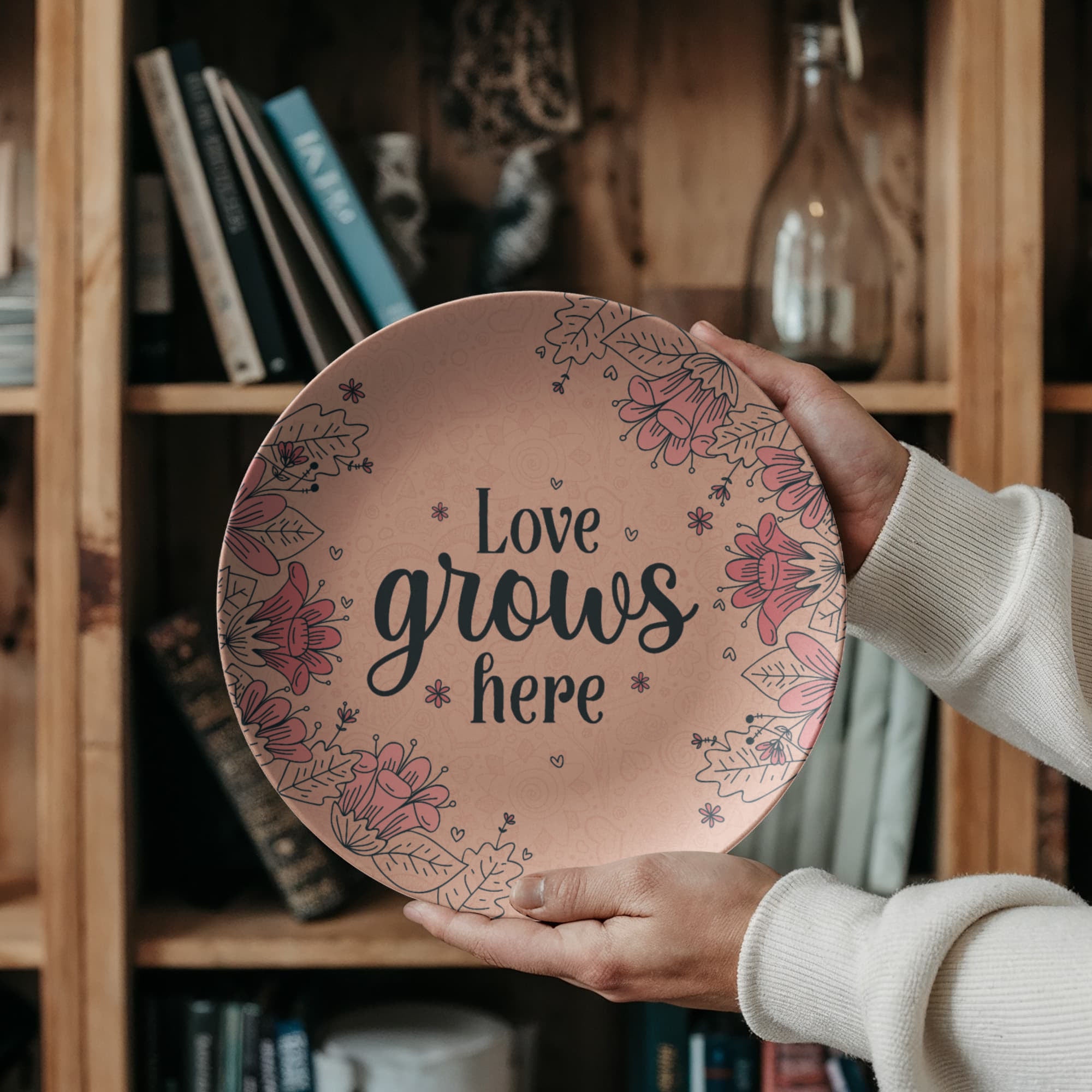 Love Grows Here 10'' Plate - a Gift for Mothers/Daughter/Wife.