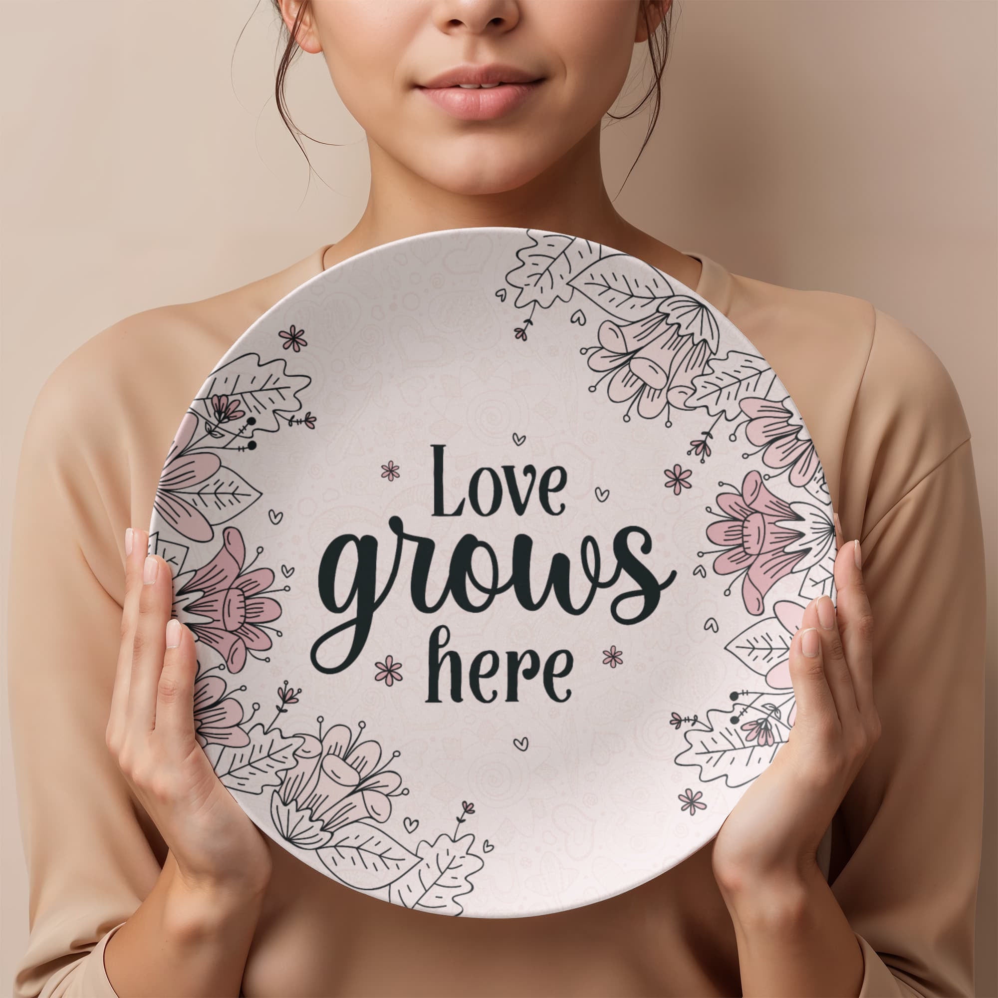 Love Grows Here 10'' Plate - a Gift for Mothers/Daughter/Wife.