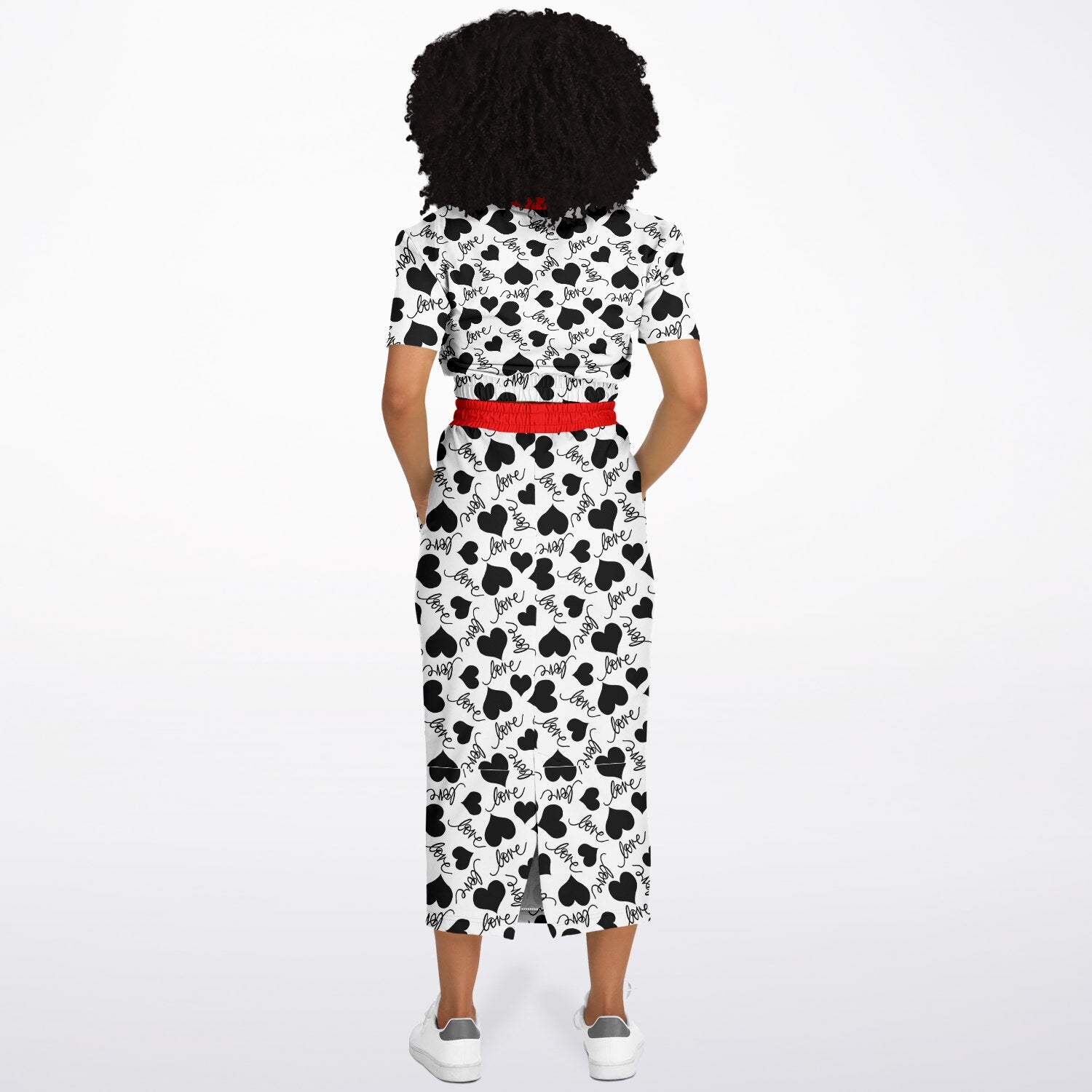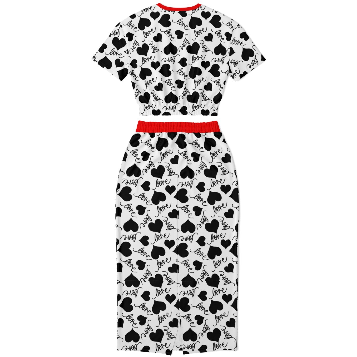 LOVE & HEARTS Athletic Cropped Short Sleeve Sweatshirt and Long Pocket Skirt Set – AOP