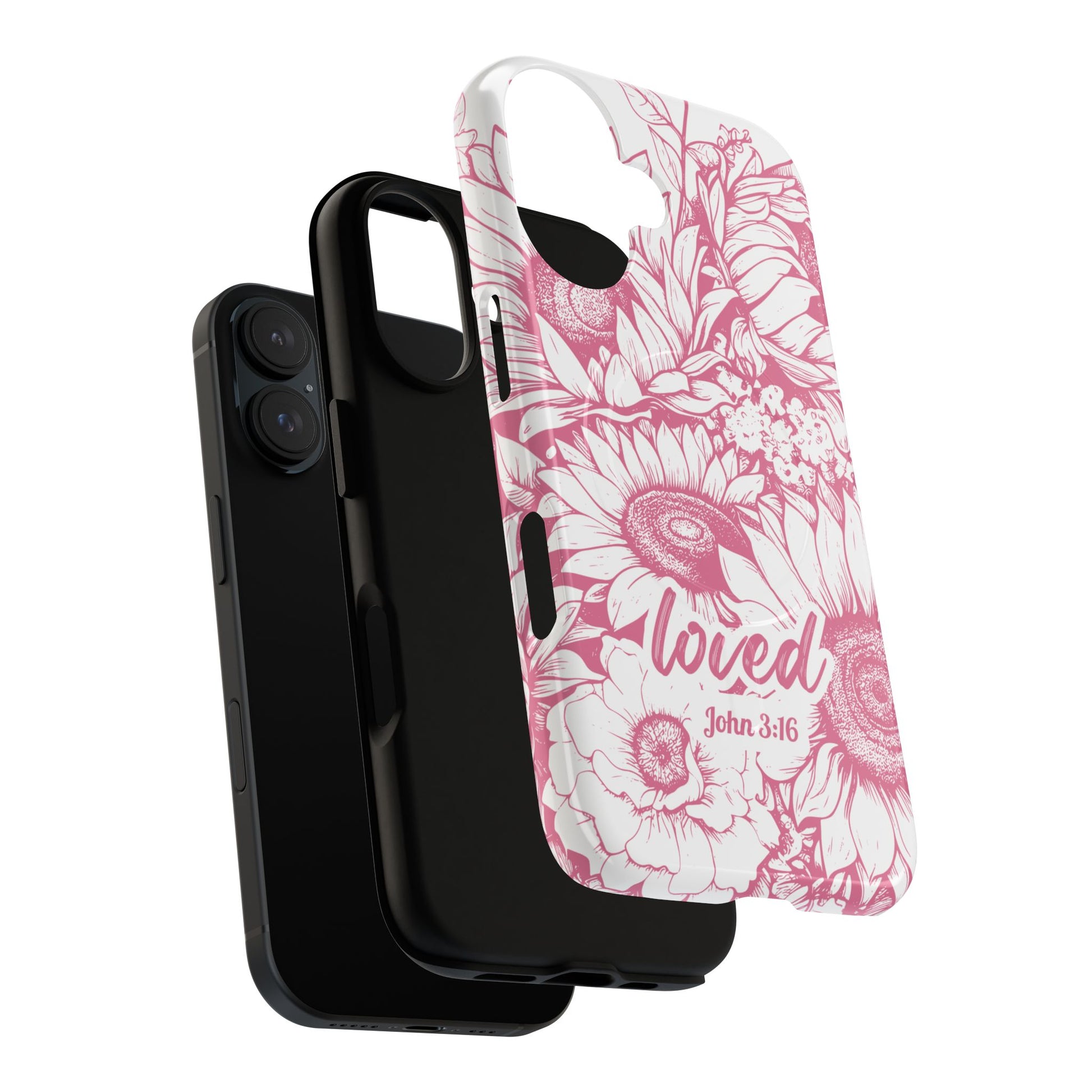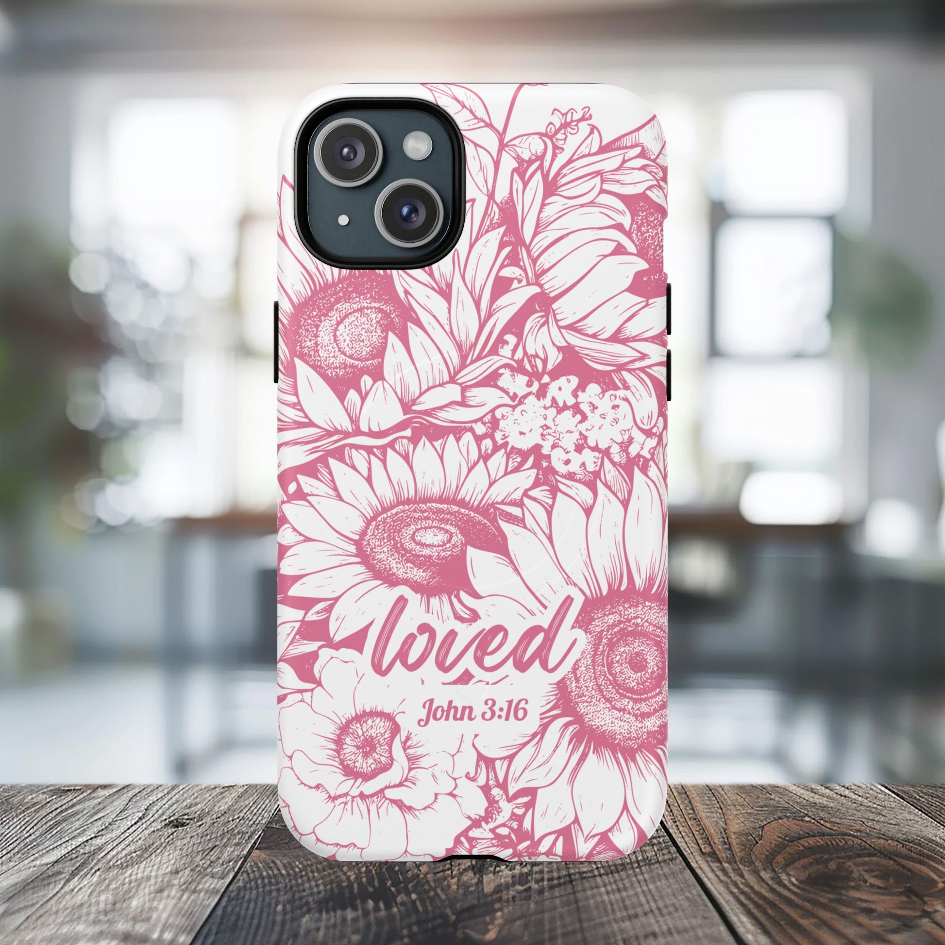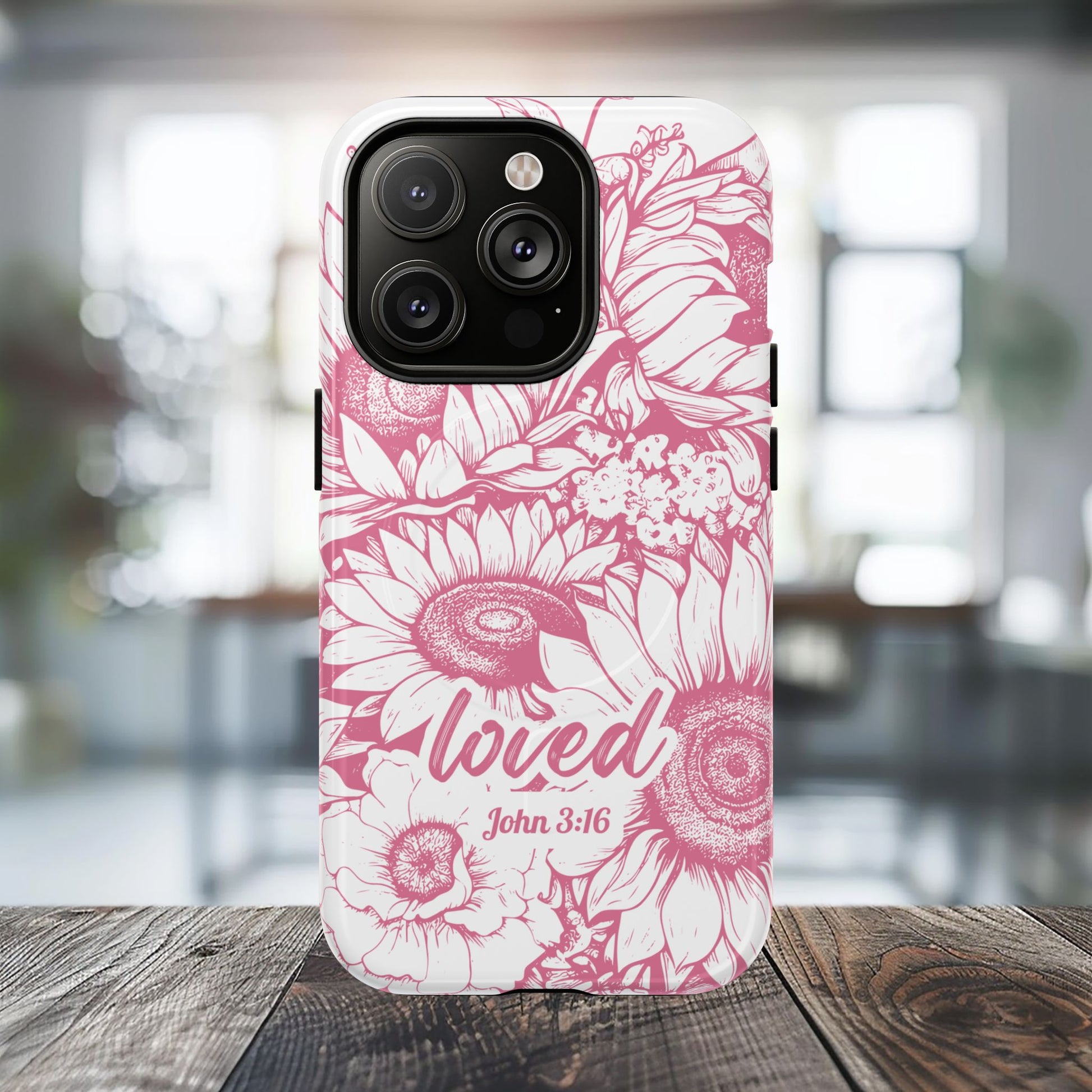 Loved John 3:16, Inspirational Gift, Tough iPhone Magnetic Case Scripture, Sunflower Bible Verse, MagSafe® iPhone® Tough Case, iPhone 14, iPhone 15, iPhone 16, Pro, Pro Max, Plus