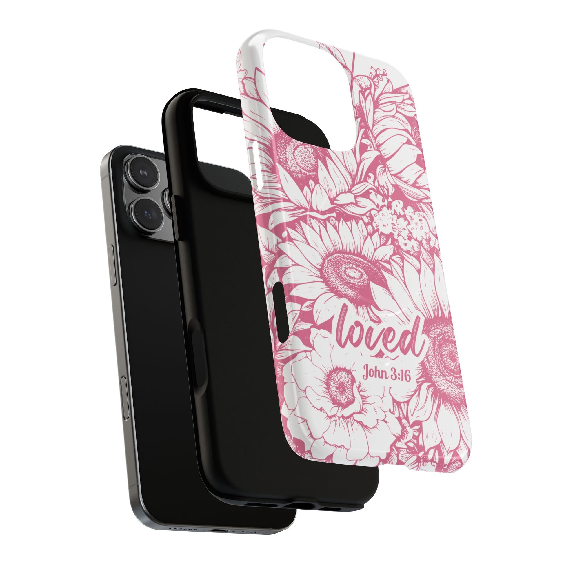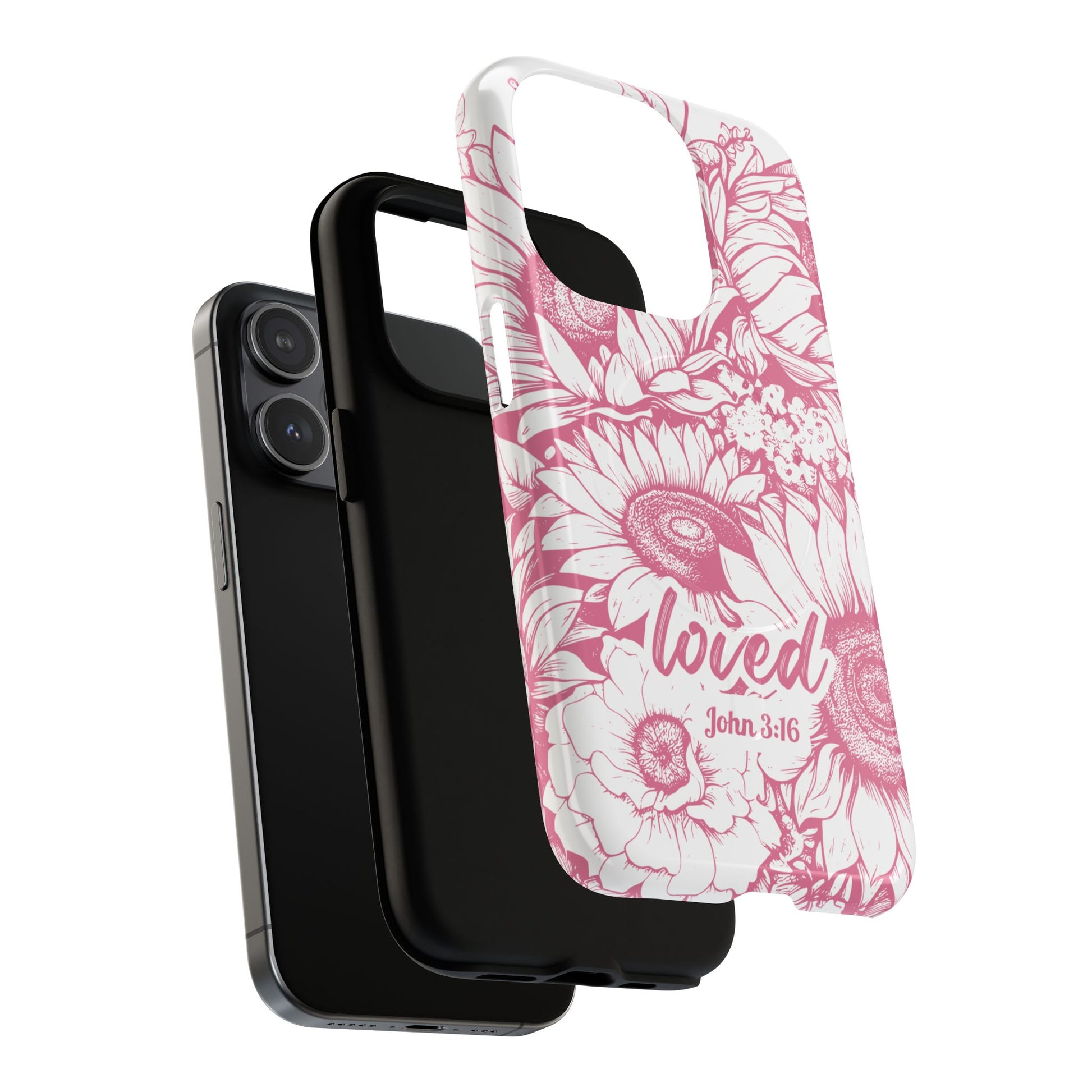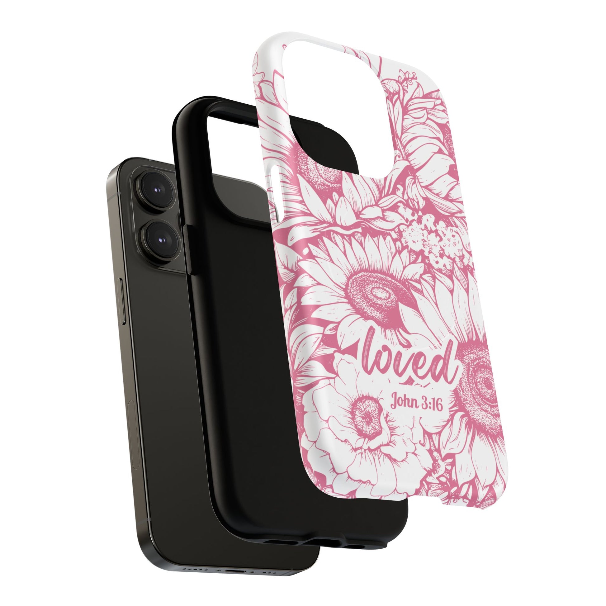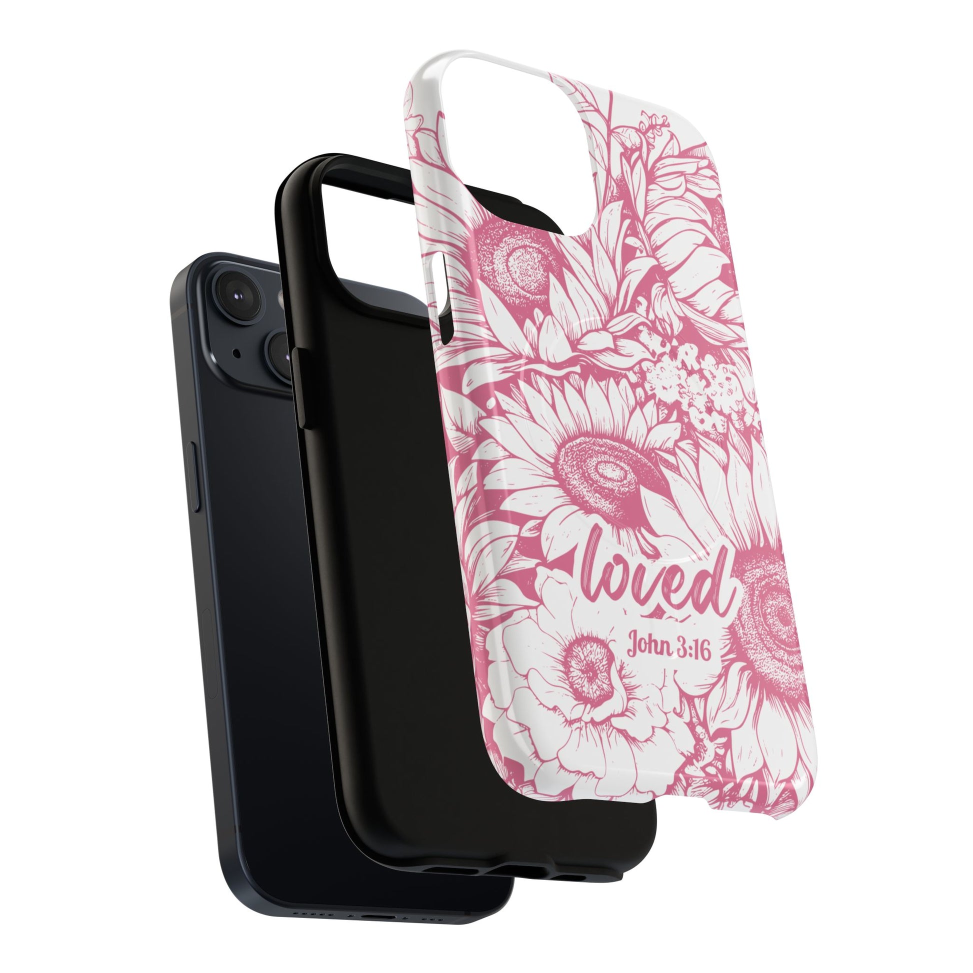 Loved John 3:16, Inspirational Gift, Tough iPhone Magnetic Case Scripture, Sunflower Bible Verse, MagSafe® iPhone® Tough Case, iPhone 14, iPhone 15, iPhone 16, Pro, Pro Max, Plus