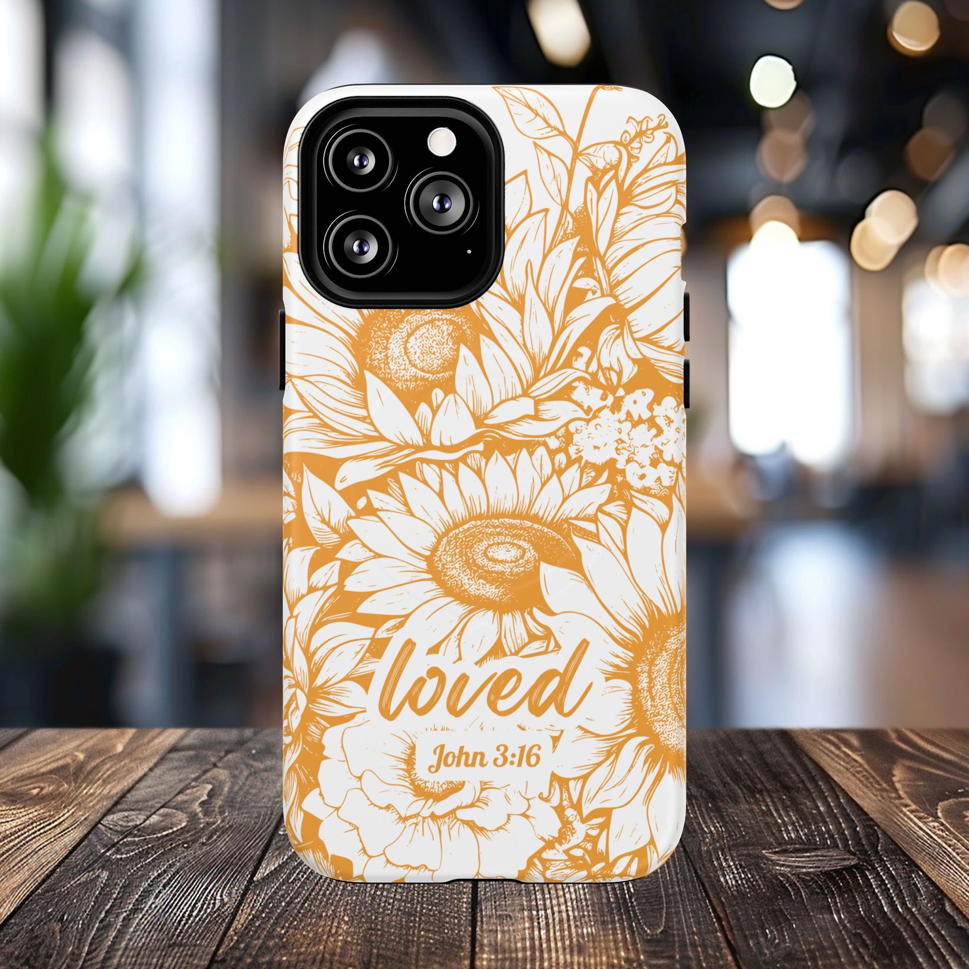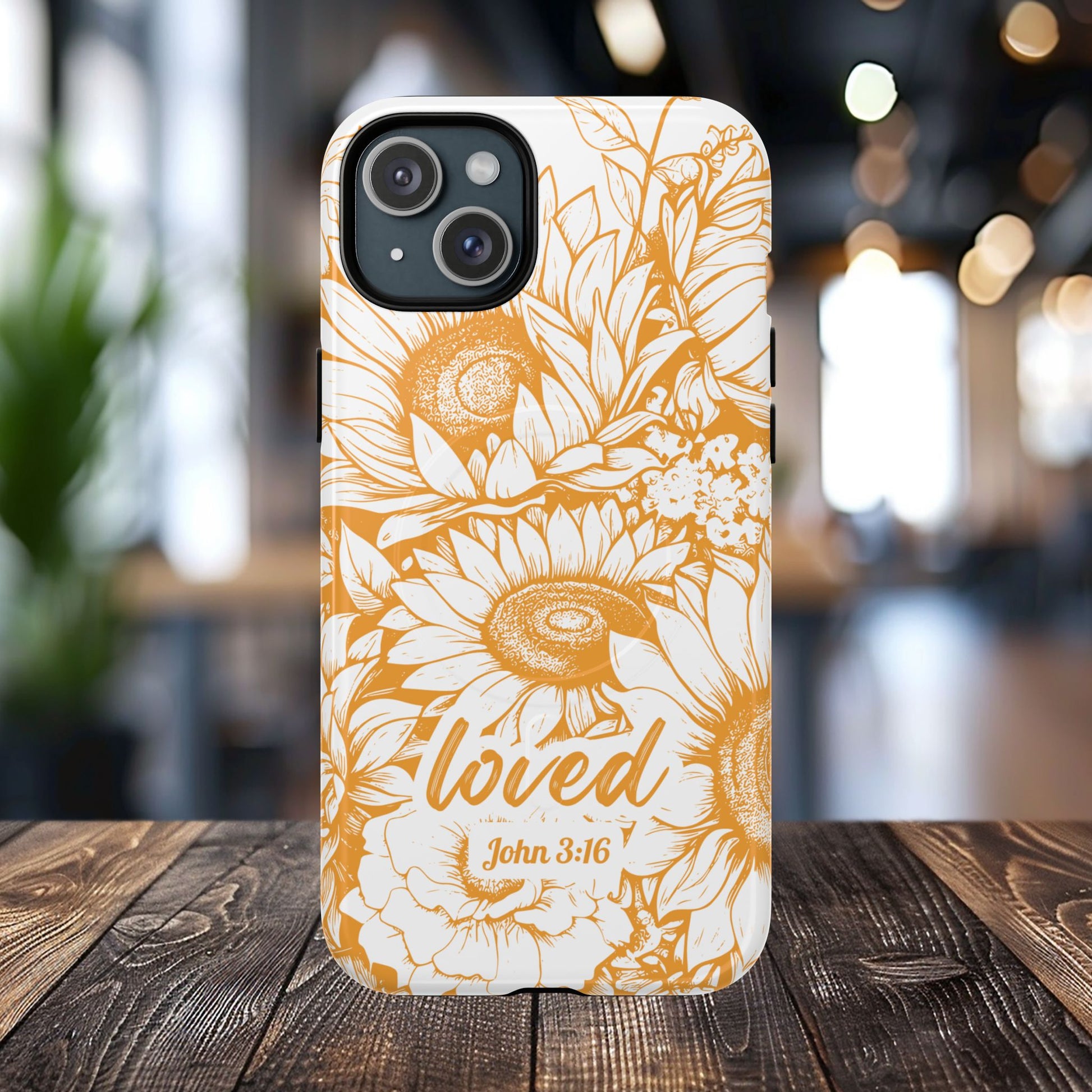 Loved John 3:16, Inspirational Gift, Tough iPhone Magnetic Case Scripture, Sunflower Bible Verse, MagSafe® iPhone® Tough Case, iPhone 14, iPhone 15, iPhone 16, Pro, Pro Max, Plus