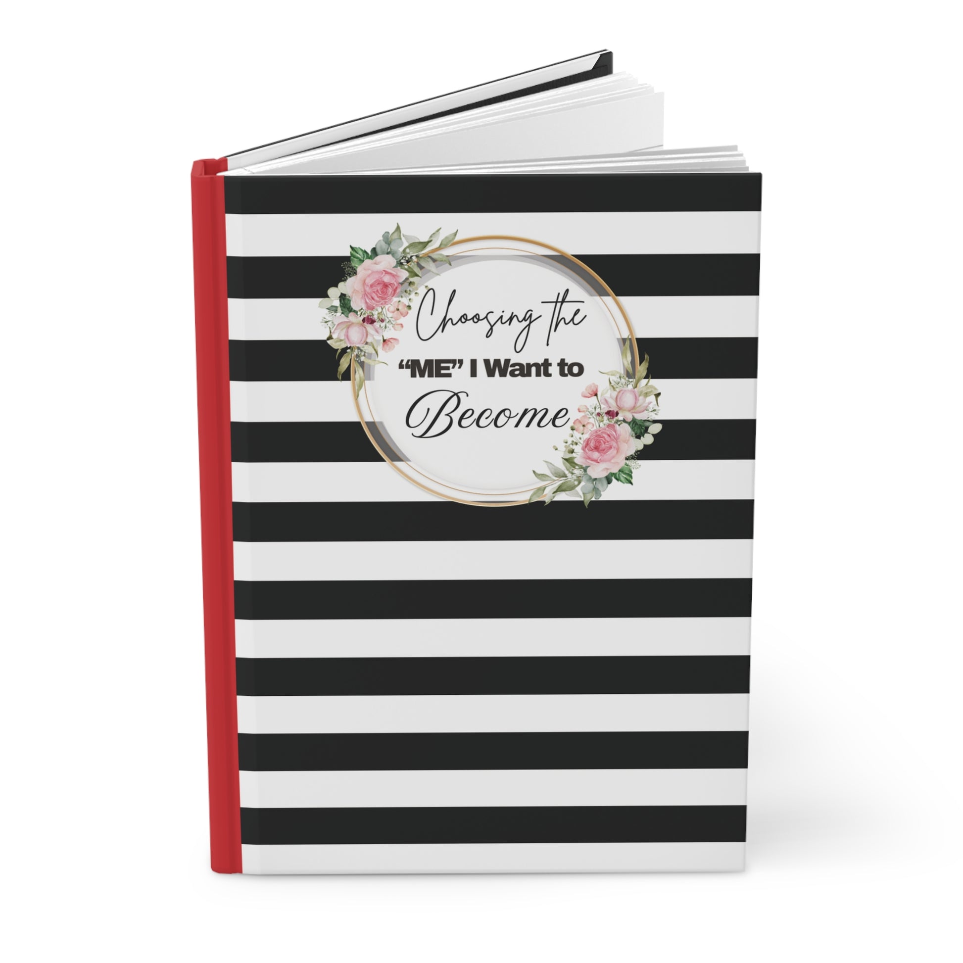 Motivational Hardcover Journal, Elegant Striped Notebook, Goal Setting Planner, Self-Improvement Diary, Gift for Women
