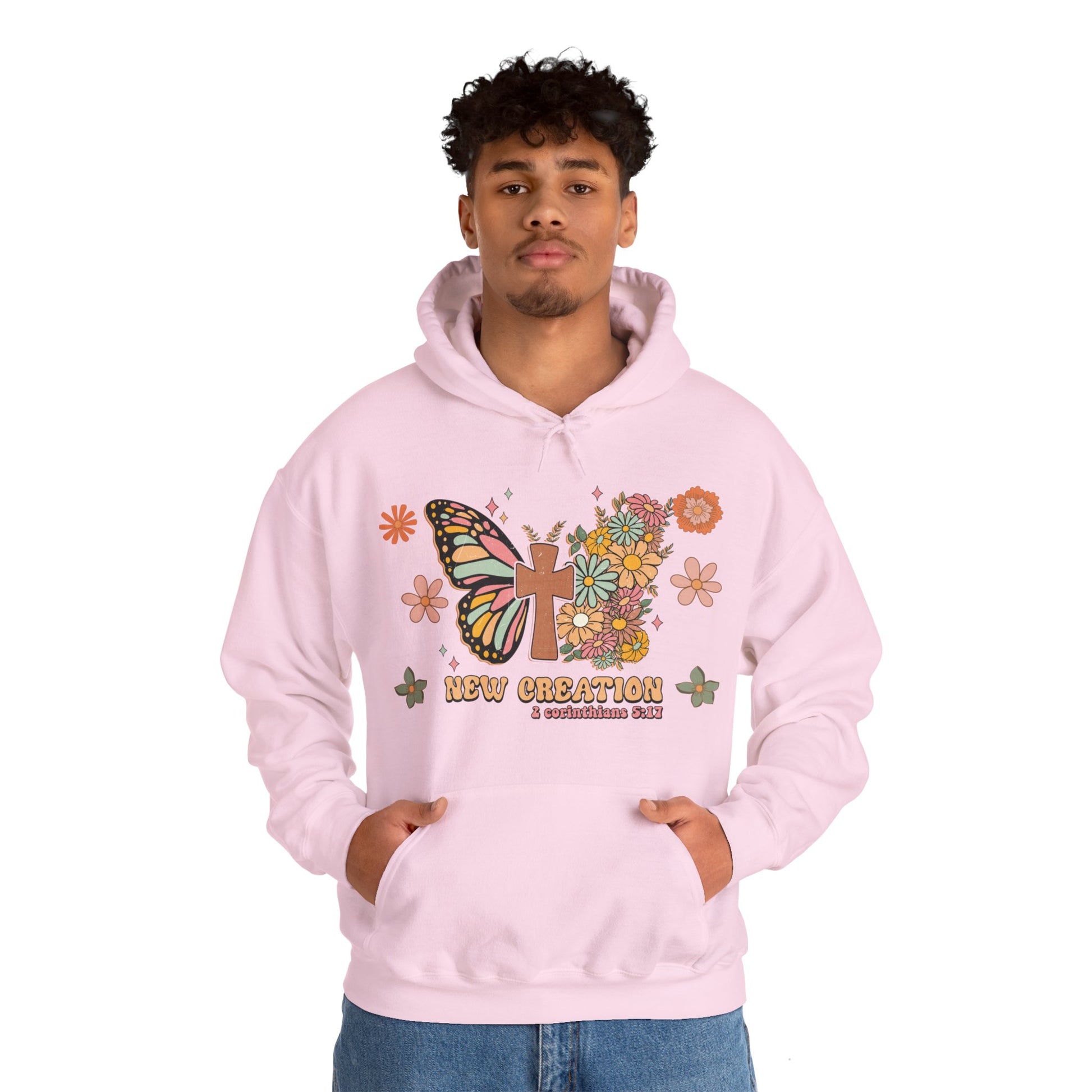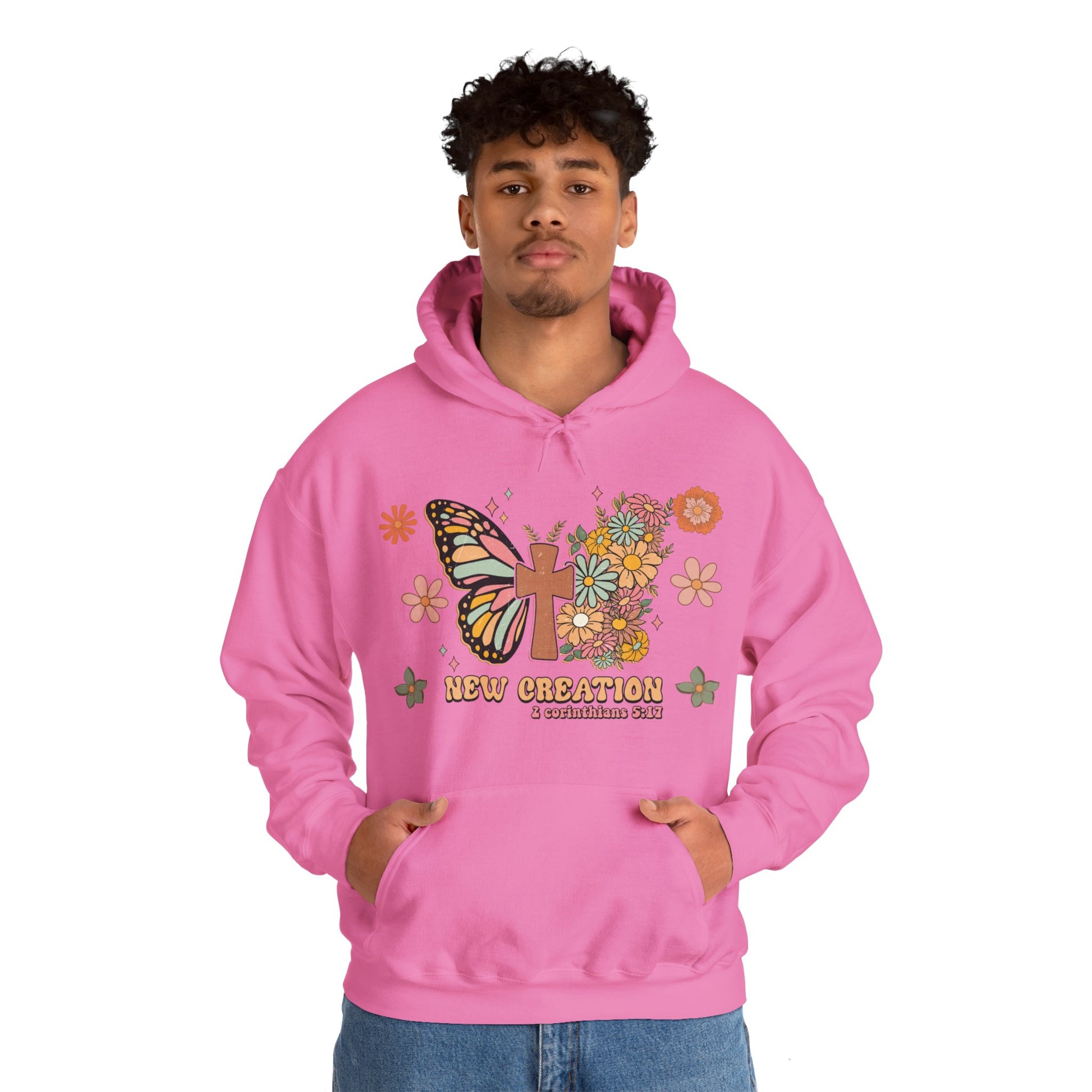 Introducing our "New Creation" Hooded Sweatshirt, where comfort meets style in perfect harmony. Crafted from a luxurious blend of cotton and polyester, this sweatshirt is the epitome of relaxation. With a medium-heavy fabric weighing 8.0 oz/yd² (271 g/m²), it provides the plushness, softness, and warmth you crave on chilly days.