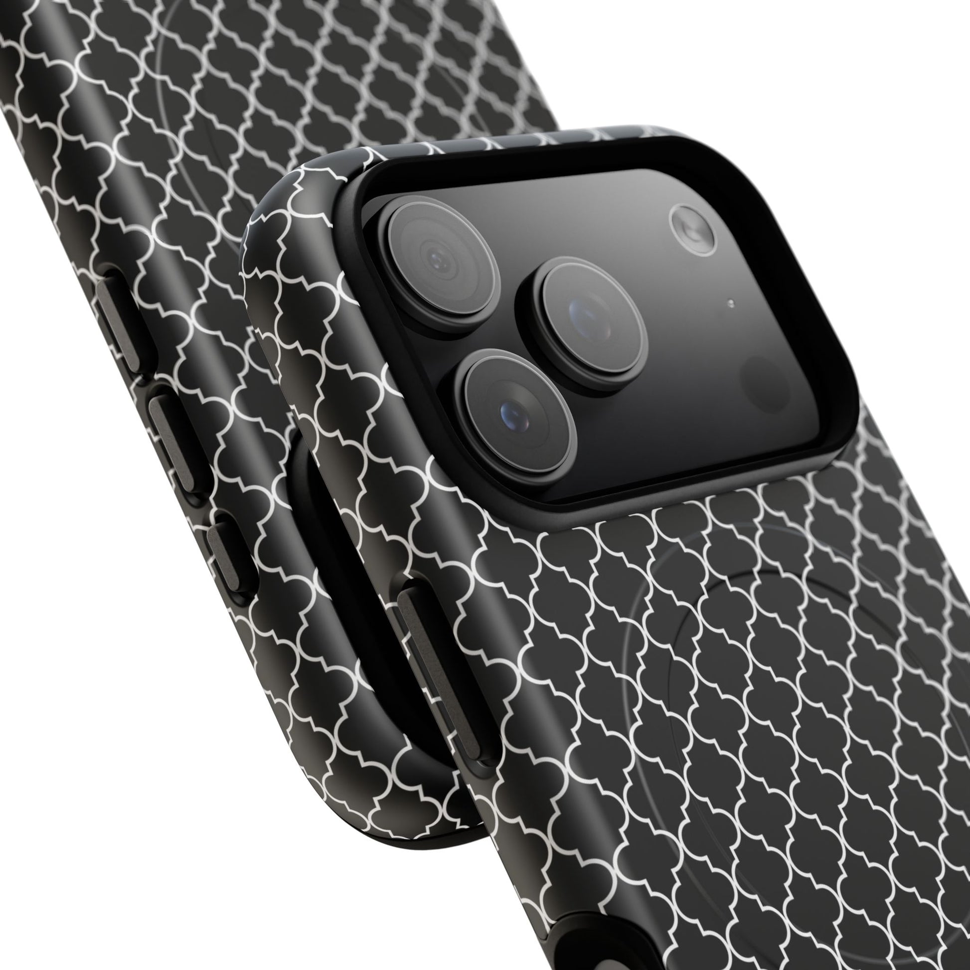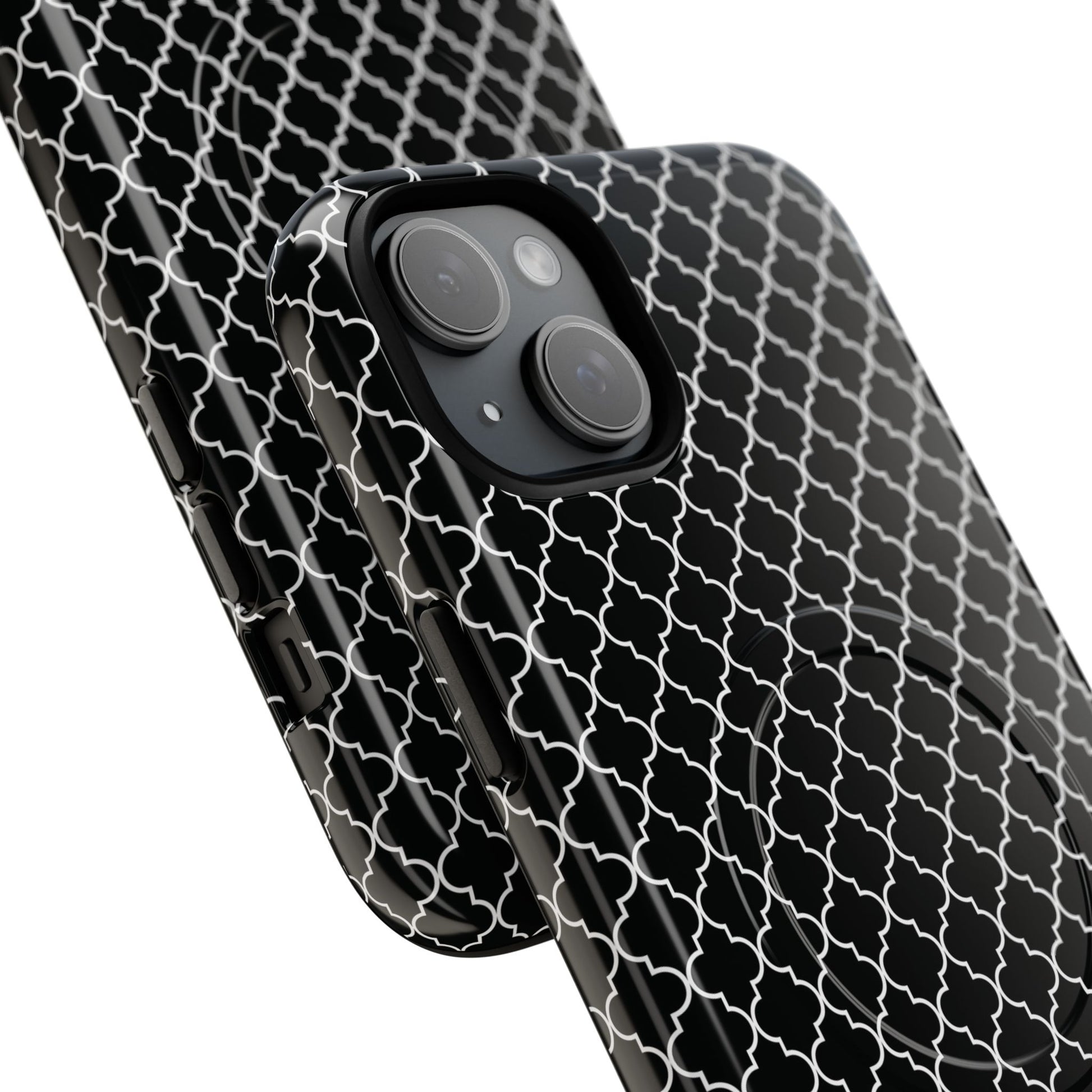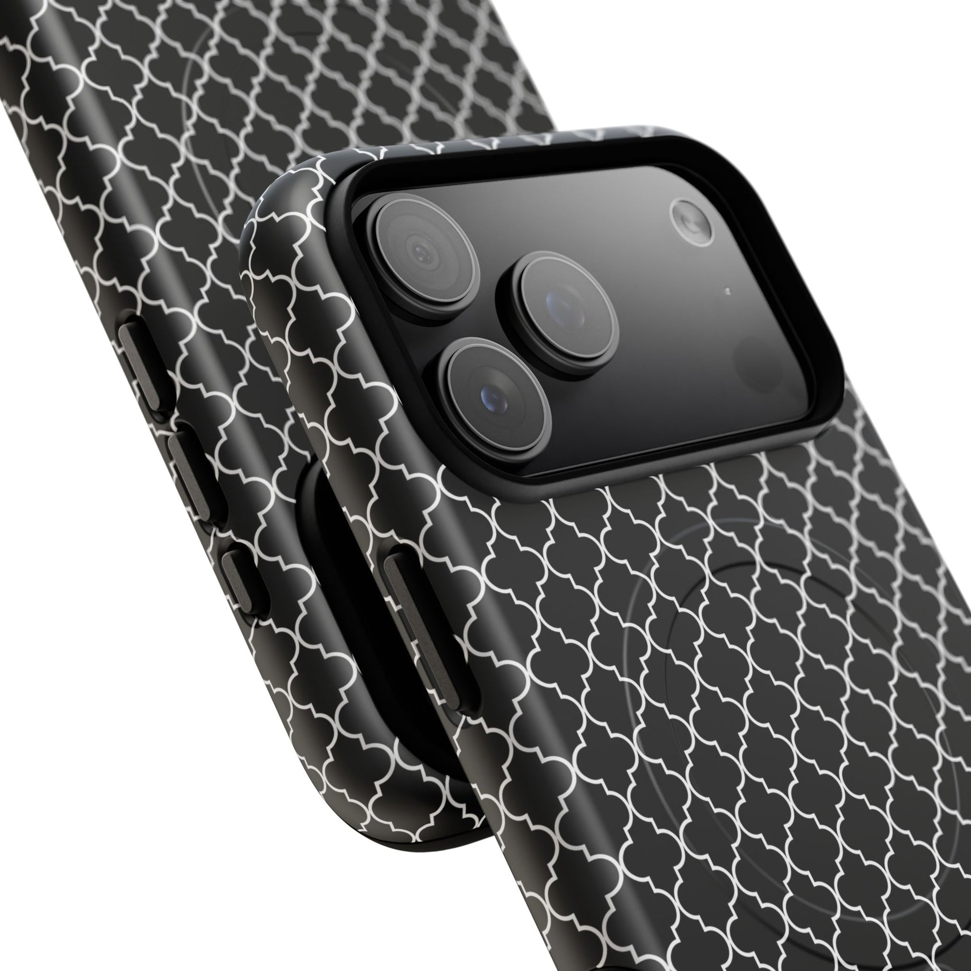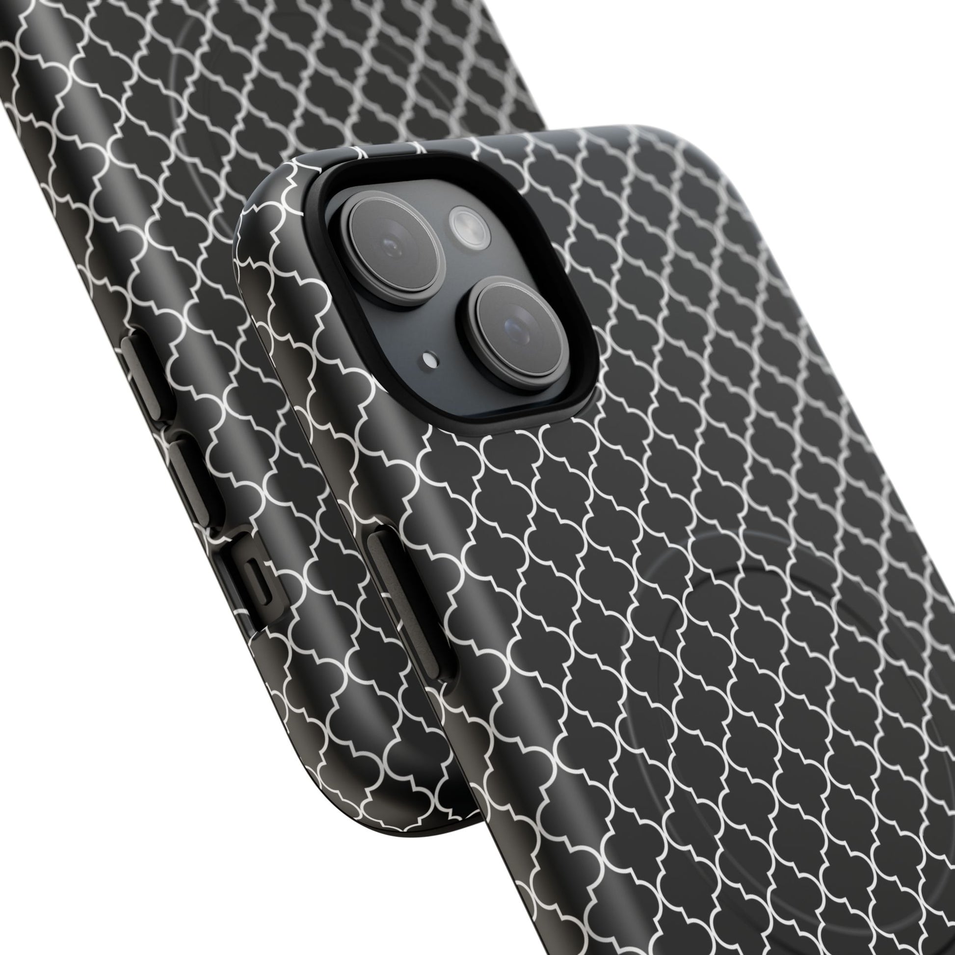 Noir Mosaic Tough iPhone Magnetic Case Classic white patterning on a bold black canvas for a refined geometric statement.