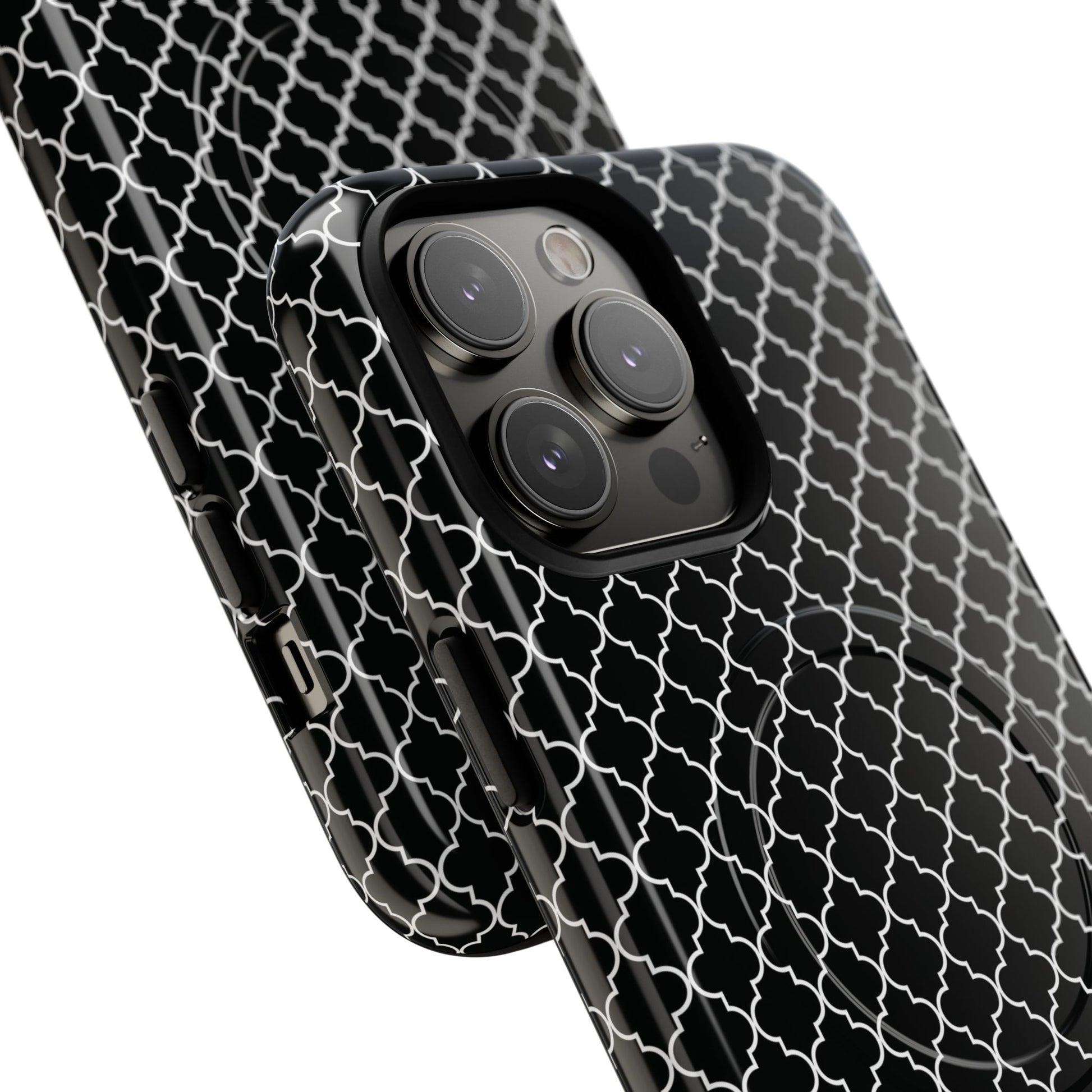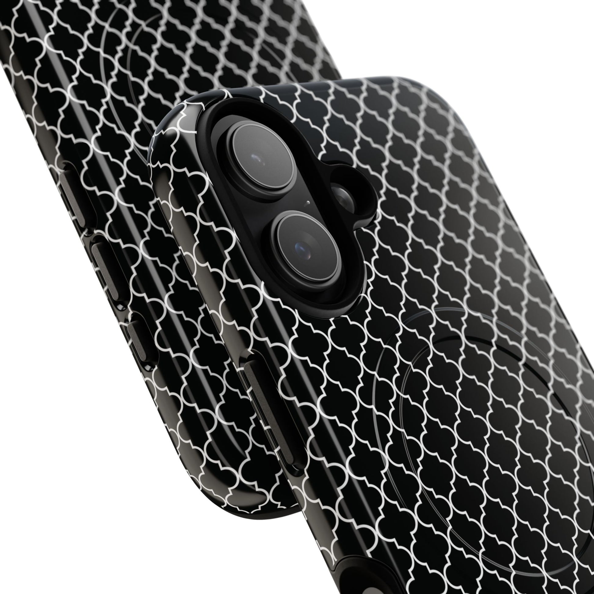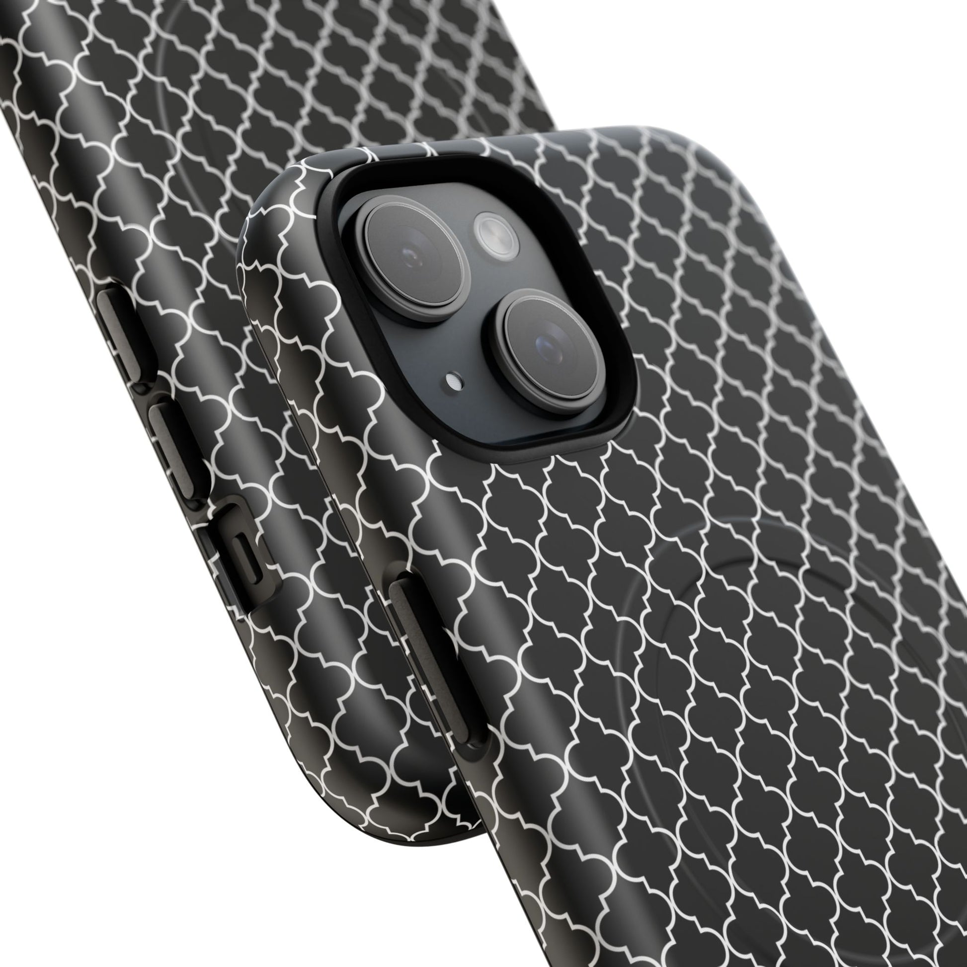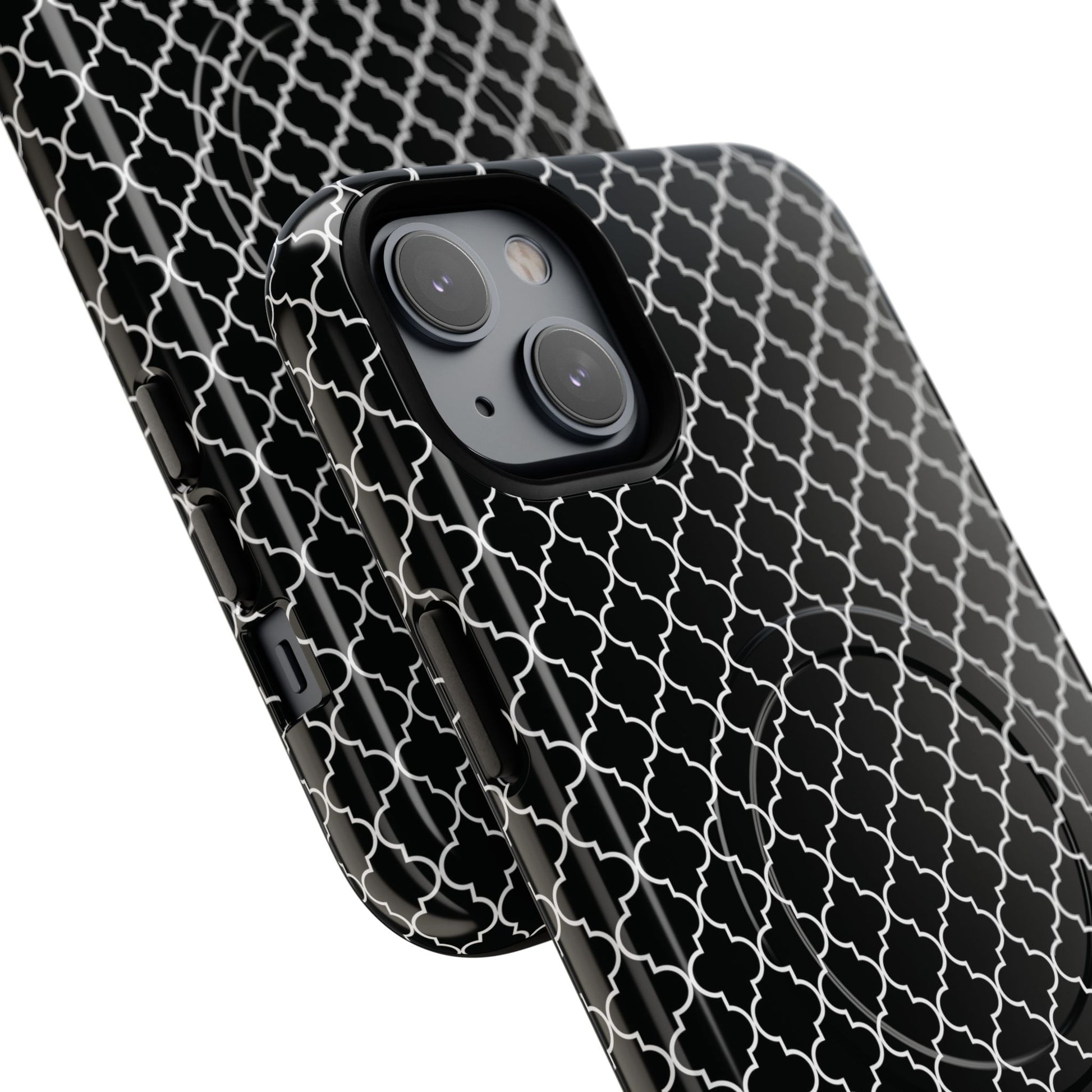 Noir Mosaic Tough iPhone Magnetic Case Classic white patterning on a bold black canvas for a refined geometric statement.