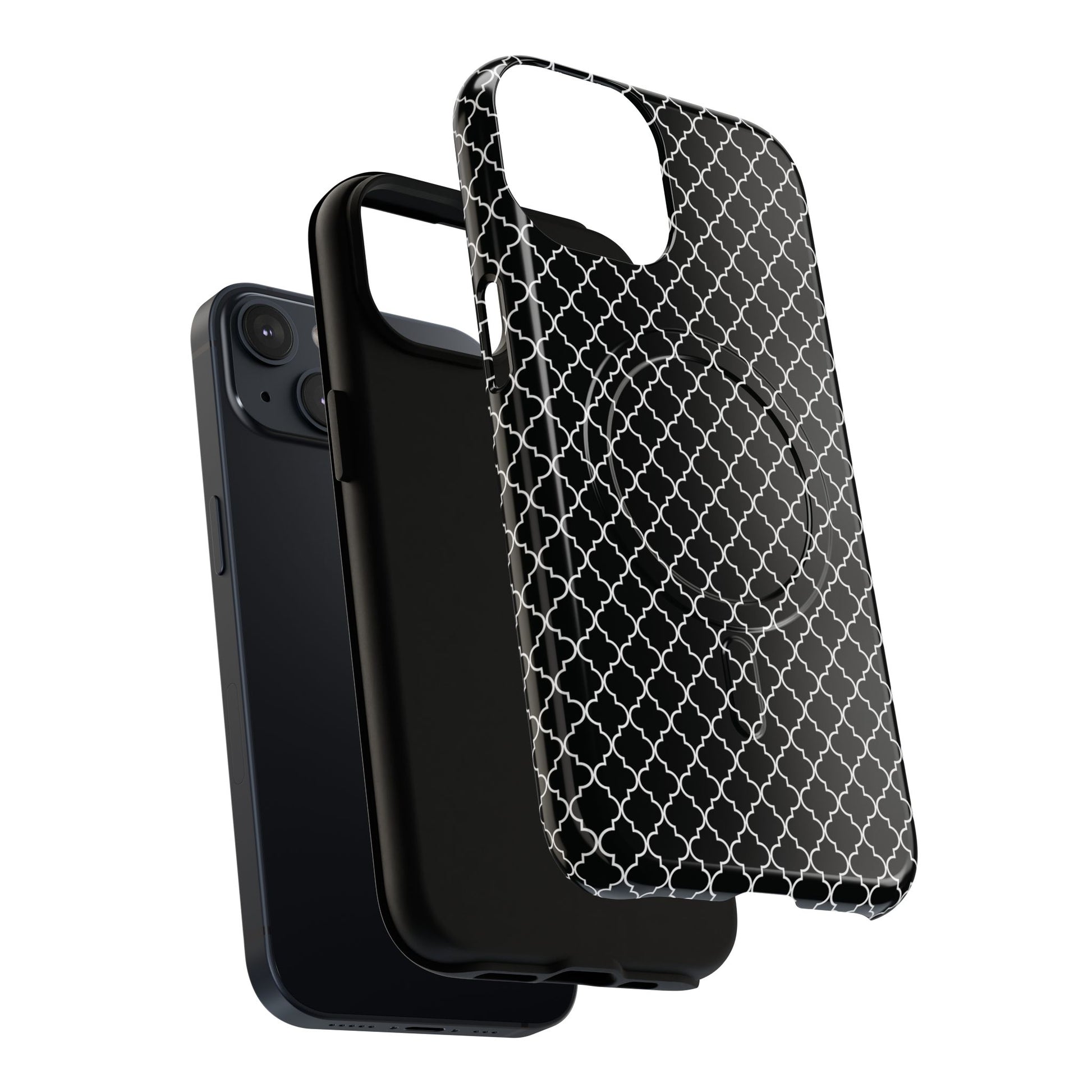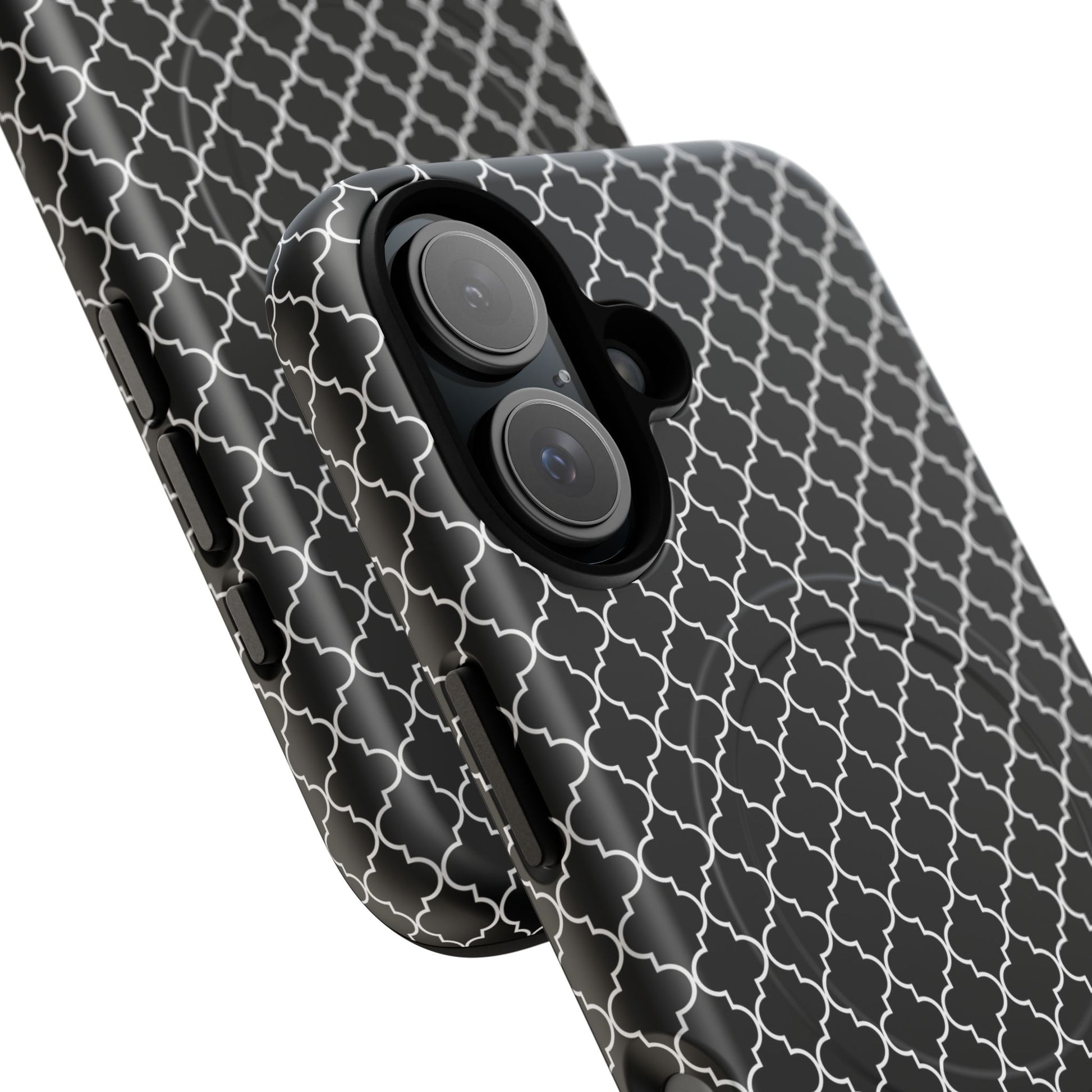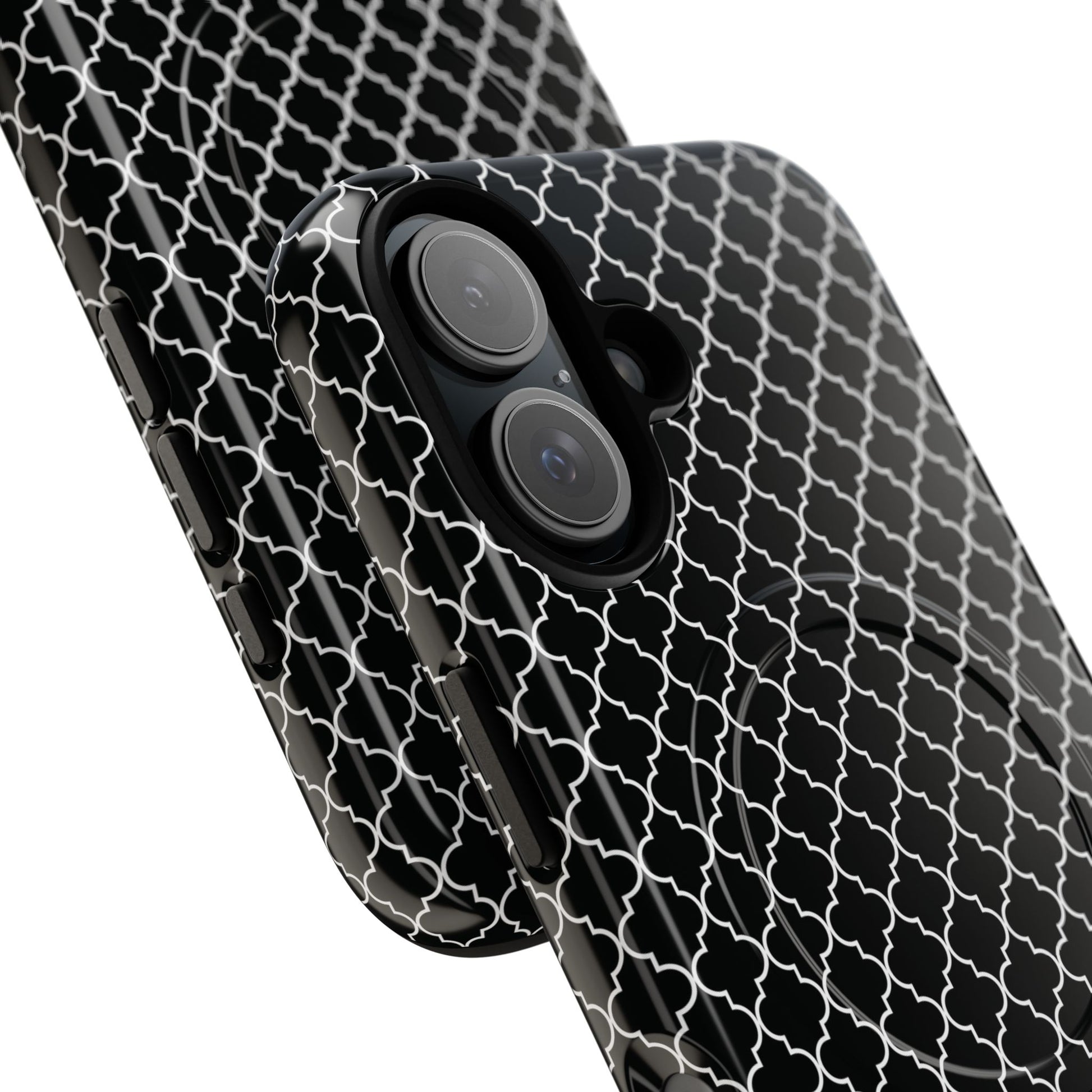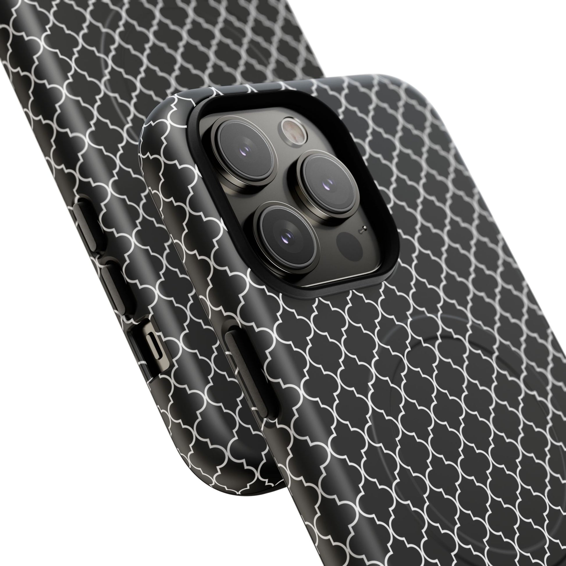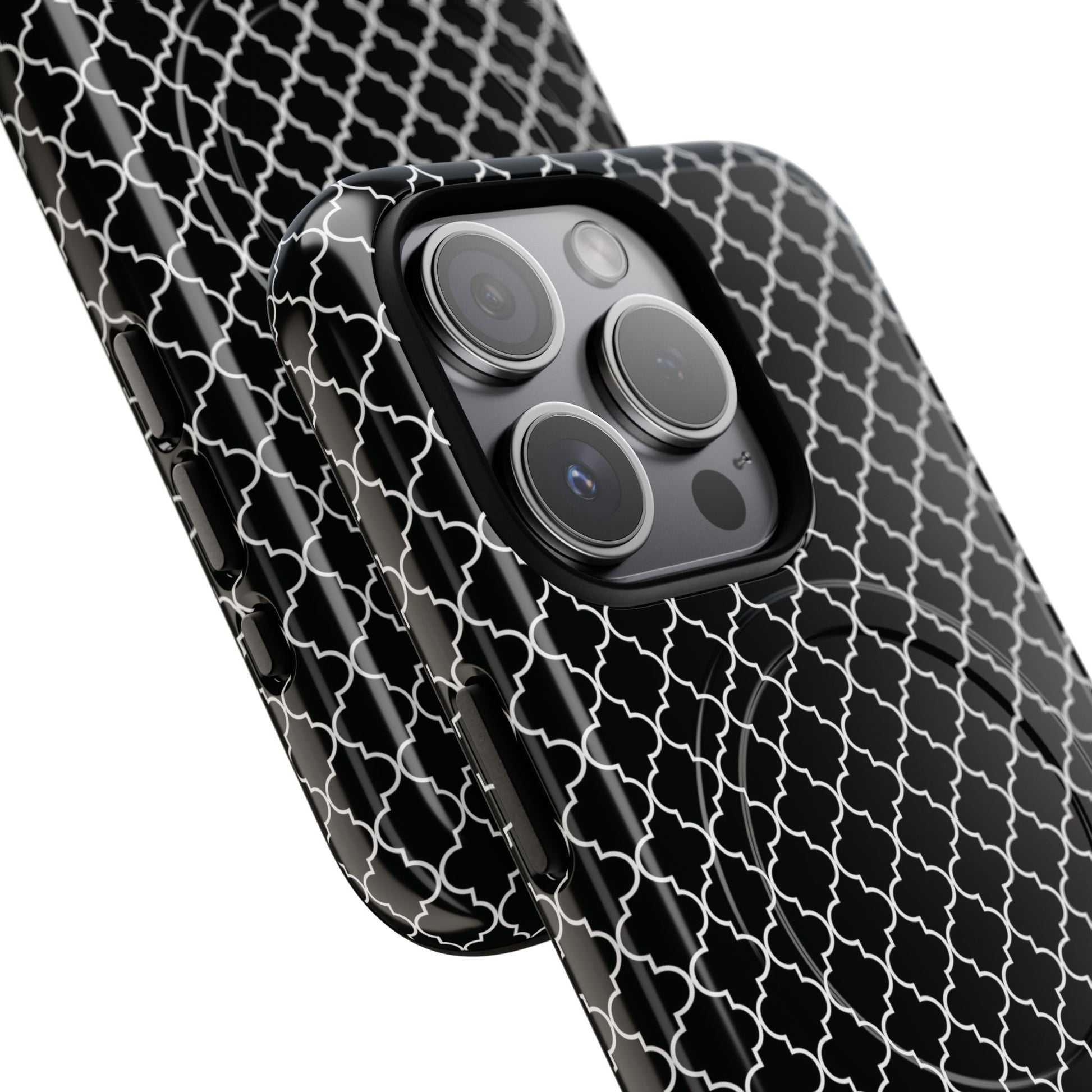 Noir Mosaic Tough iPhone Magnetic Case Classic white patterning on a bold black canvas for a refined geometric statement.