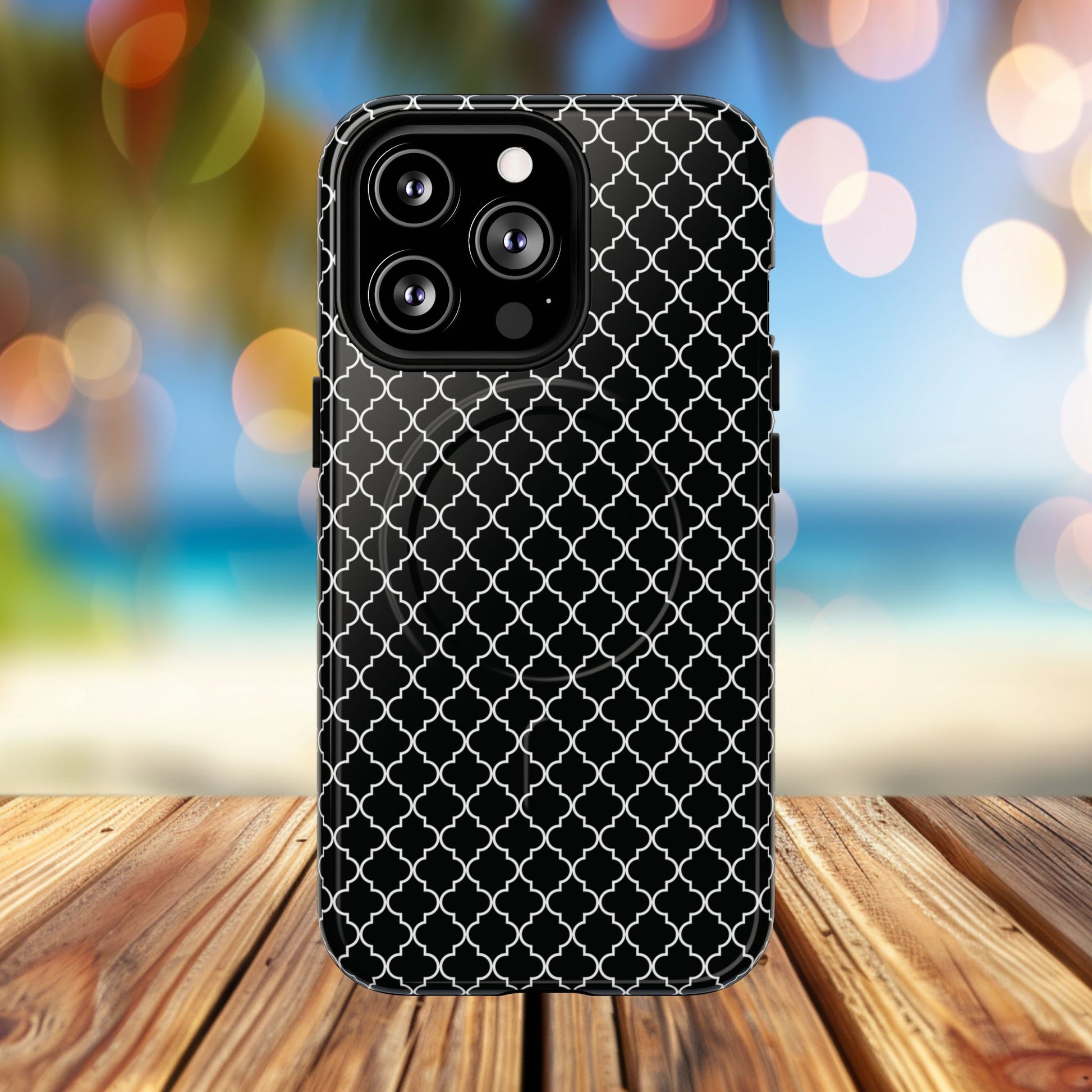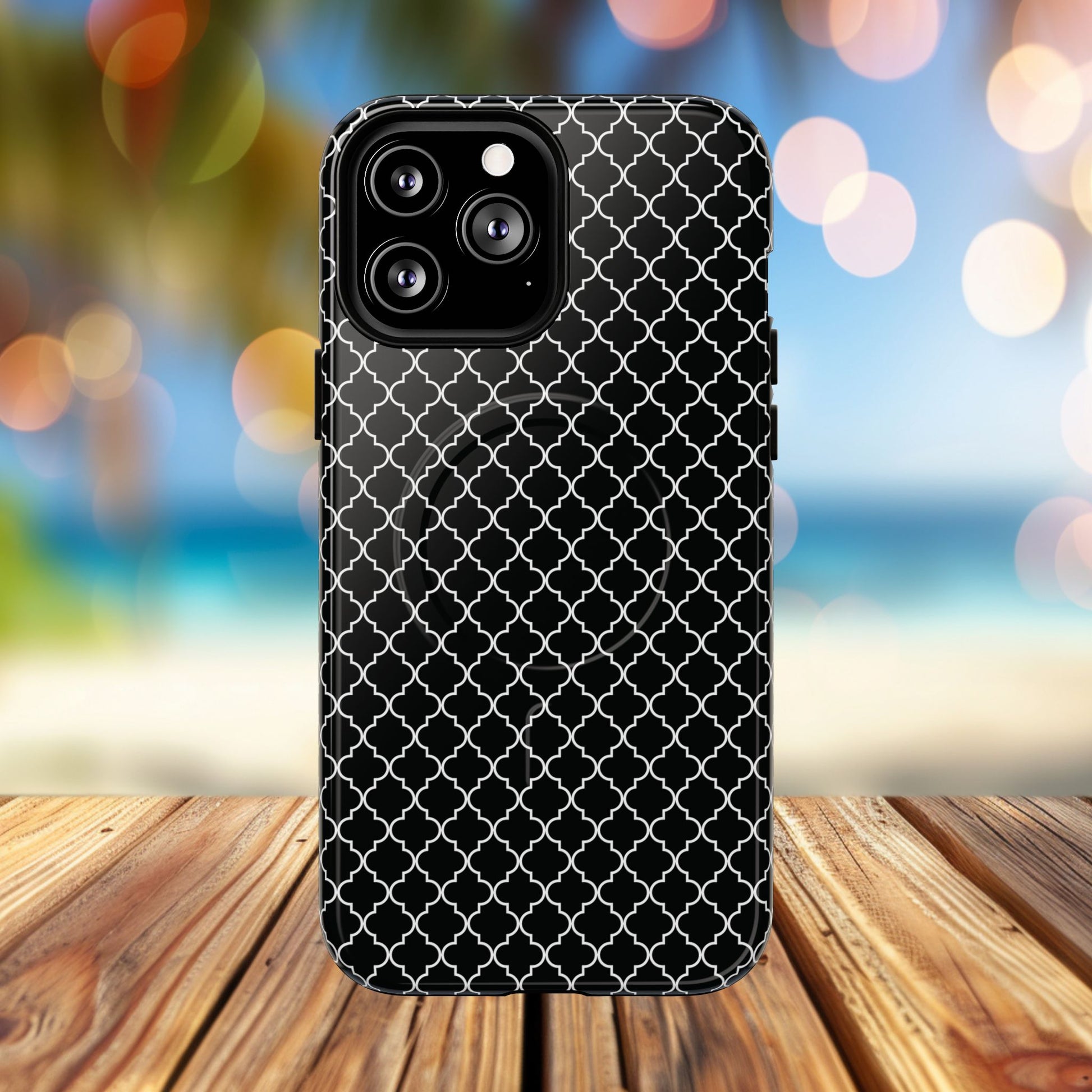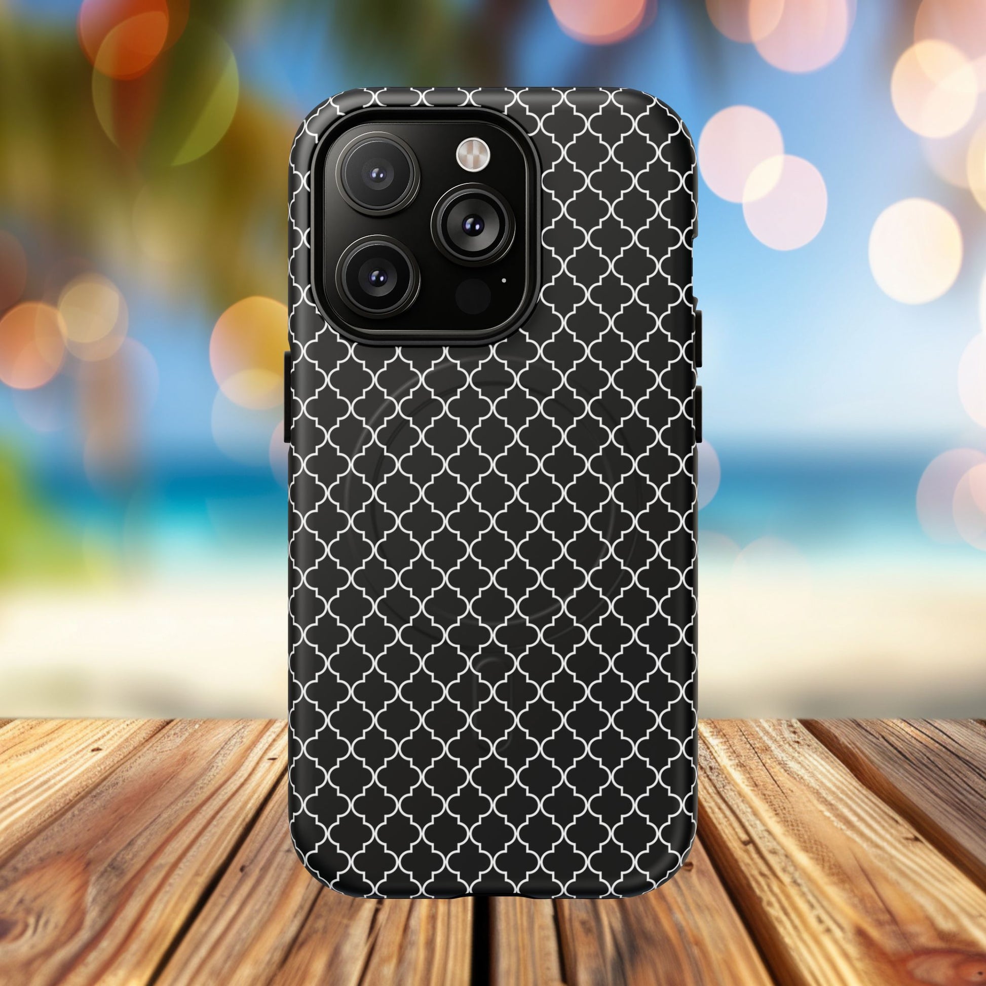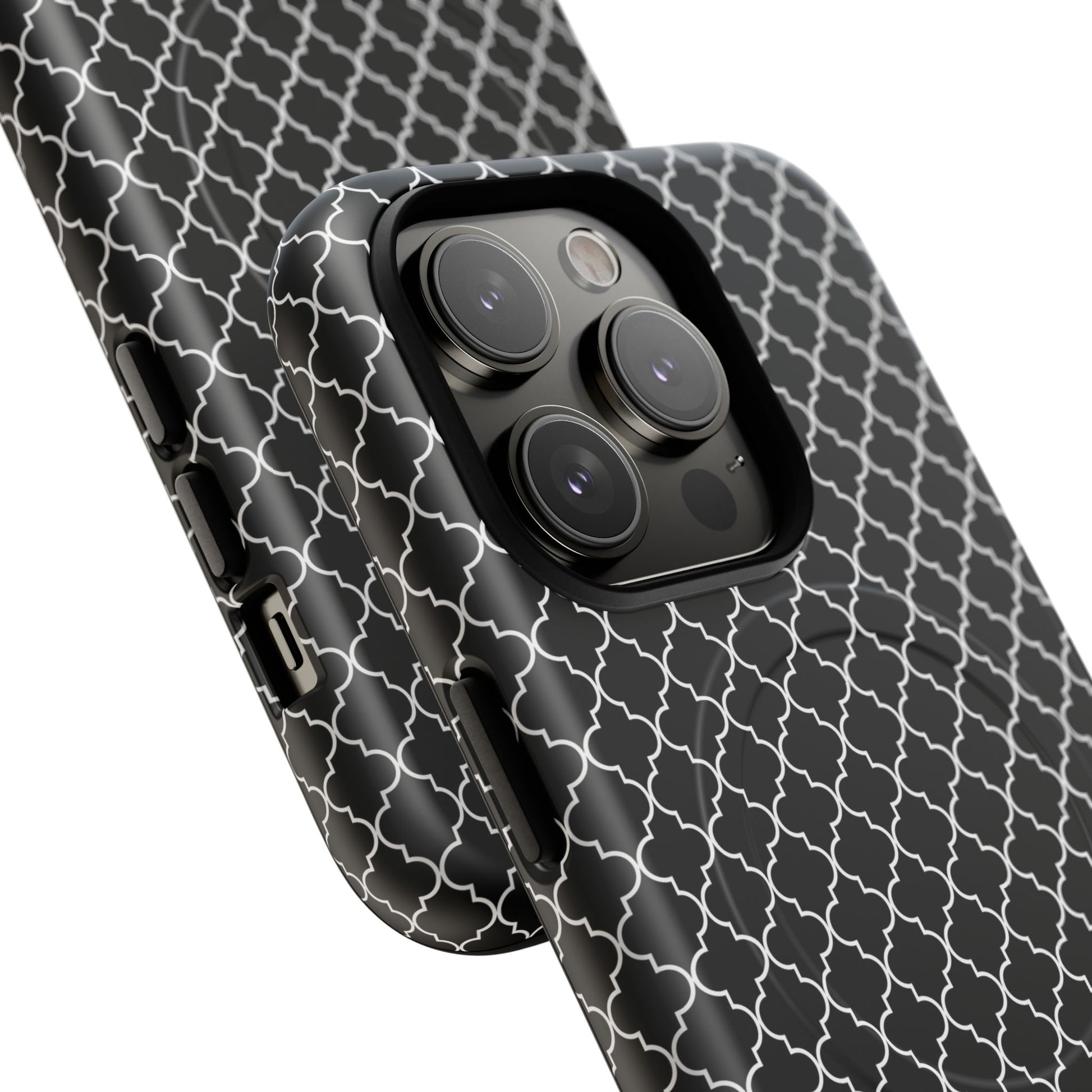Noir Mosaic Tough iPhone Magnetic Case Classic white patterning on a bold black canvas for a refined geometric statement.