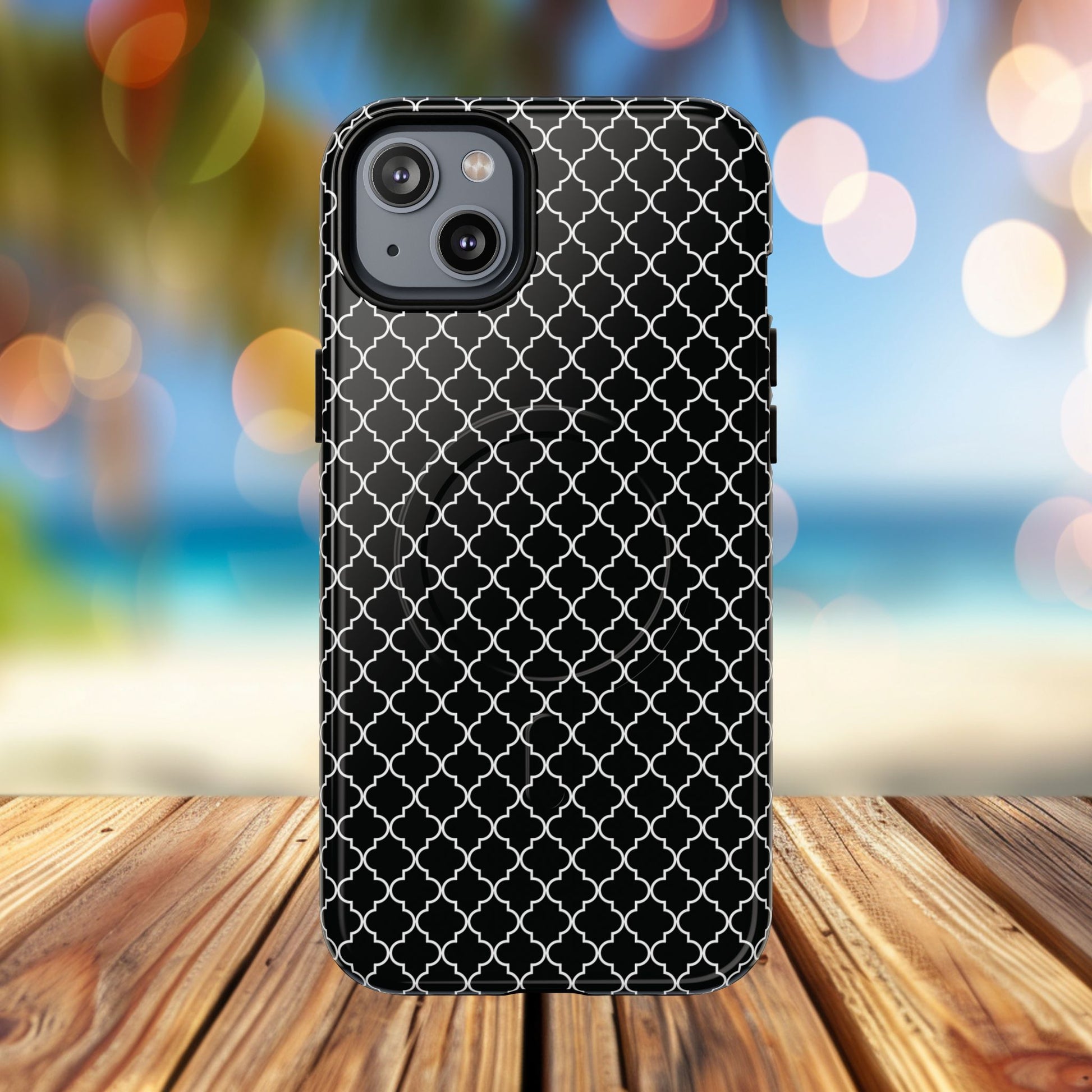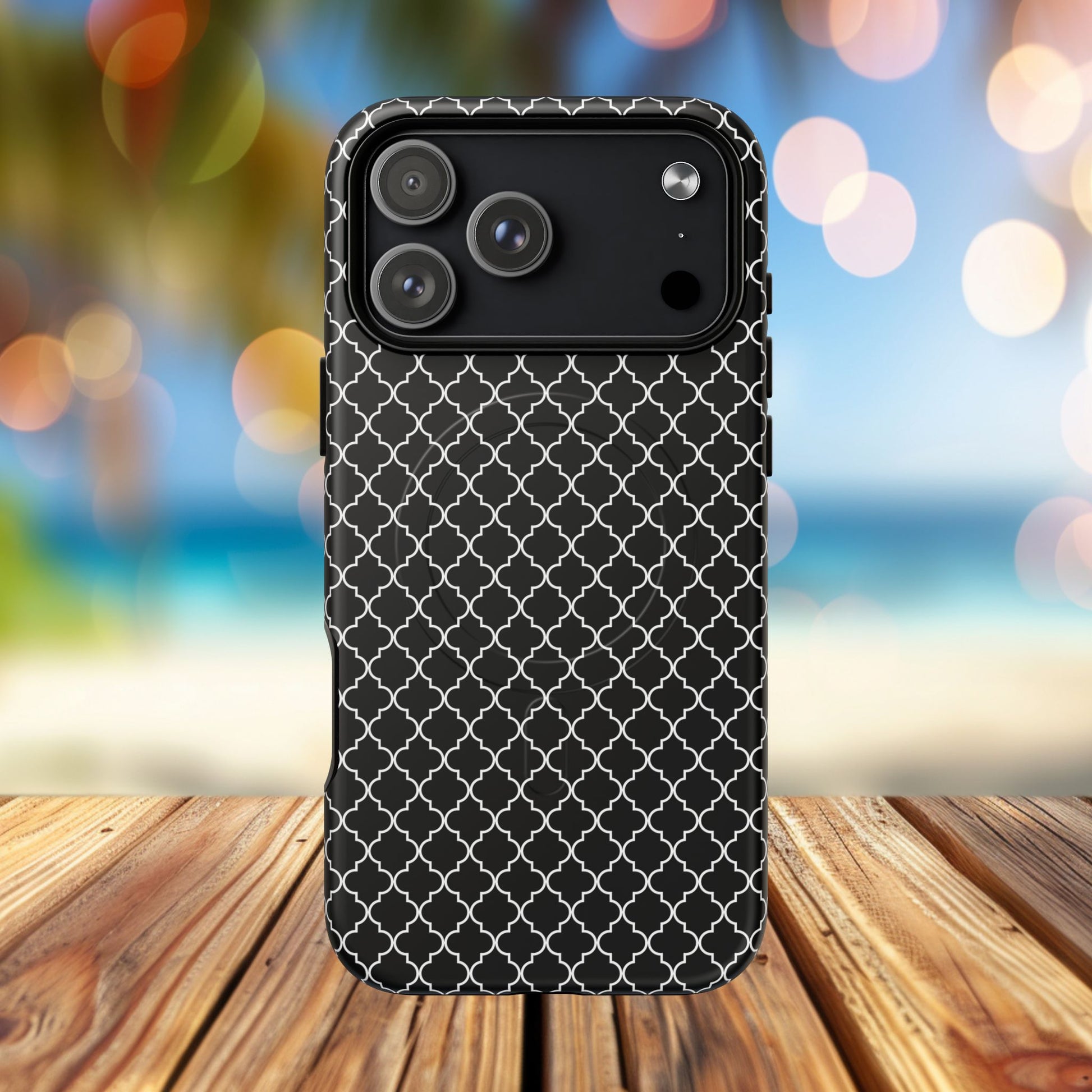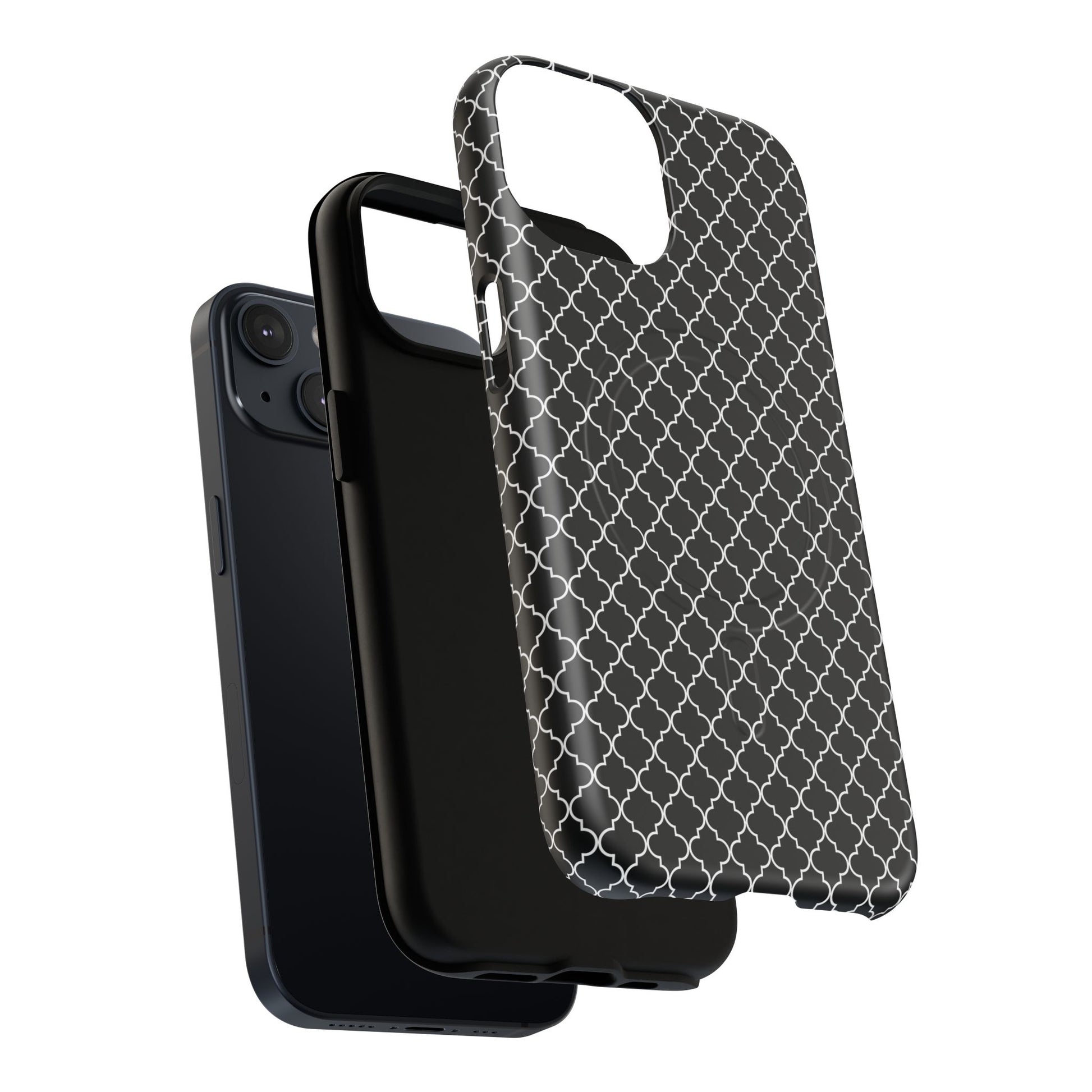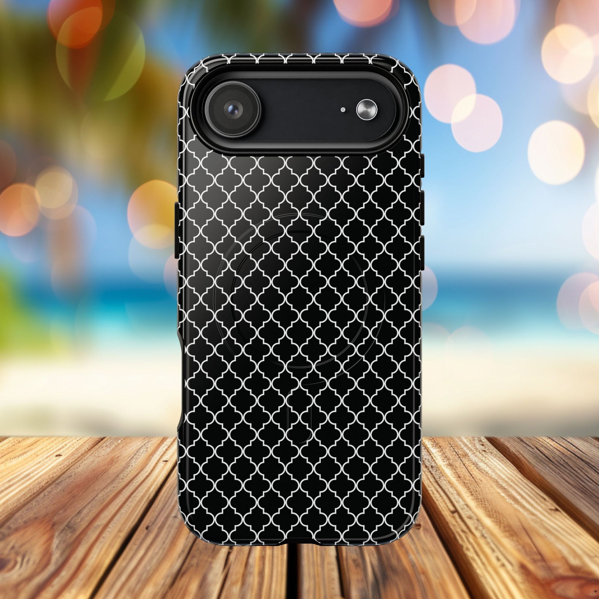 Noir Mosaic Tough iPhone Magnetic Case Classic white patterning on a bold black canvas for a refined geometric statement.