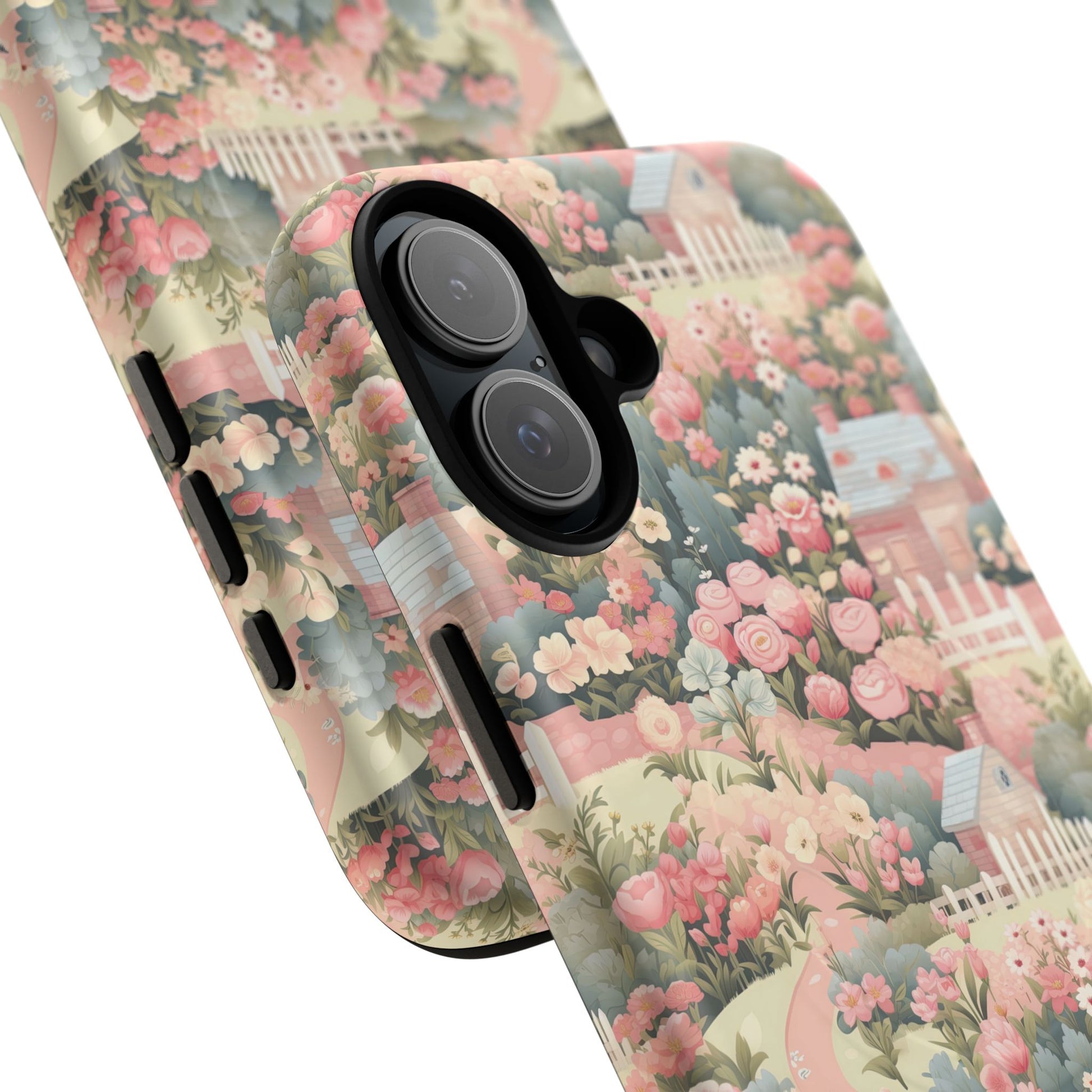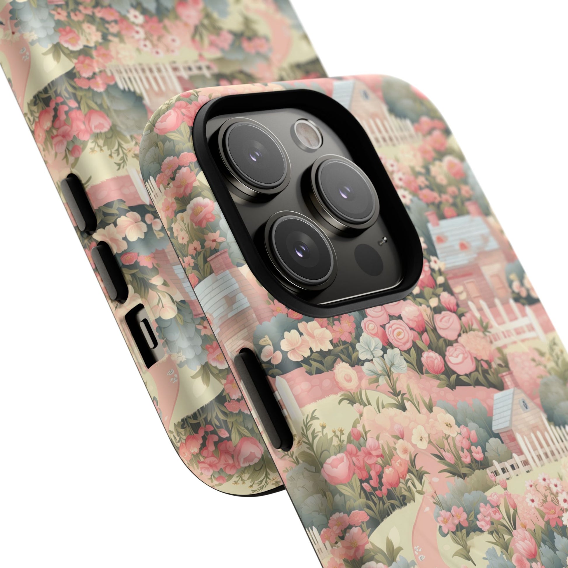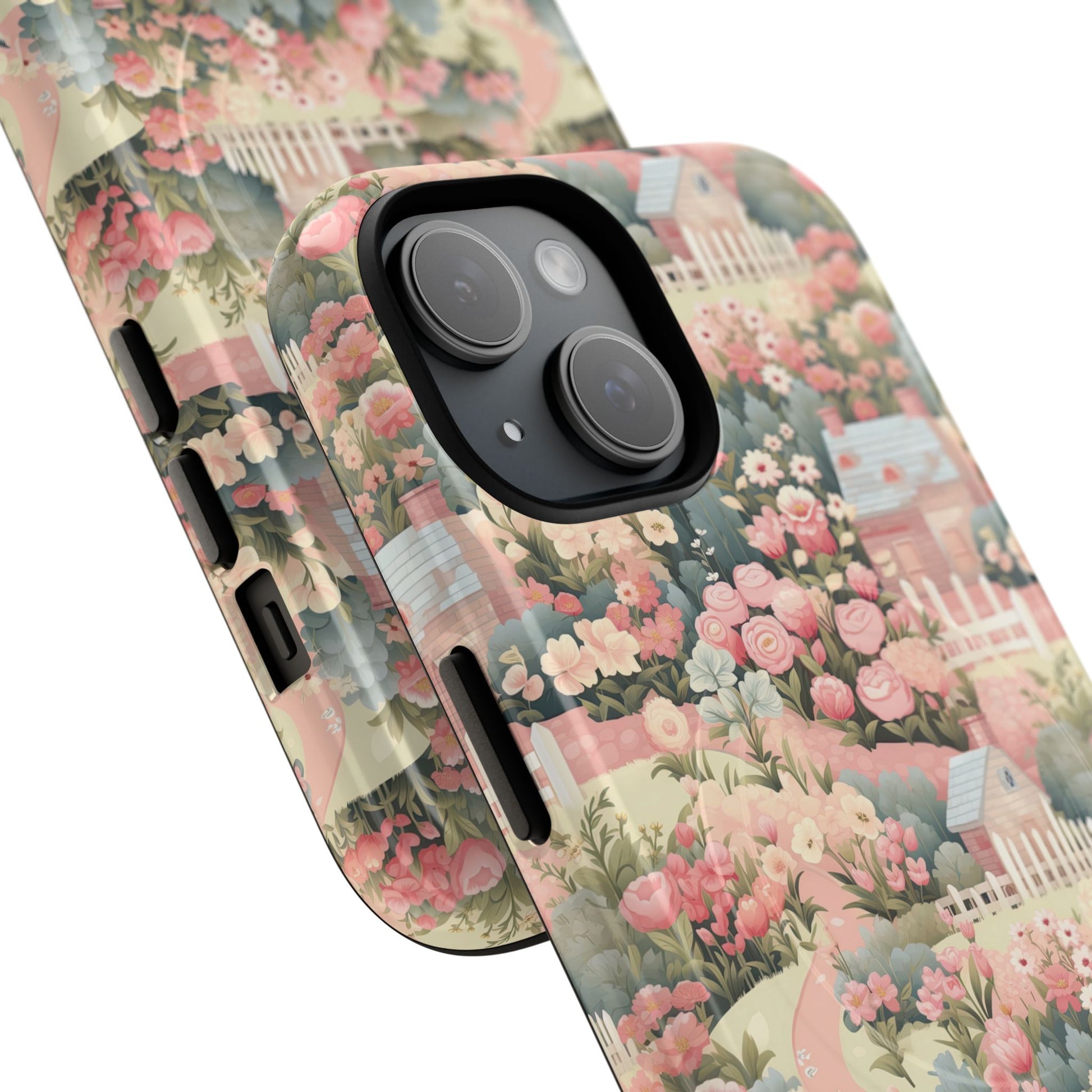 Pastel Garden Haven Tough iPhone Magnetic Case A cozy countryside escape with floral bliss and charming cottages in every corner.