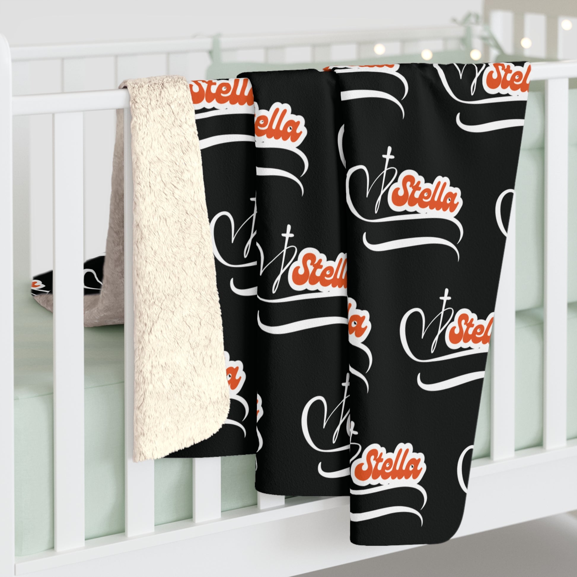 Personalized Name Sherpa Blanket — Cozy Fleece Throw with Script Logo, Christmas Gifts, Gifts for Her/Him.