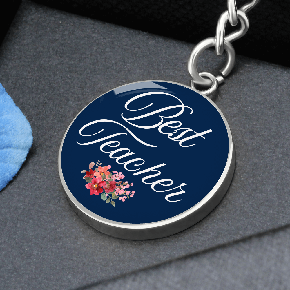 Personalized ''Best Teacher'' Circle Engraving Key Chain- a Gift for Teacher.