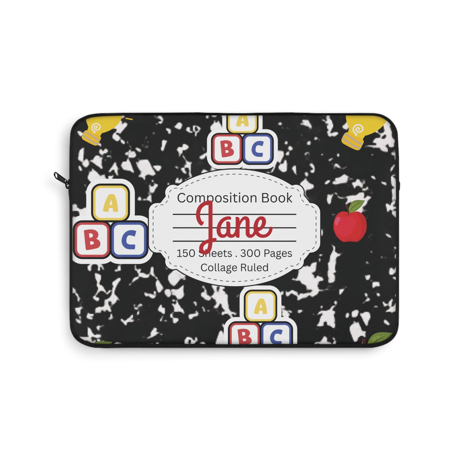 Personalized Black Composition Book Inspired Laptop Sleeve, Educational Gift for Teachers, Classroom Organization, Back to School, Unique Teacher Accessory