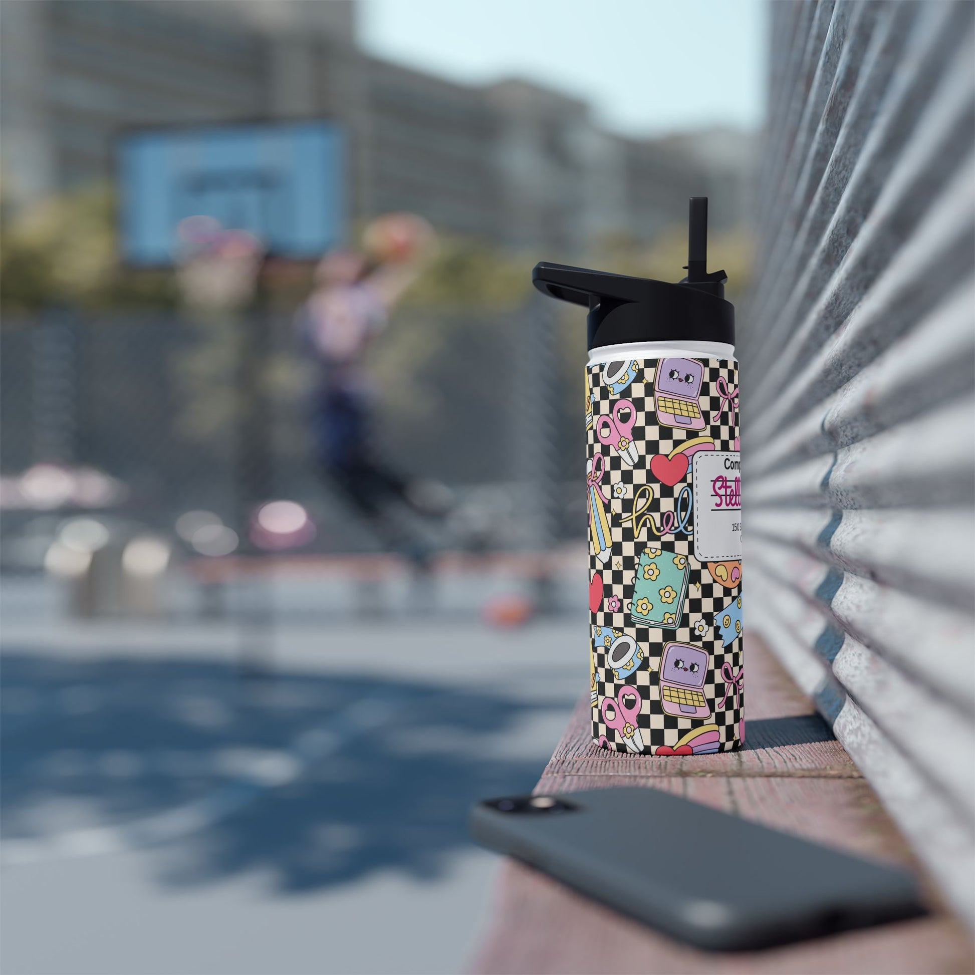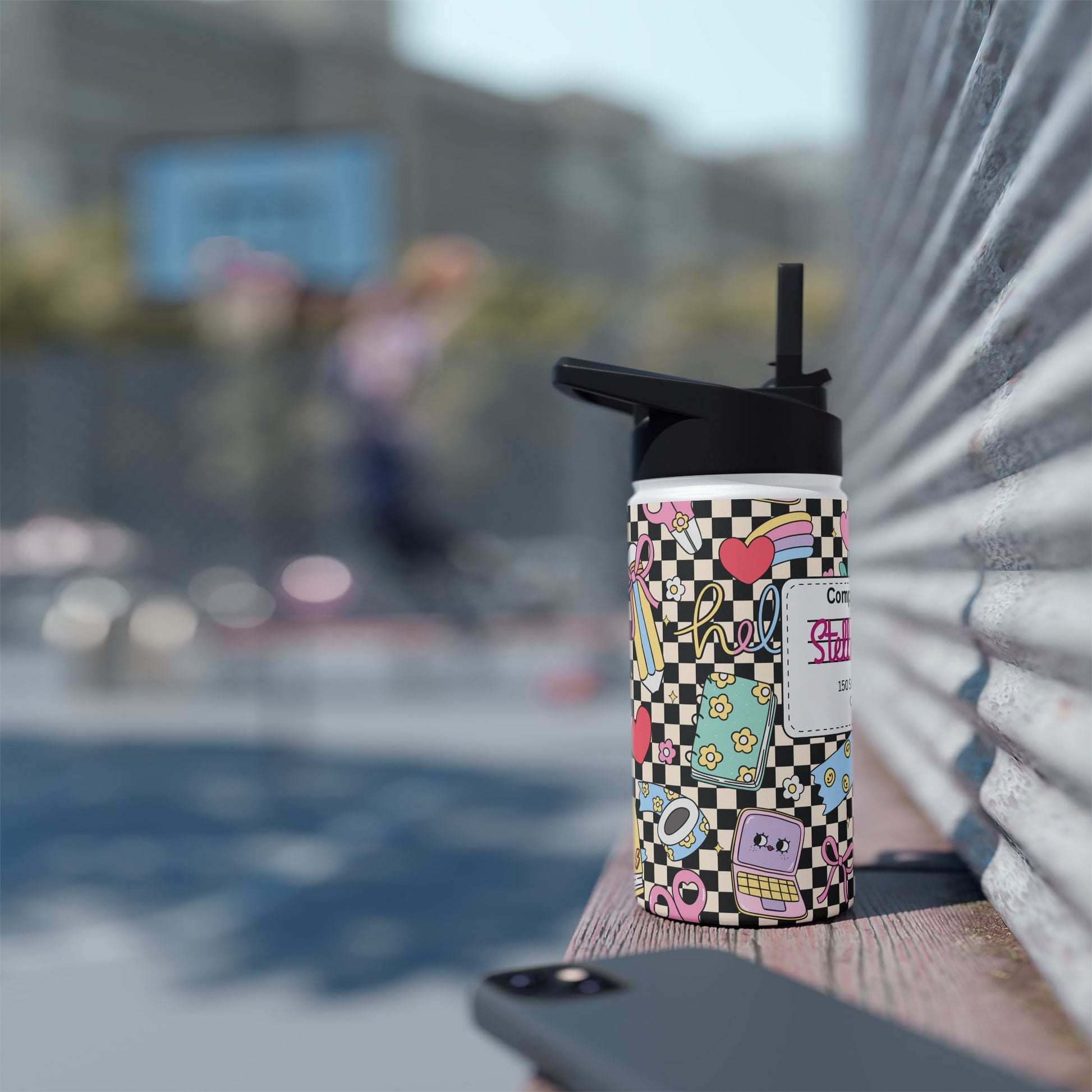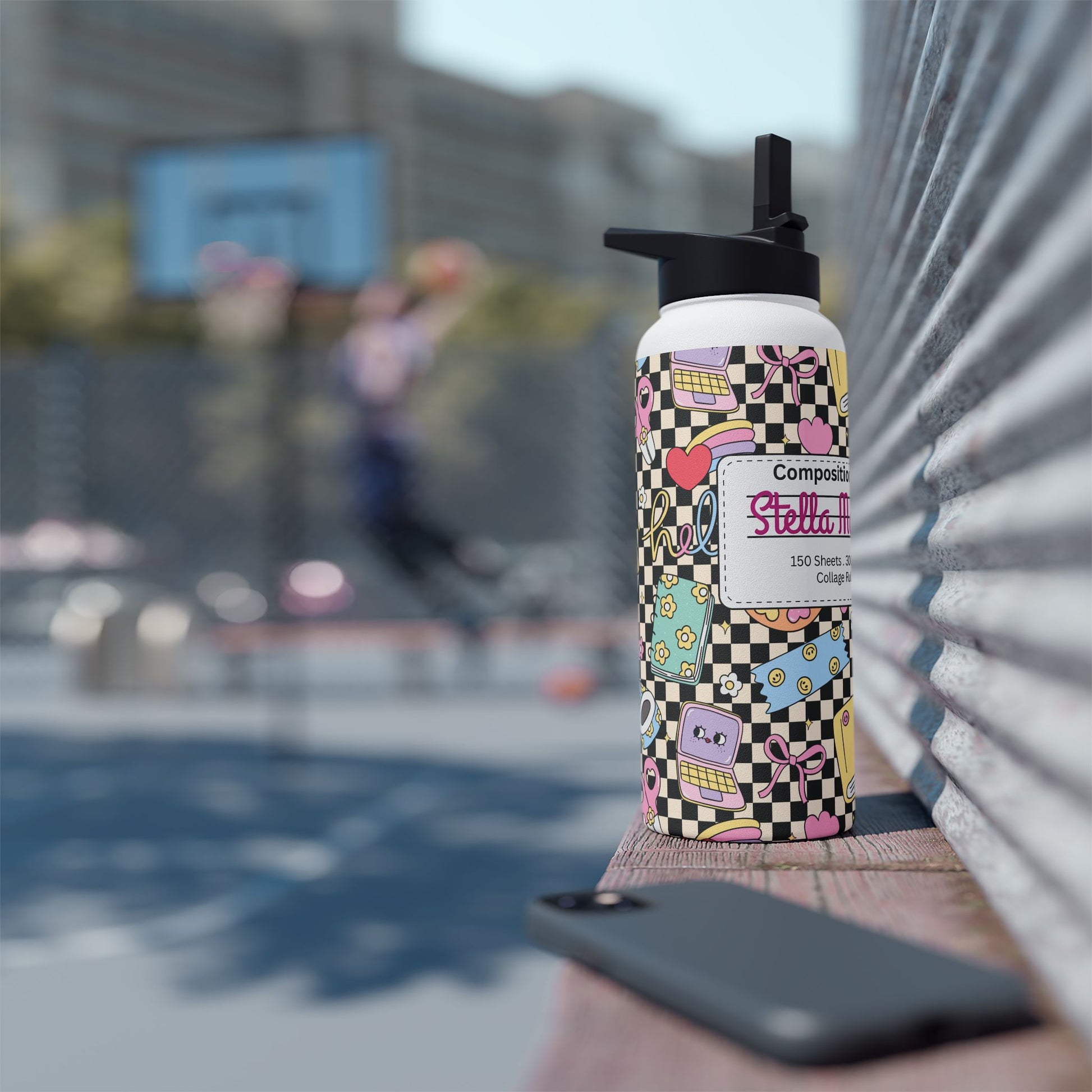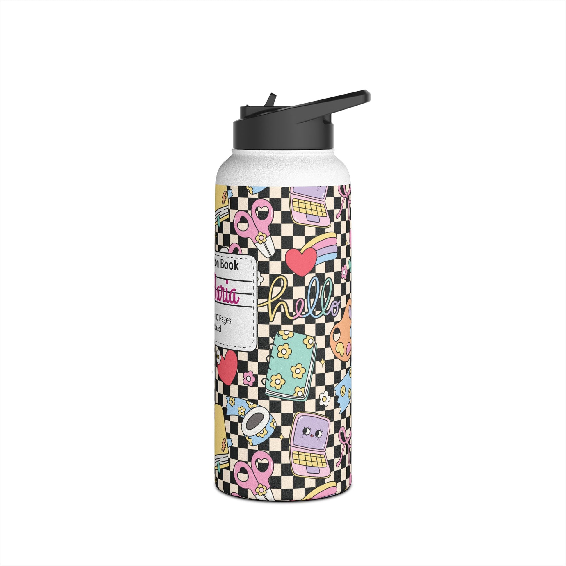 Personalized Black Doodle Daydream Composition Book Inspired Stainless Steel Water Bottle for Kids, School Supplies, Eco-Friendly Drinkware, Back to School, Teacher Gifts