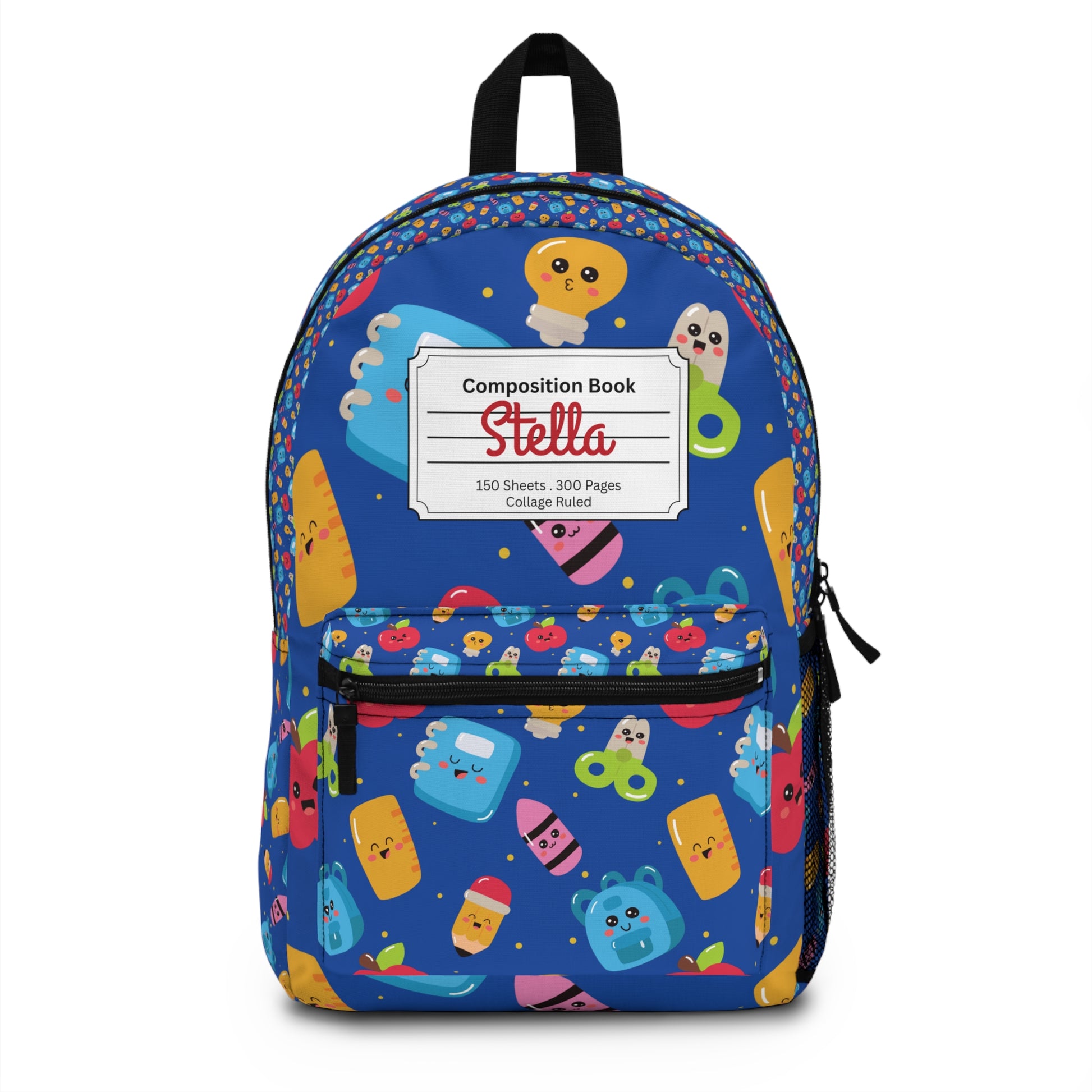 Personalized Blue Kawaii Composition Book Inspired Backpack for Students, Fun School Bag, Back to School Essentials, Notebook Print Backpack, College Student Gift