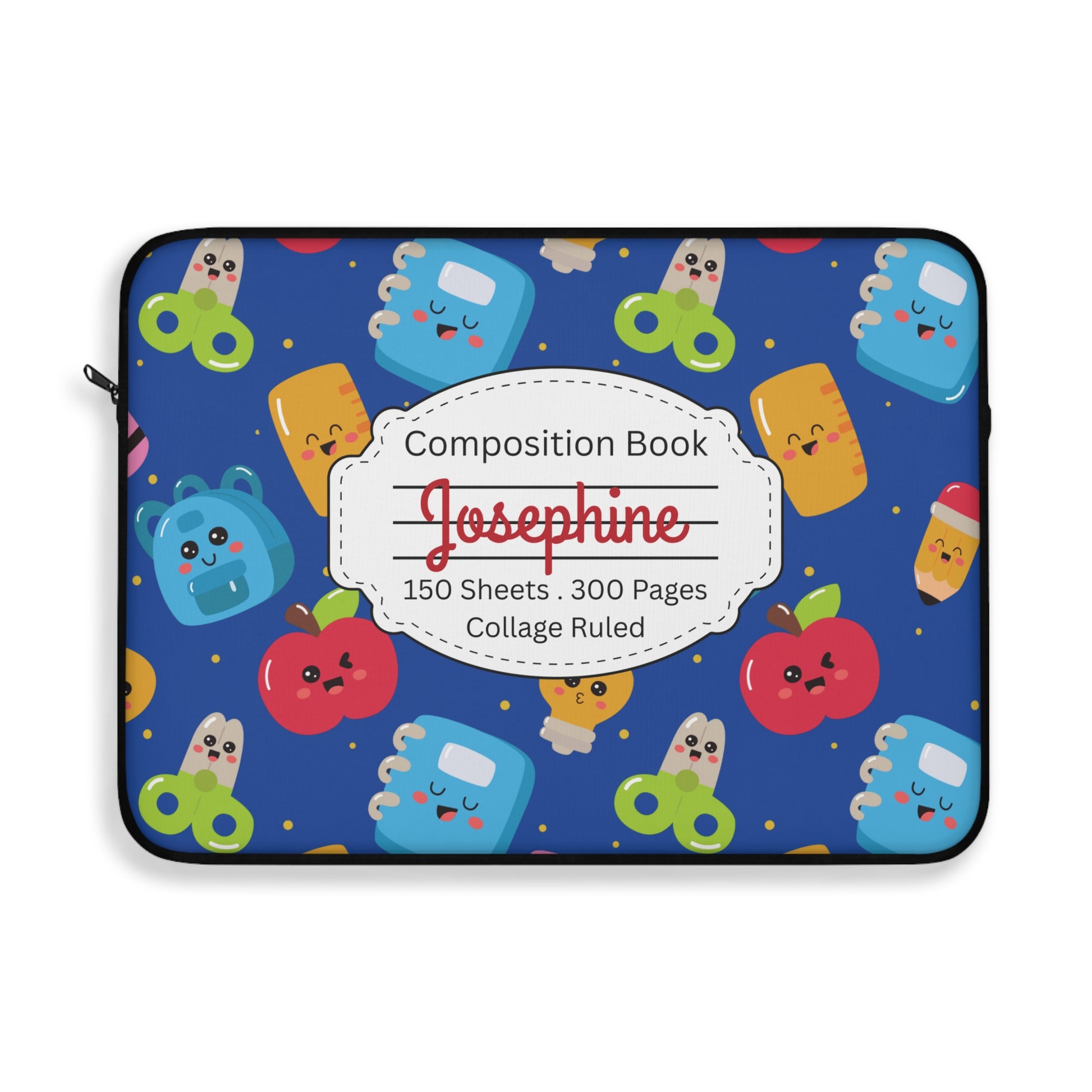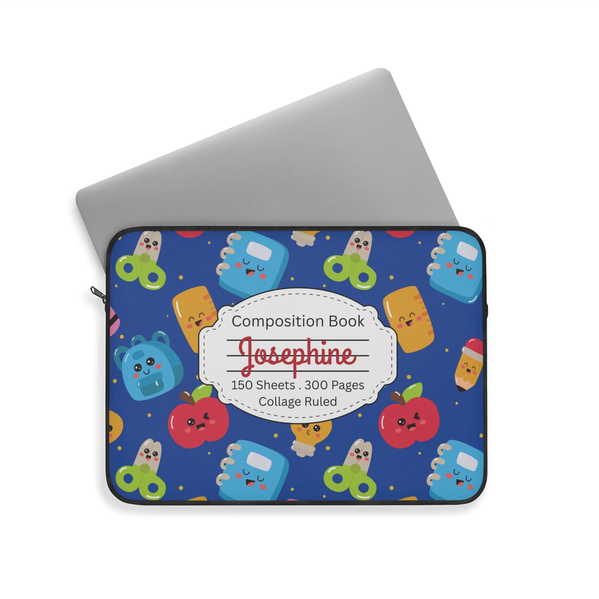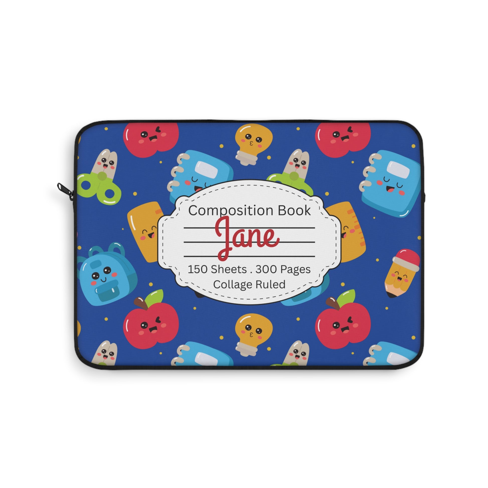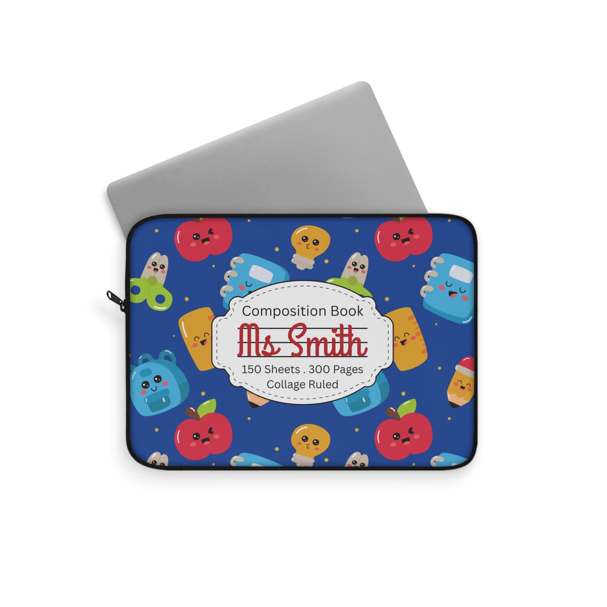 Personalized Blue Kawaii Composition Book Inspired Laptop Sleeve, Educational Gift for Teachers, Classroom Organization, Back to School, Unique Teacher Accessory