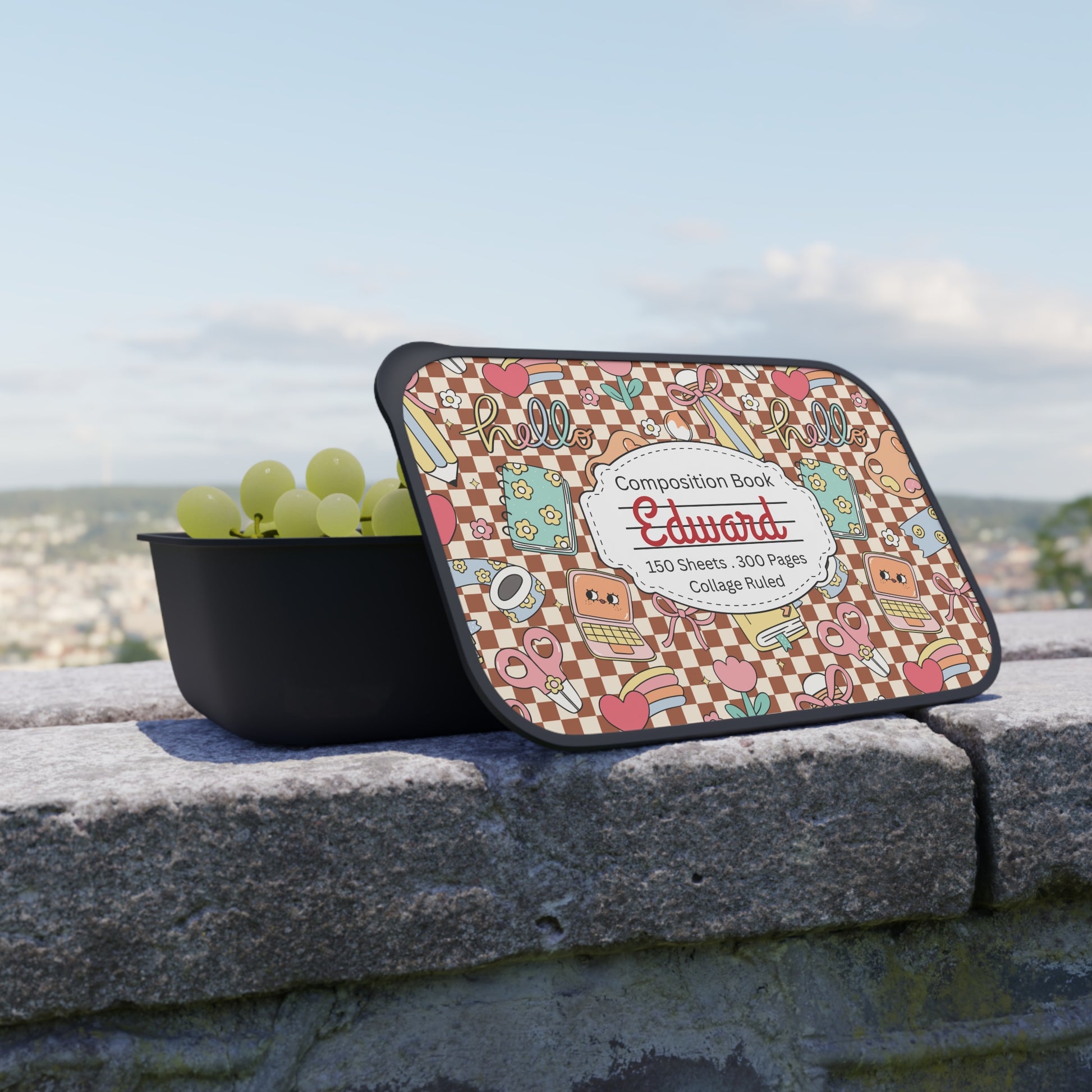 Personalized Brown Doodle Daydream Composition Book Inspired Bento Box, Fun Lunch Container, School Lunch, Meal Prep, Kids' Utensils, Back to School, Child's Lunchbox