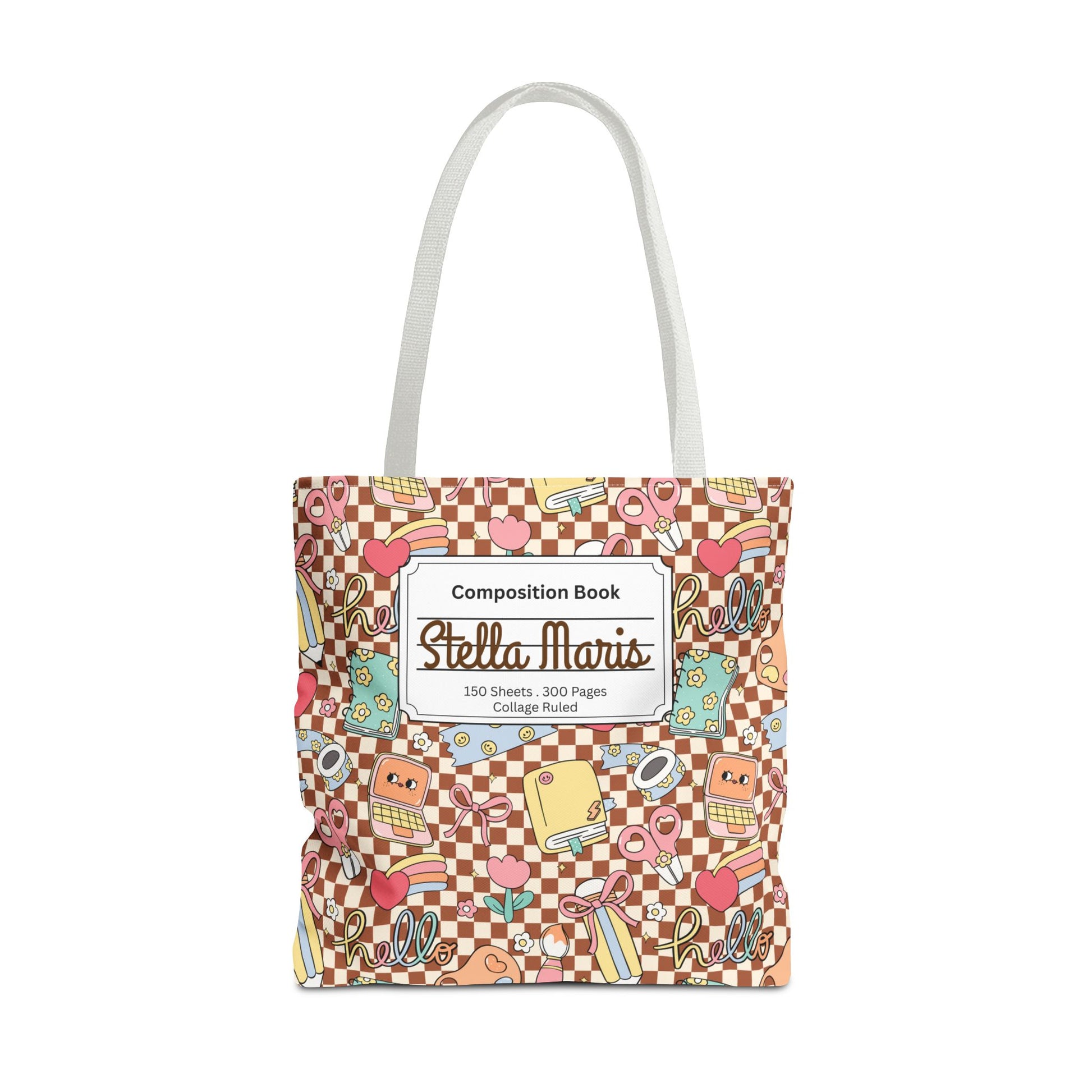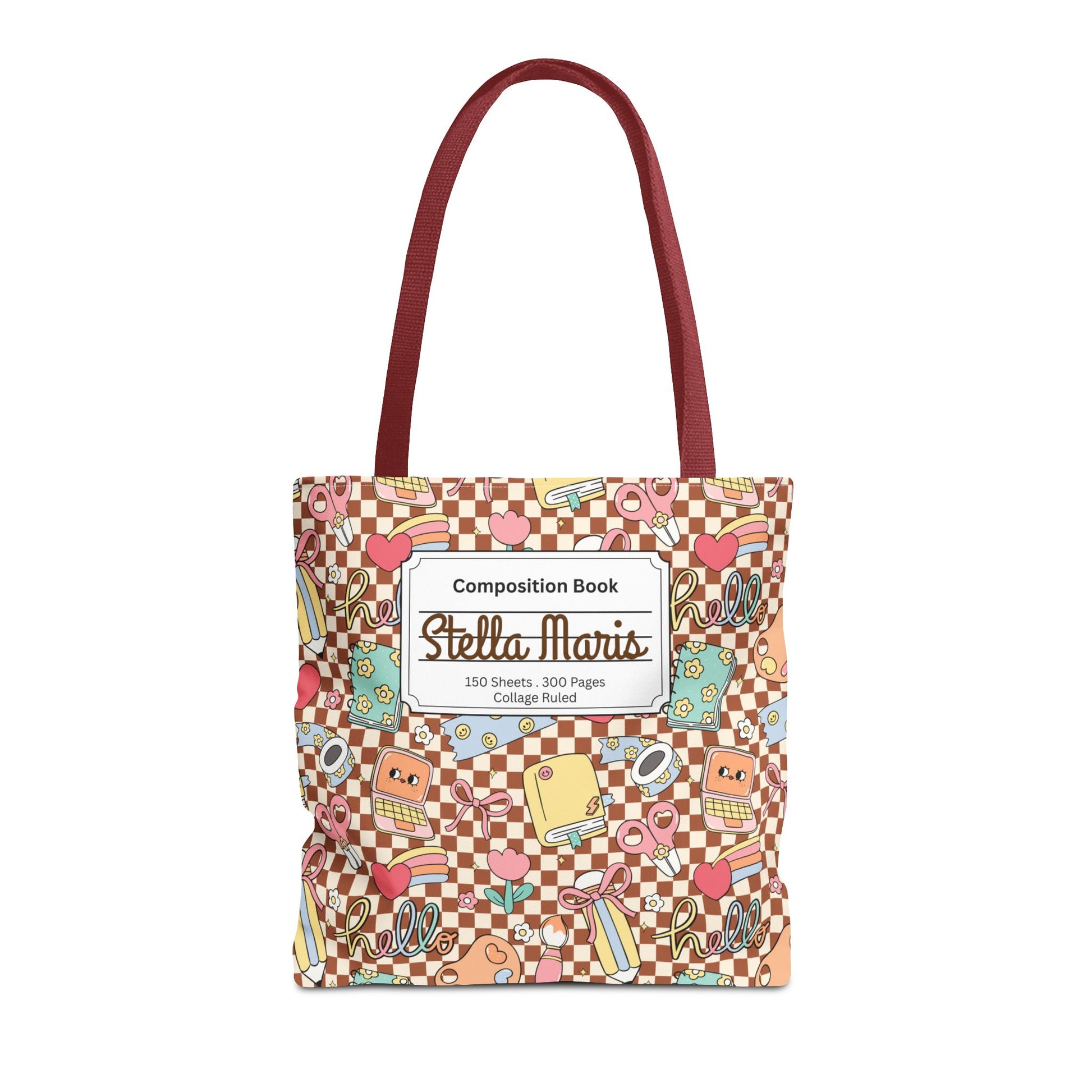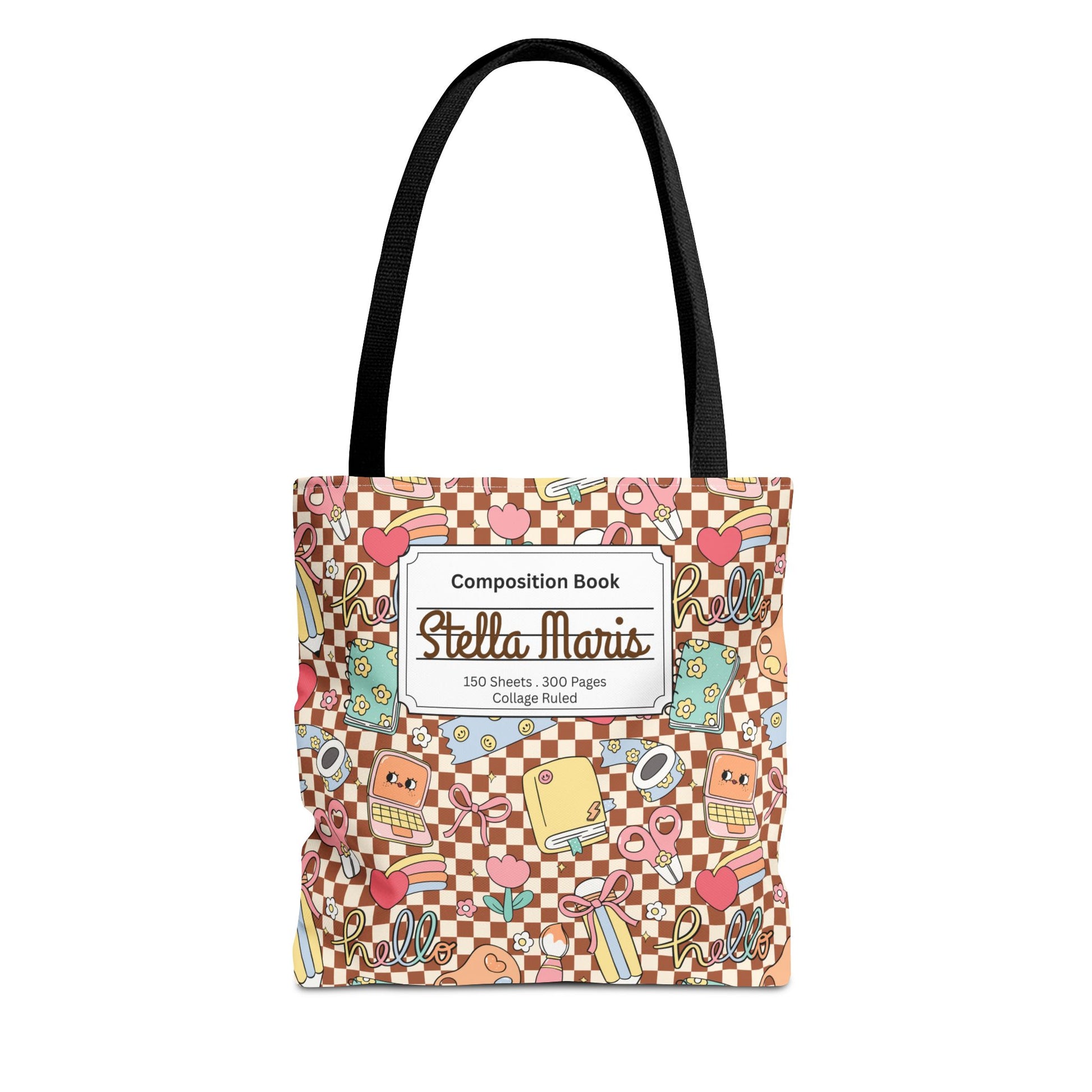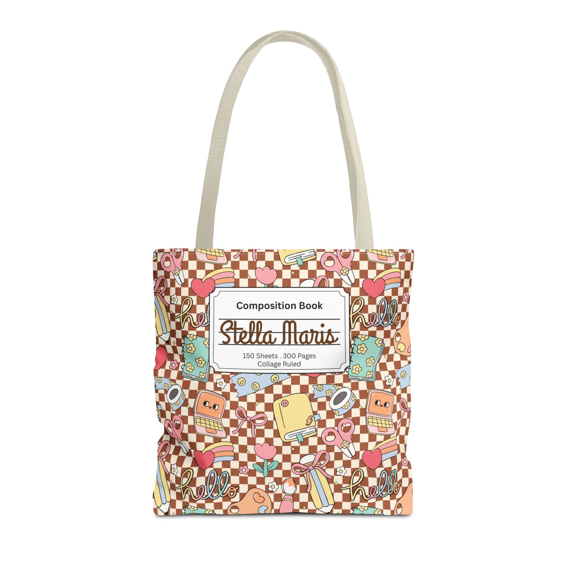 Personalized Brown Doodle Daydream Composition Book Inspired Tote Bag, Back to School Tote, Teacher Gift, Kids Bag, Custom Name Bag, Educational Accessories, Back to School Tote Bag.