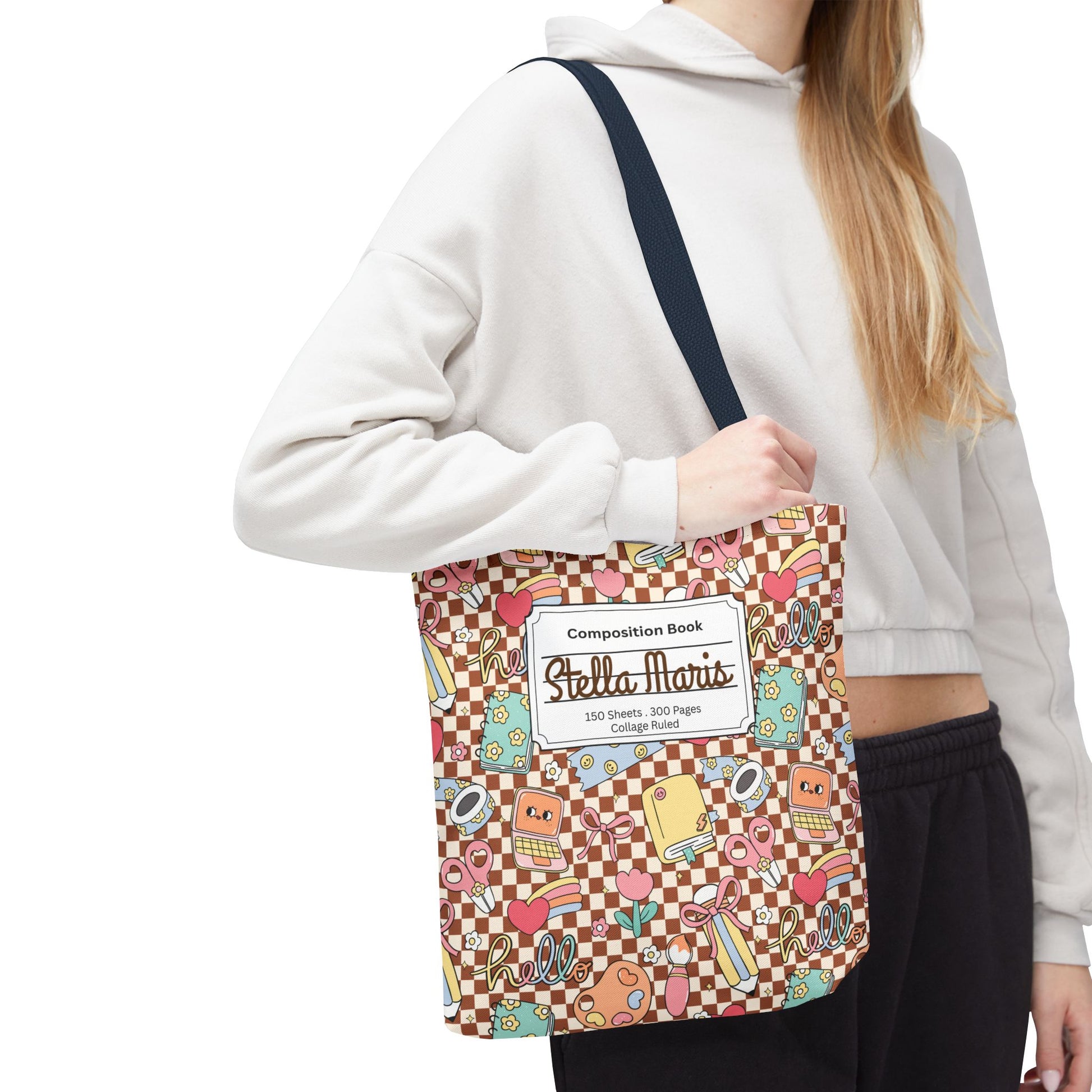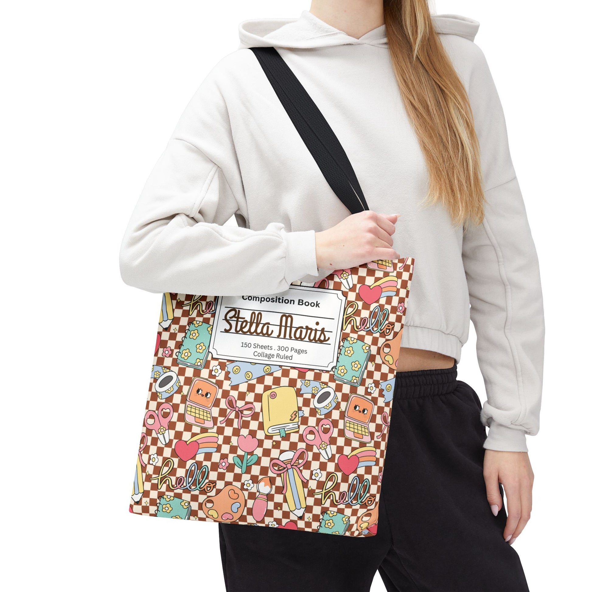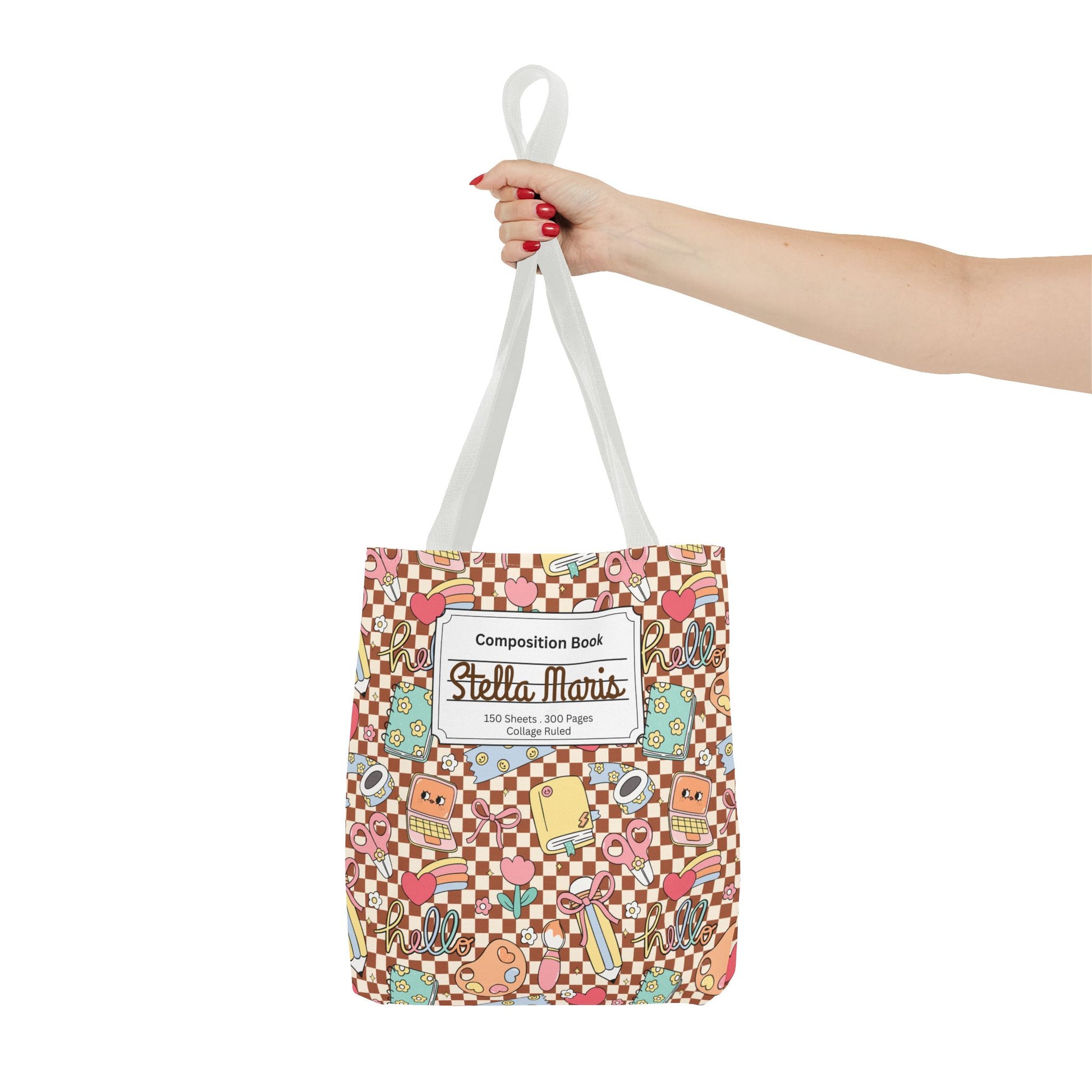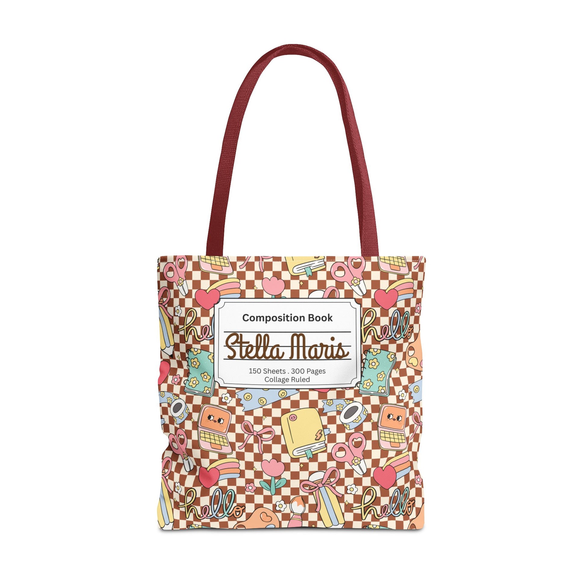 Personalized Brown Doodle Daydream Composition Book Inspired Tote Bag, Back to School Tote, Teacher Gift, Kids Bag, Custom Name Bag, Educational Accessories, Back to School Tote Bag.