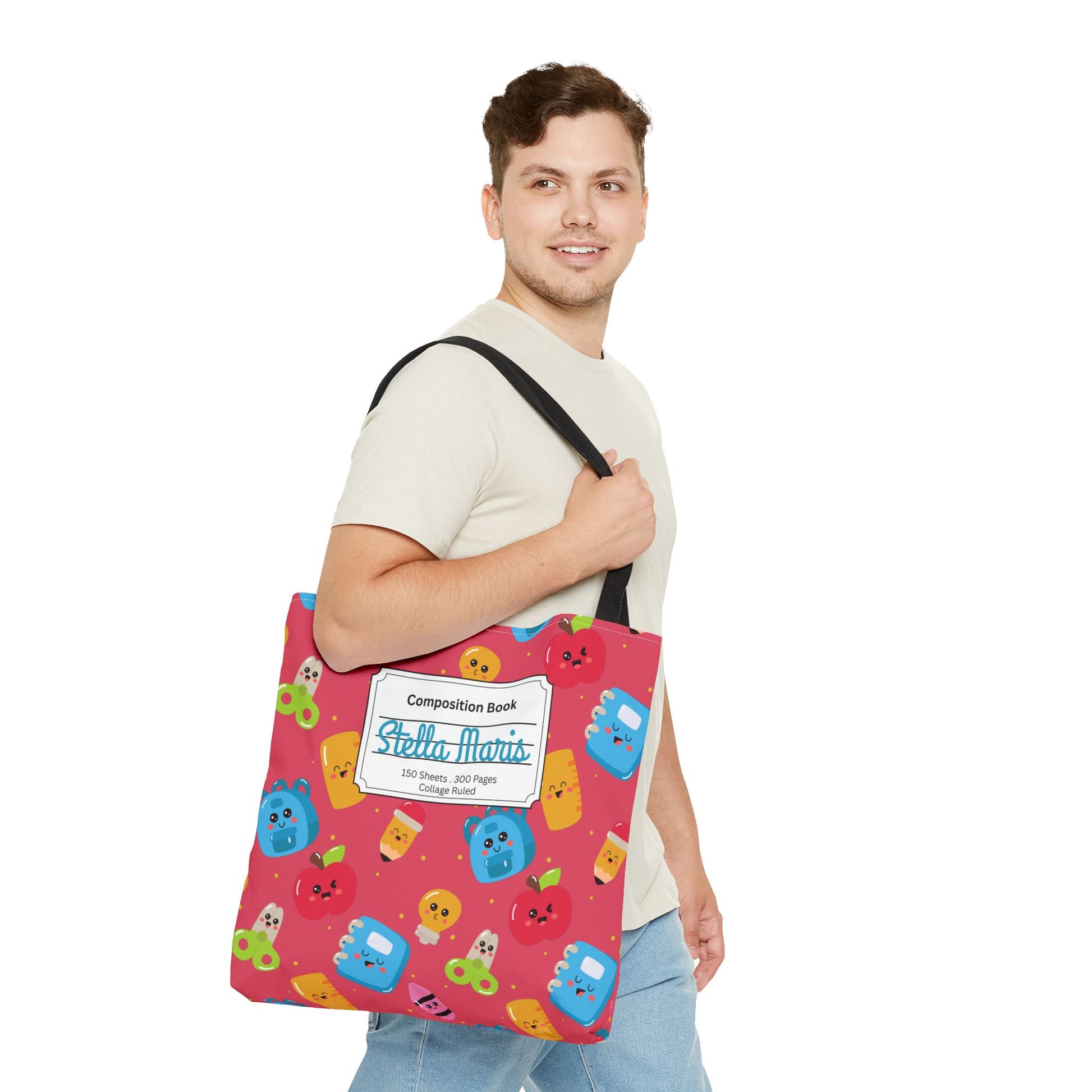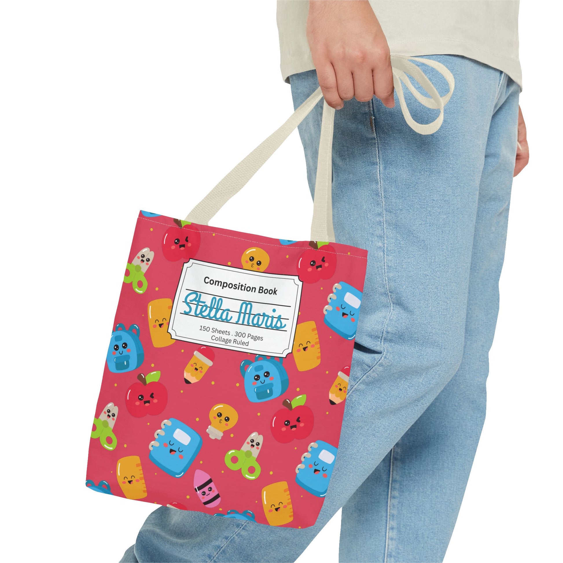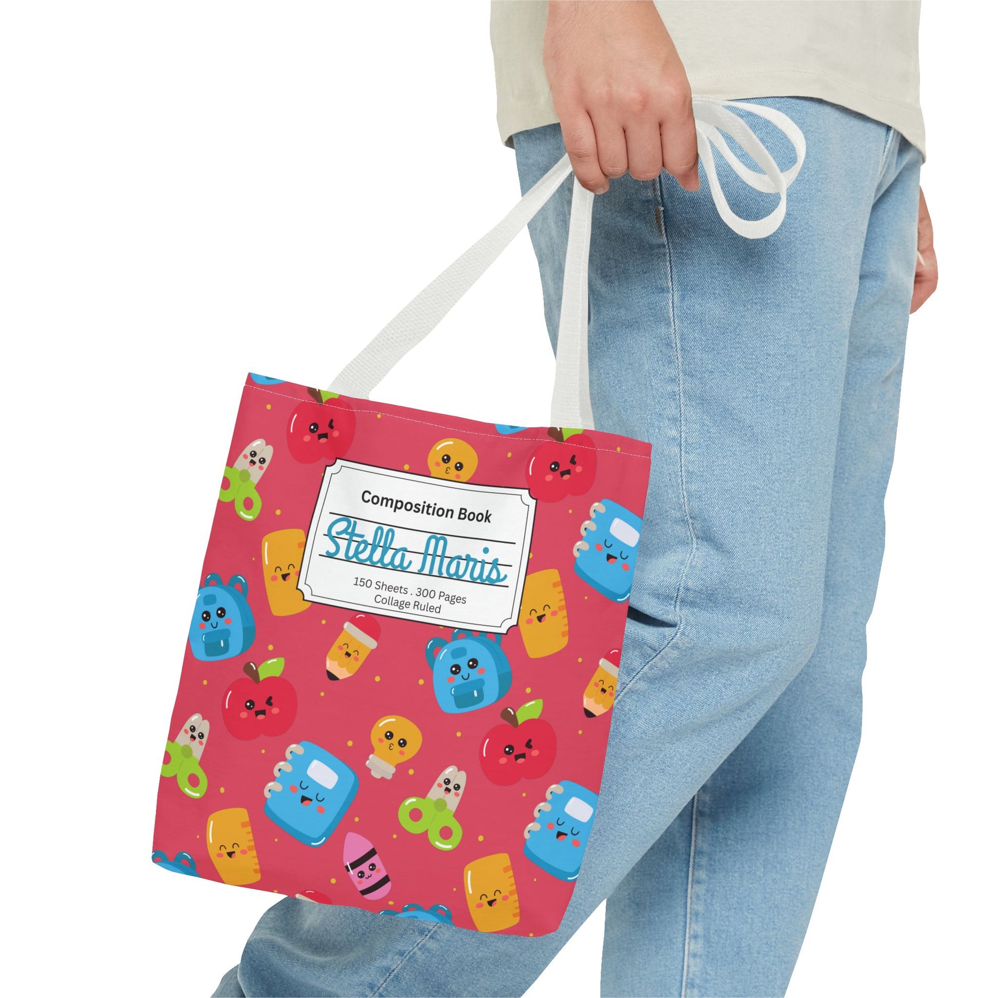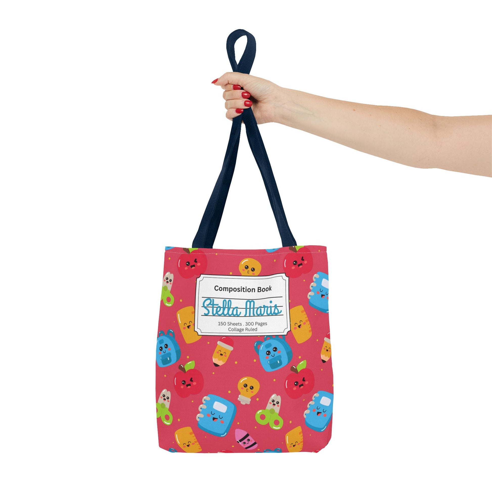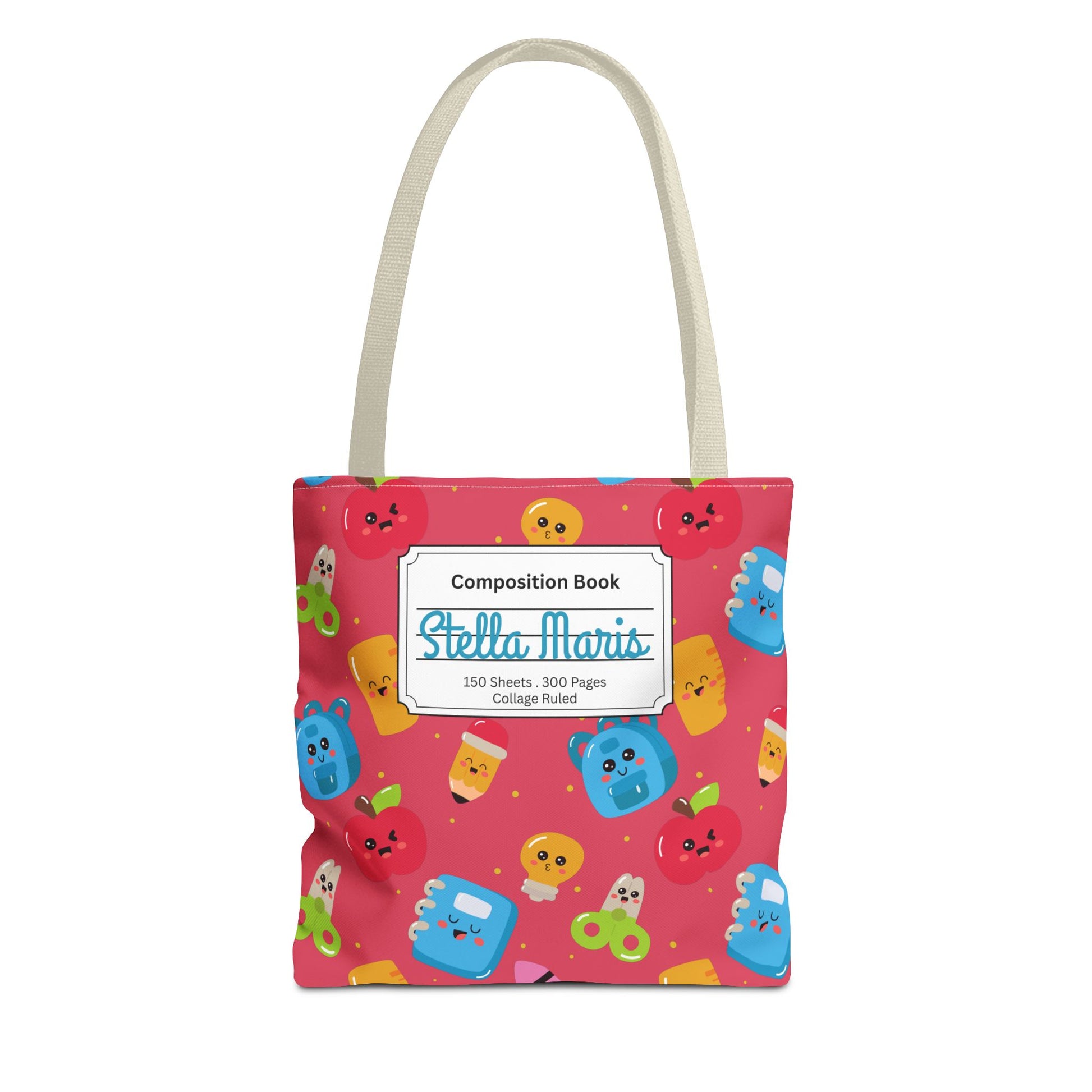 Personalized Kawaii Composition Book Inspired Tote Bag, Back to School Tote, Teacher Gift, Kids Bag, Custom Name Bag, Educational Accessories, Back to School Tote Bag.