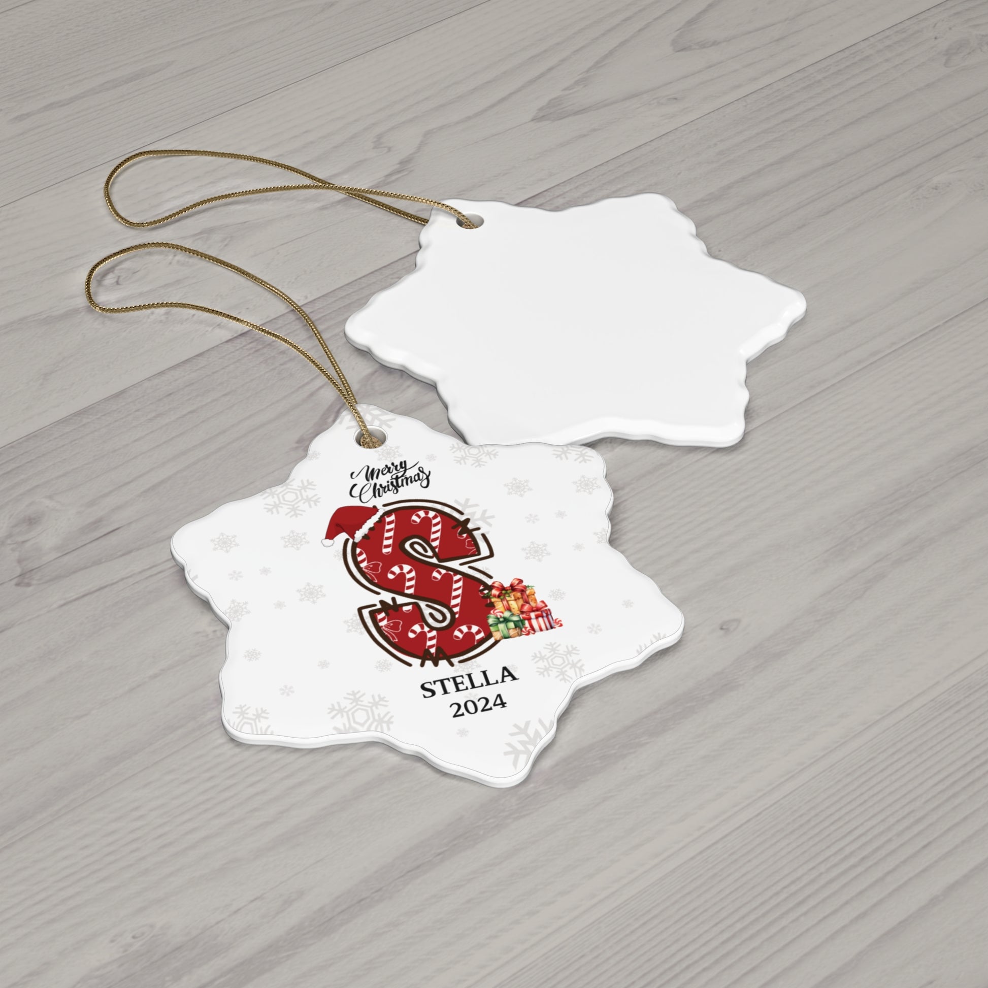 Personalized Candy Cane ''S'' Ceramic Ornament, 3 Shapes