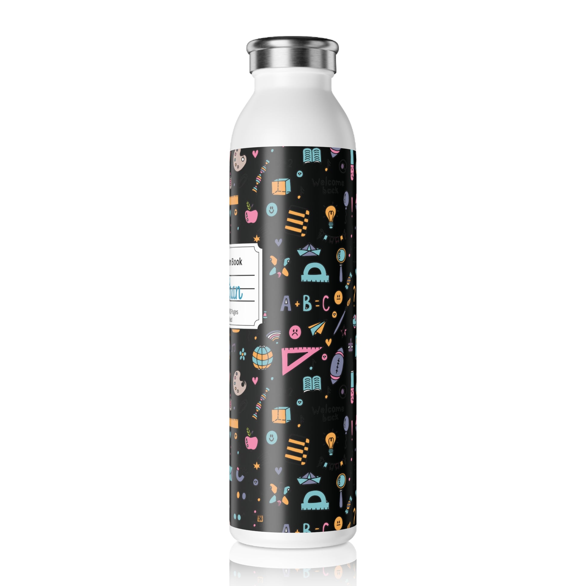 Personalized Chalkboard Chic Composition Book Inspired Slim Water Bottle, Customizable Drinkware, Eco-Friendly Hydration Bottle, Perfect for Gifts, School Supplies, Back to School