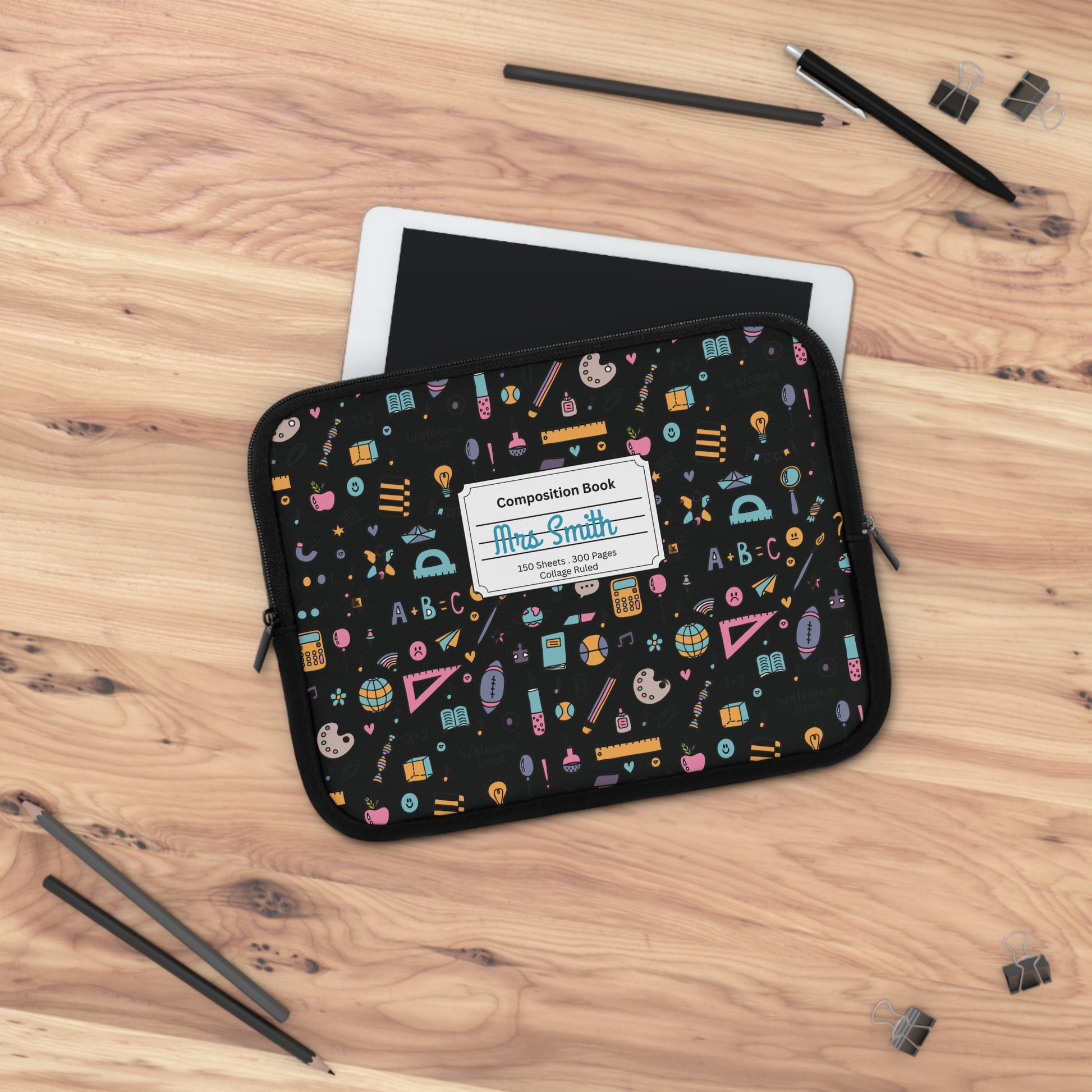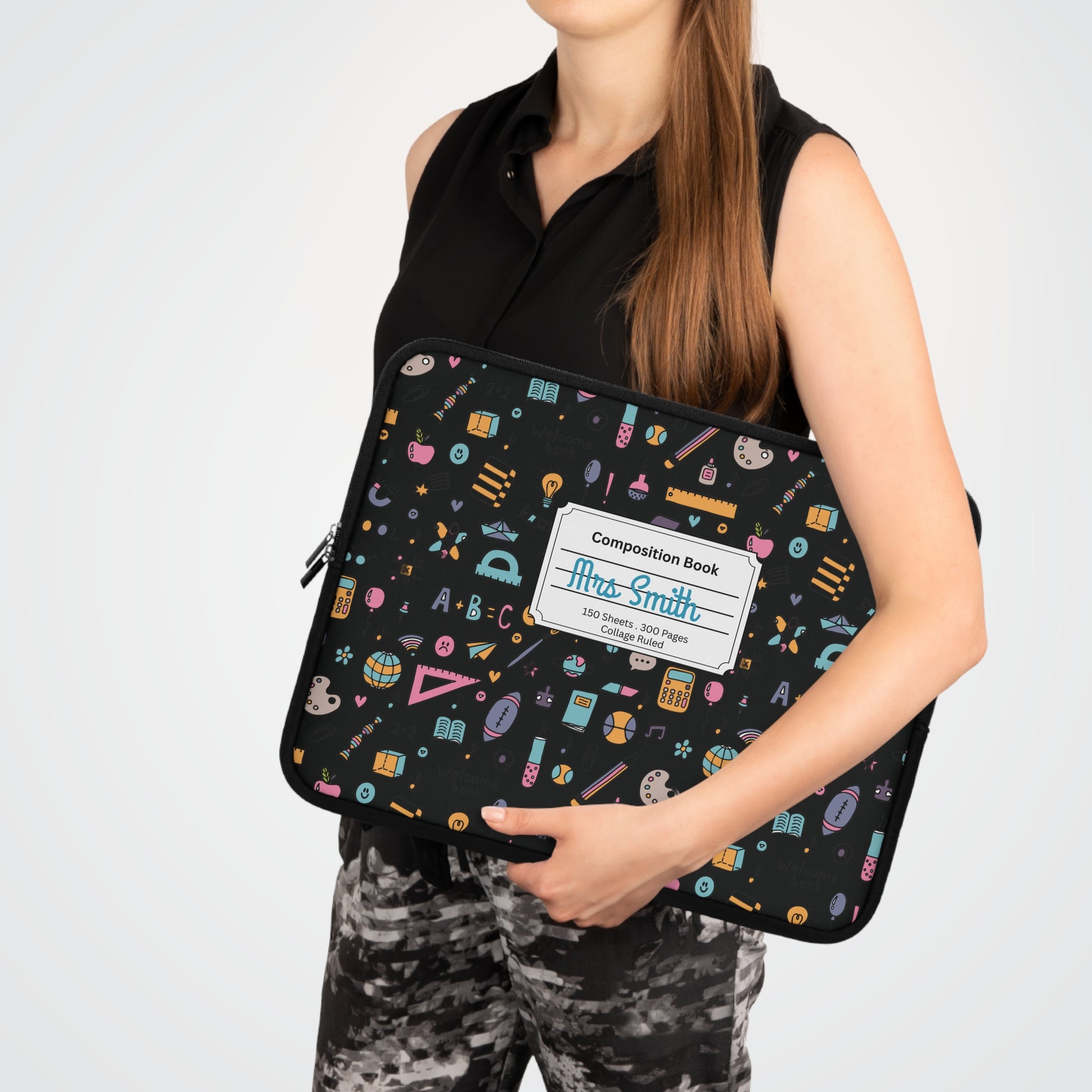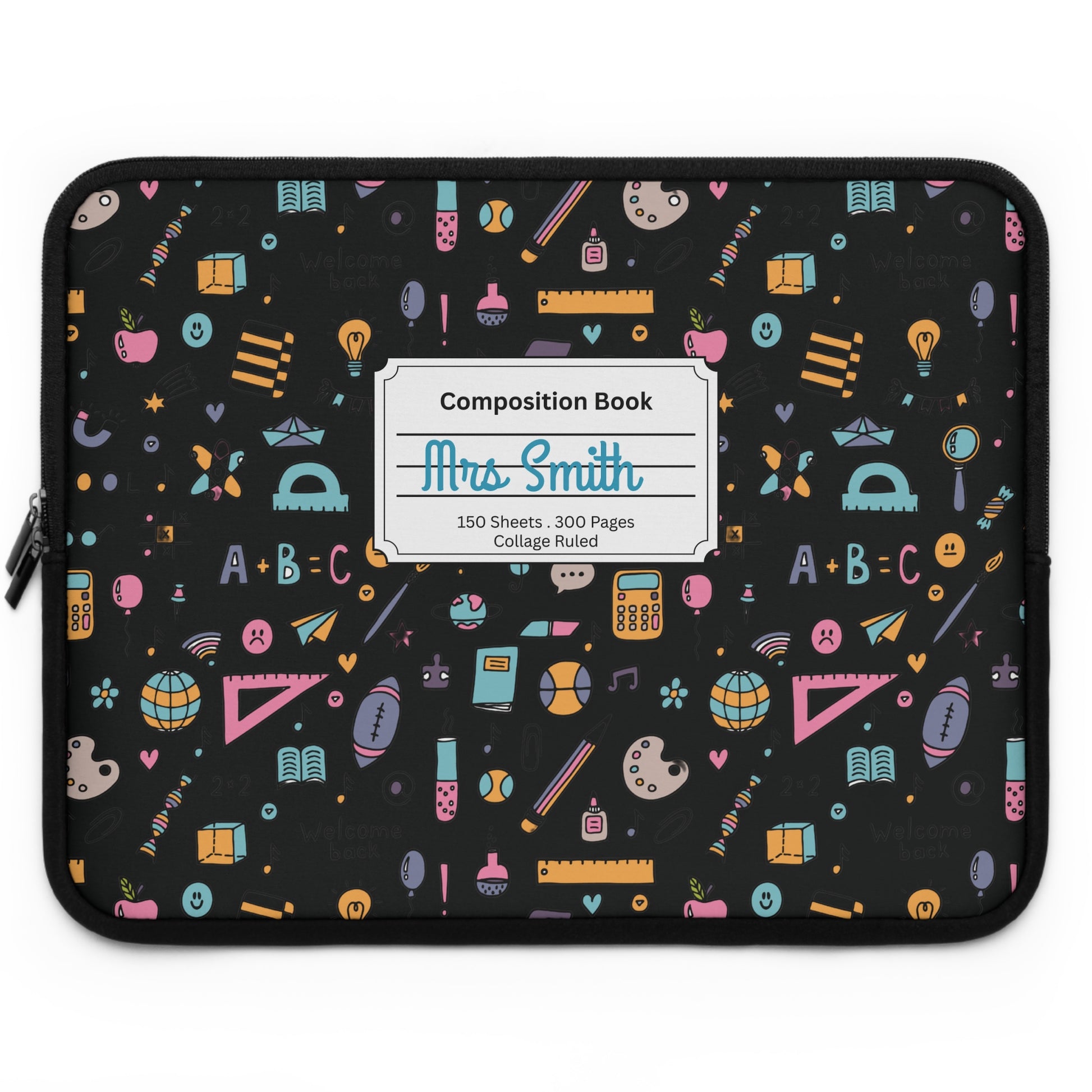 Personalized Chalkboard Chic Laptop Sleeve with Composition Book Inspired Design, Customizable Tech Case, School Supplies, Gift for Students, College Essentials, Back to School
