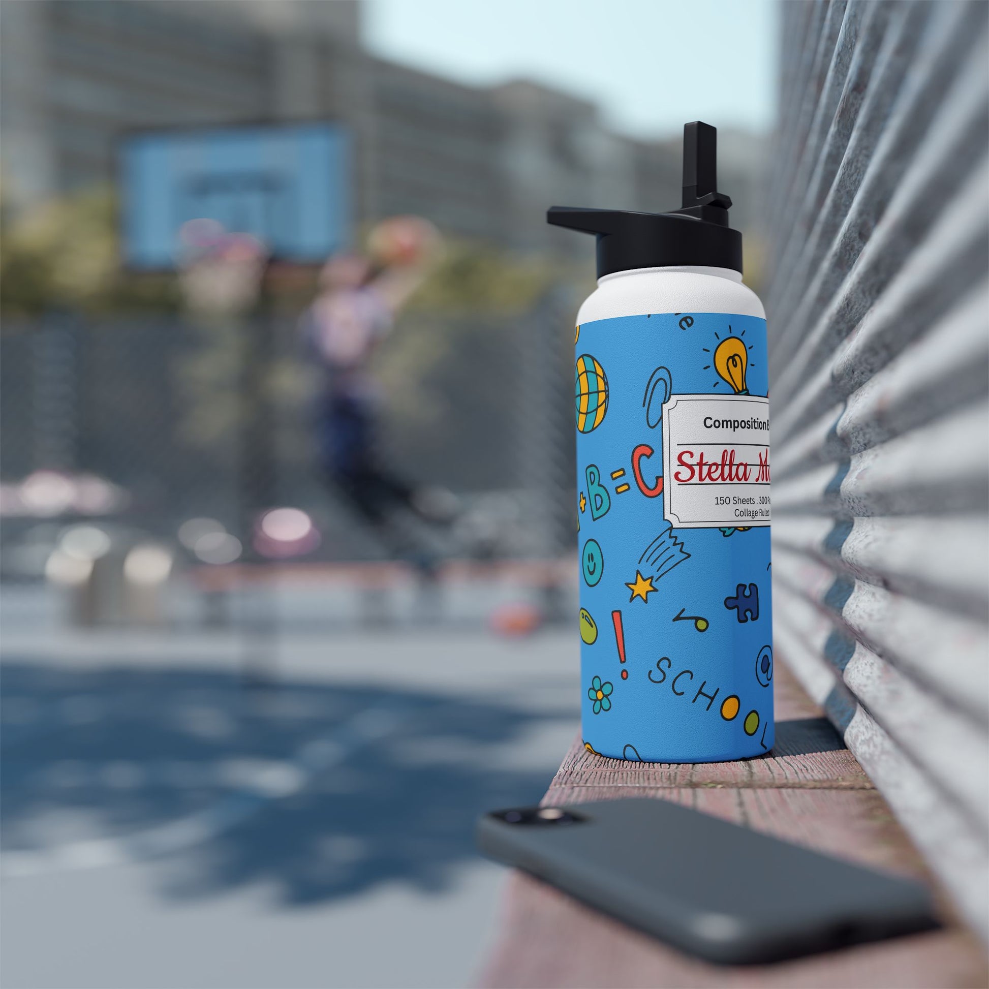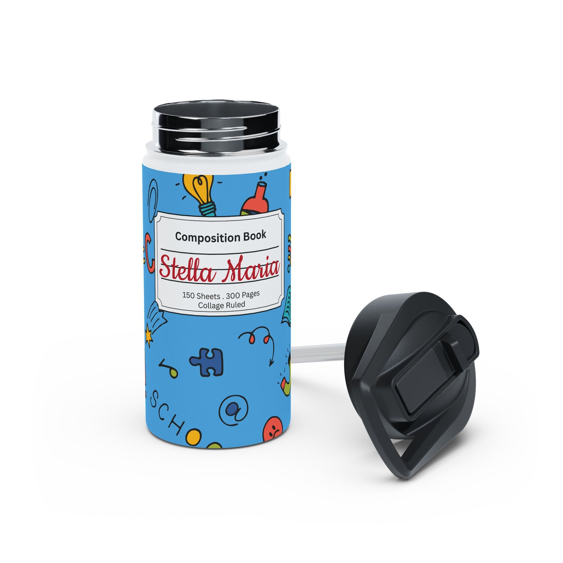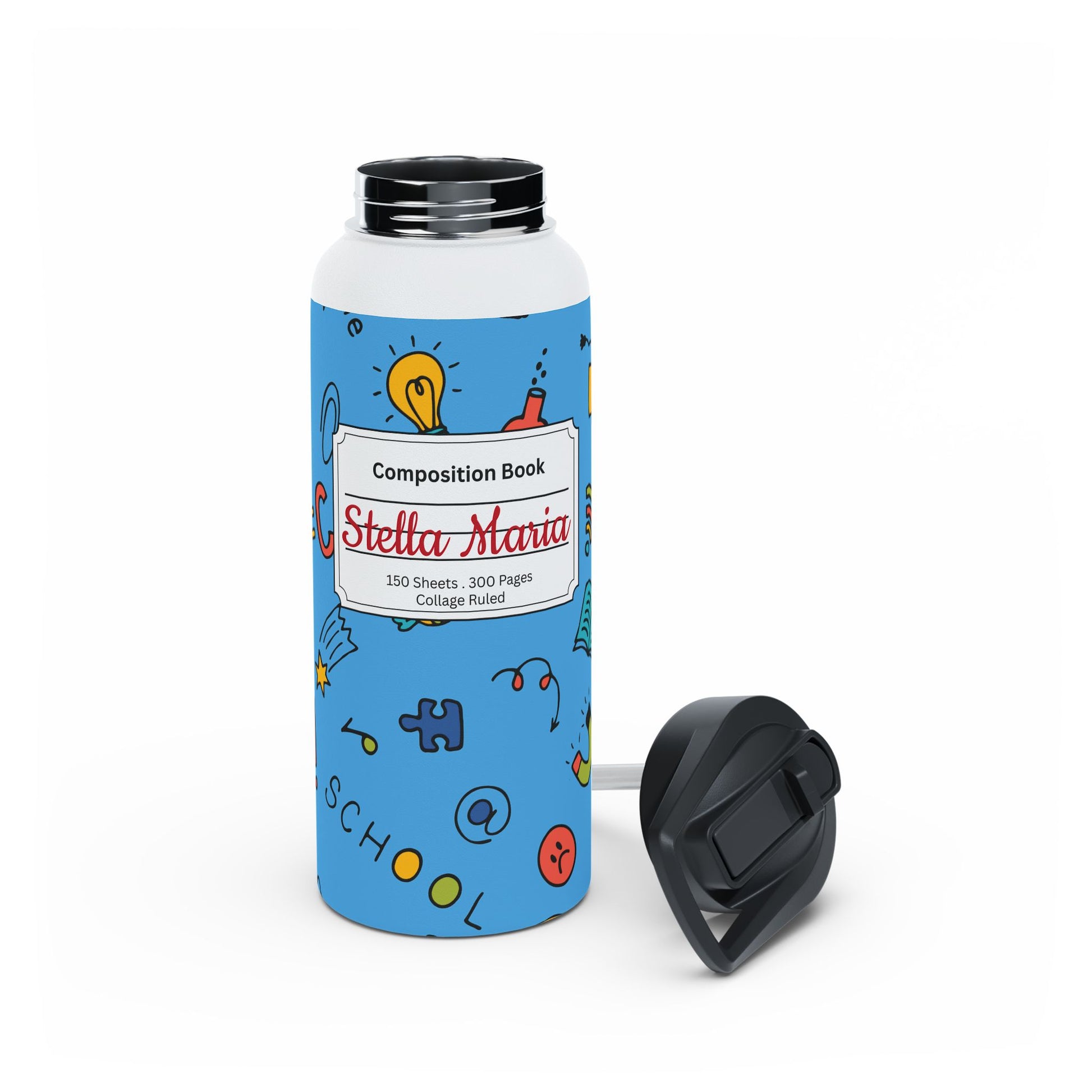Personalized Classroom Couture Composition Book Inspired Stainless Steel Water Bottle for Kids, School Supplies, Eco-Friendly Drinkware, Back to School, Teacher Gifts