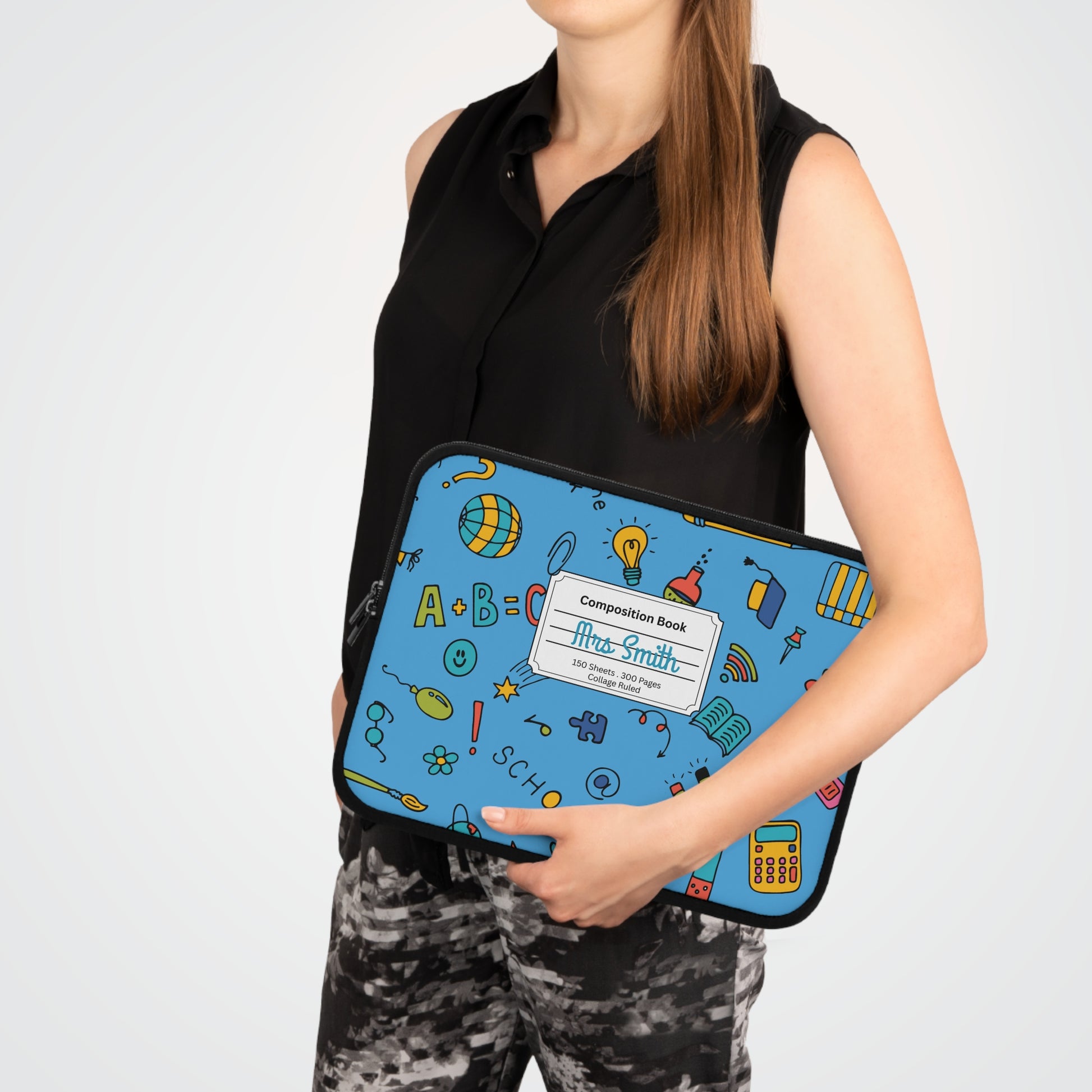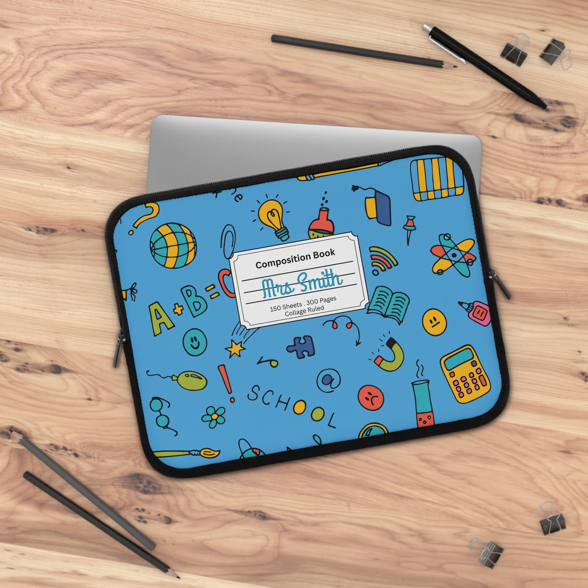 Personalized Classroom Couture Laptop Sleeve with Composition Book Inspired Design, Customizable Tech Case, School Supplies, Gift for Students, College Essentials, Back to School