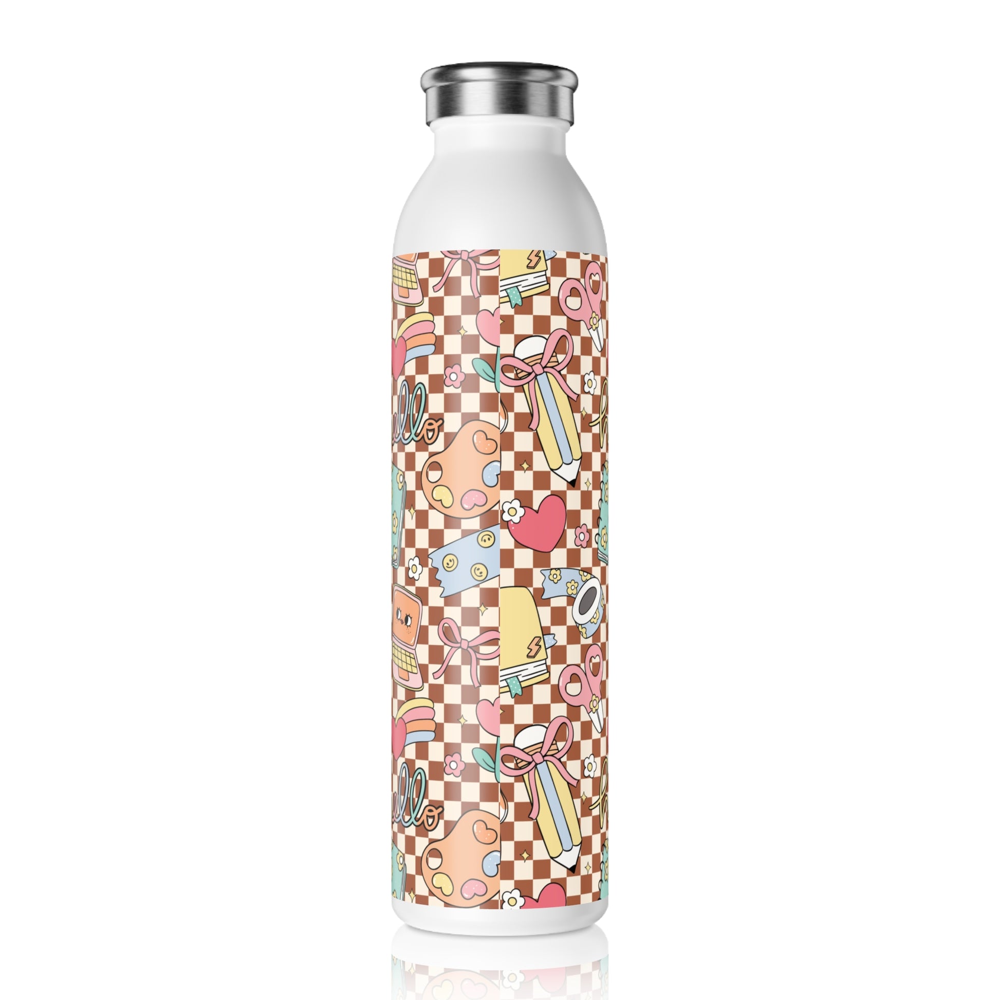 Stay hydrated in style with this sleek Back to School Slim Water Bottle. Crafted from durable stainless steel, it resists rust and staining, making it the perfect companion for your daily adventures. The double-wall construction keeps your drinks hot or cold for hours, ensuring you enjoy every sip at the perfect temperature. With a generous 20oz capacity, it's ideal for gym workouts, outdoor activities, or just keeping at your desk. The matte finish gives it a modern look, while the glossy print adds a touch of personality. Perfect for students, professionals, and anyone on the go, this water bottle is not just functional but also a fashionable accessory. Gift it during holidays or special occasions like back-to-school season, birthdays, or simply for someone who values hydration and style.