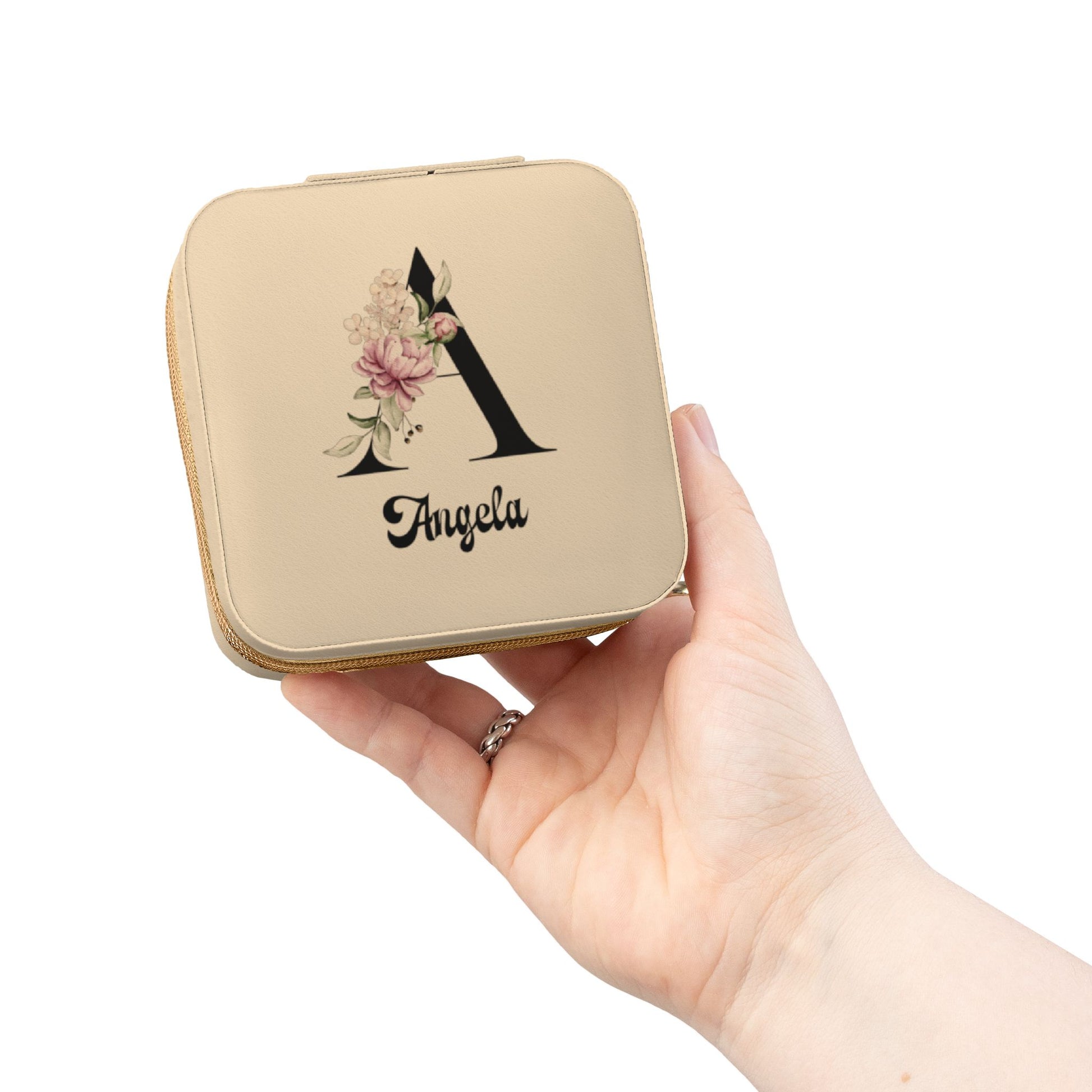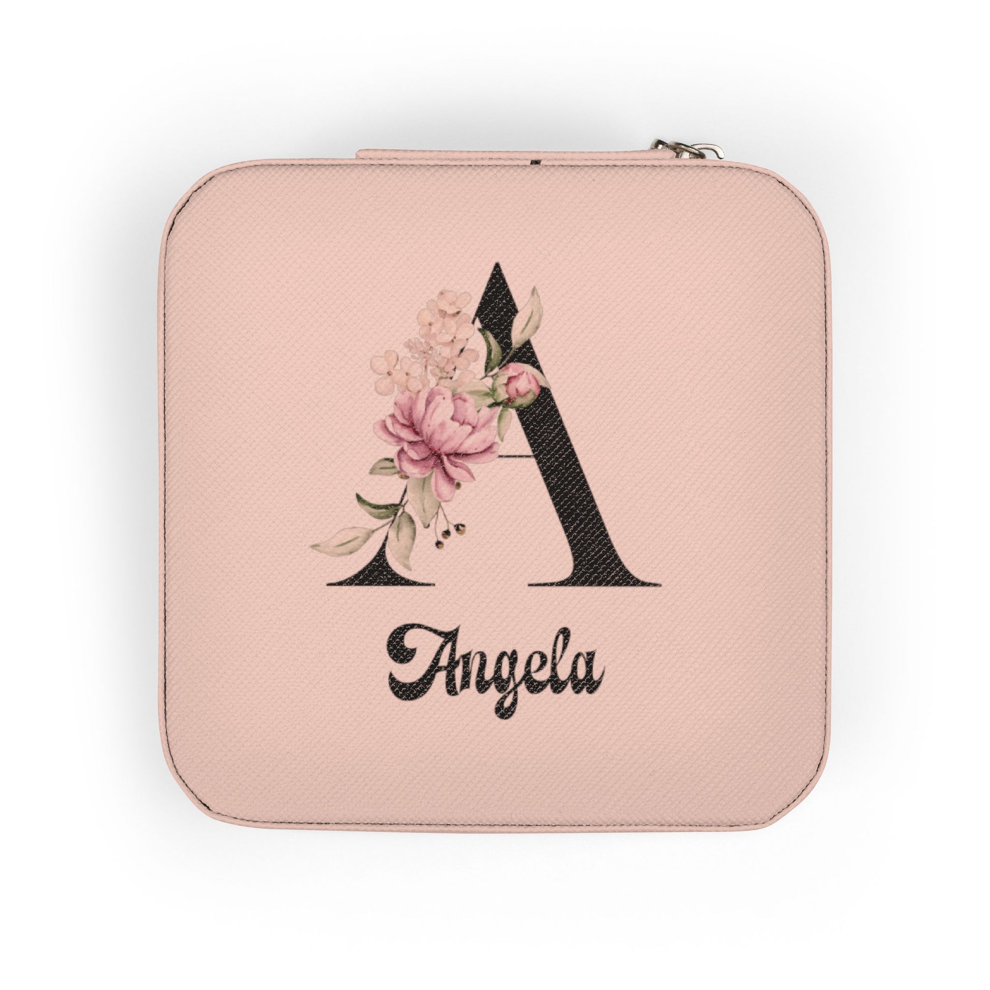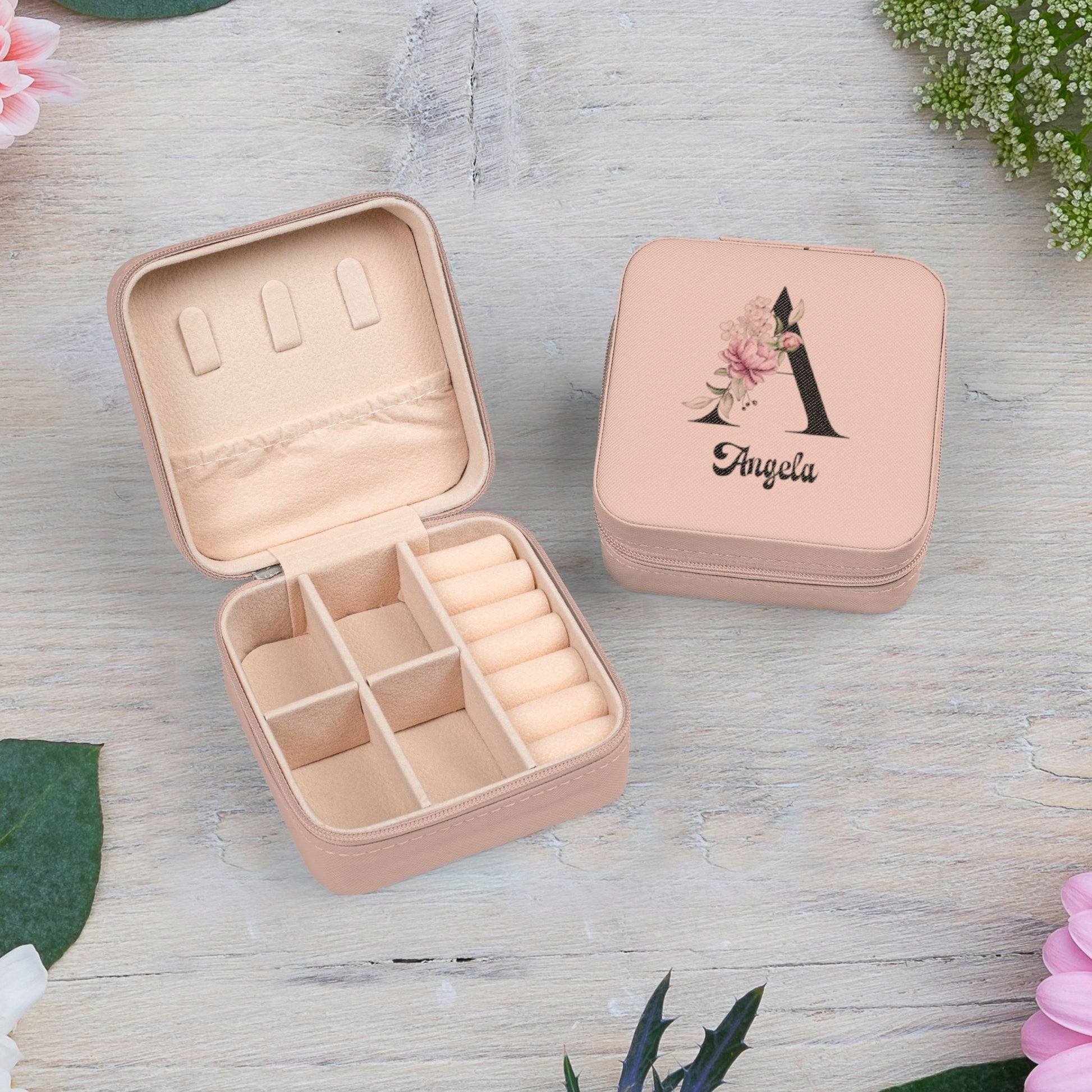 Personalized Floral Monogram Jewelry Travel Case — Compact Pink Ring & Earring Organizer (Custom Name)