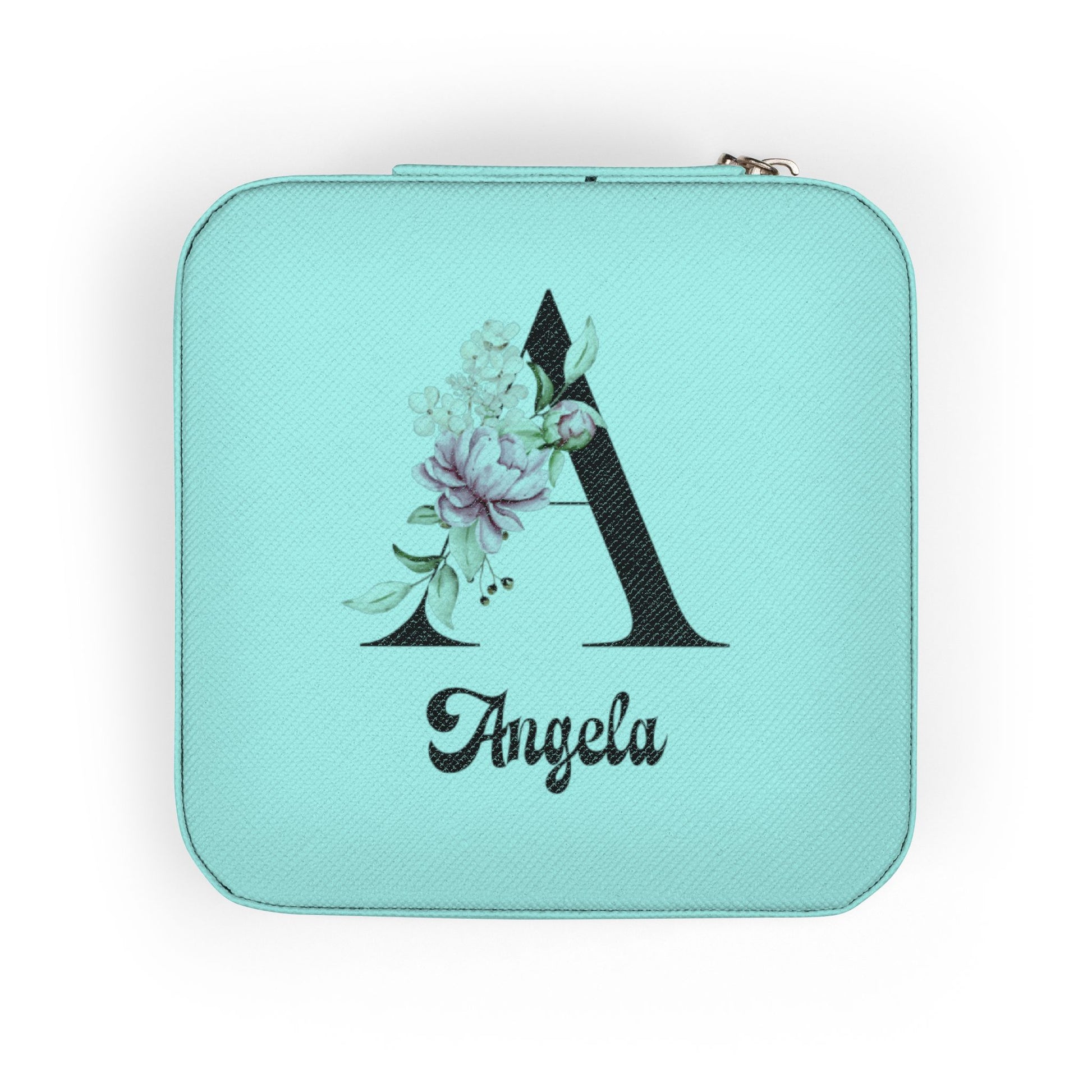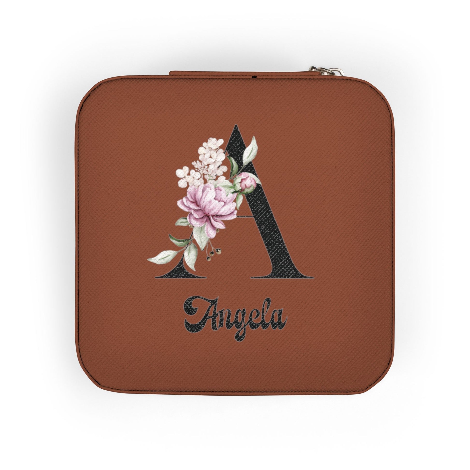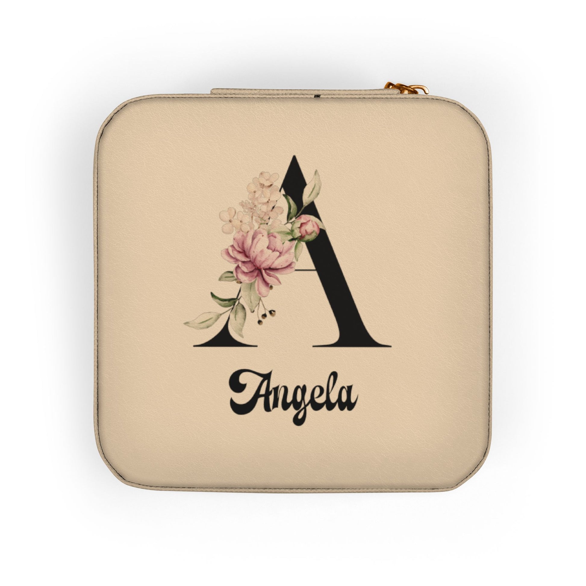 Personalized Floral Monogram Jewelry Travel Case — Compact Pink Ring & Earring Organizer (Custom Name)